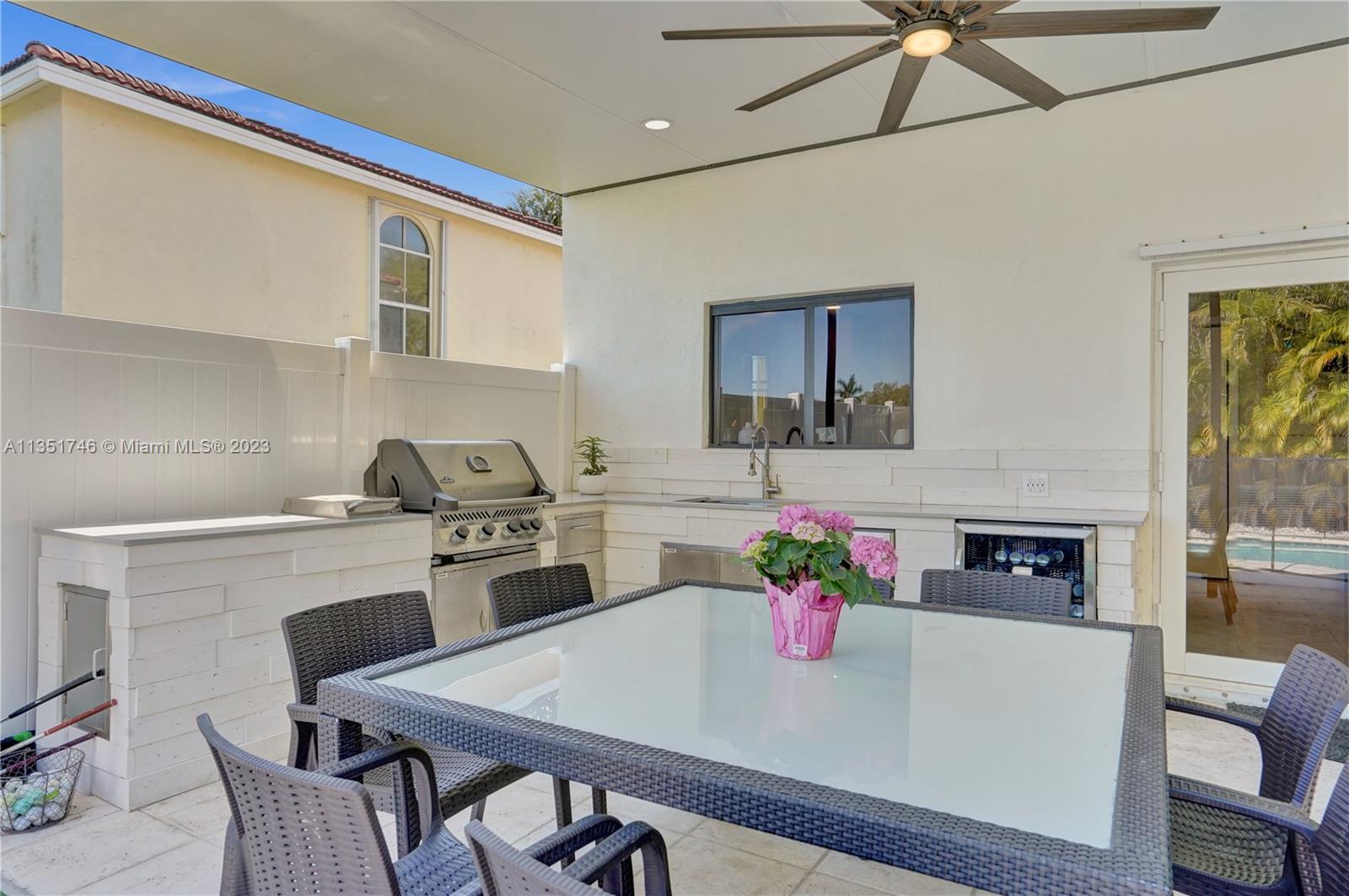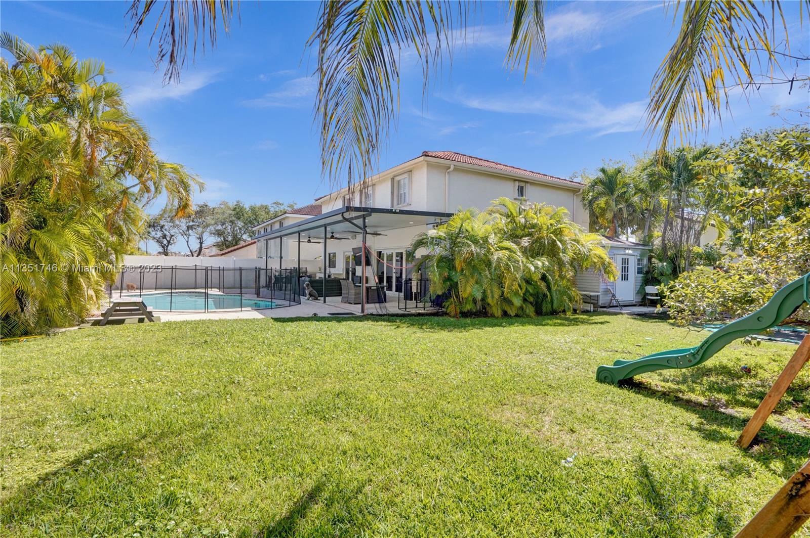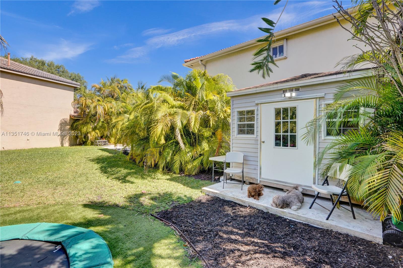 Beautiful 4-bedroom 2.5-bathroom two story home. Park in the newly insulated garage with A/C or one of the 6 spots in the driveway. Enter thru the brand new gorgeous double doors into the sitting, living & dining area with natural light & plantation shutters on all the windows. Tile floors throughout the first floor, kitchen with SS appliances, gas range, & granite countertops. 4 Bedrooms upstairs, very spacious master with built-in office space, leading into the walk-in closet (w&d inside) & updated primary bath with dual sinks & vanity. Enjoy your the backyard hosting a bbq in the brand-new outdoor kitchen, overlooking the lake & enjoying a dip in the salt water, heated pool. Have some fun jumping on the in-ground trampoline! & don’t forget to get creative in the SheShed/ManCave.