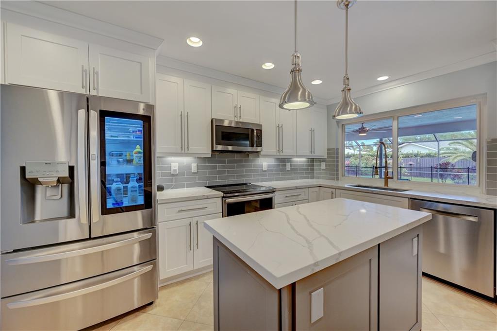 Amazing opportunity in gated secluded Eldorado Estates. Remodeled & updated 5-bedroom pool home. Hurricane-hardened with reinforced roof gables & straps, Impact Windows & Doors including French doors to patio & decorative double front door with glass inserts. Patio: roll-down hurricane screens & protection of outdoor furnishings. Even backyard is mostly enclosed with maintenance-free, hurricane rated fence. Recently remodeled kitchen includes quartz countertops, soft-close cabinets/drawers, pantries, upgraded appliances: LG fridge, GE micro w/convection, double oven w/convection, whisper quiet Bosch dishwasher. Wi-Fi Smart Sprinkler system. Smart thermostat. Lighting: some wall switches & light bulbs Smart-enabled so bring your Alexa/acct NOTE: All pipes under home were replaced ($33,000)