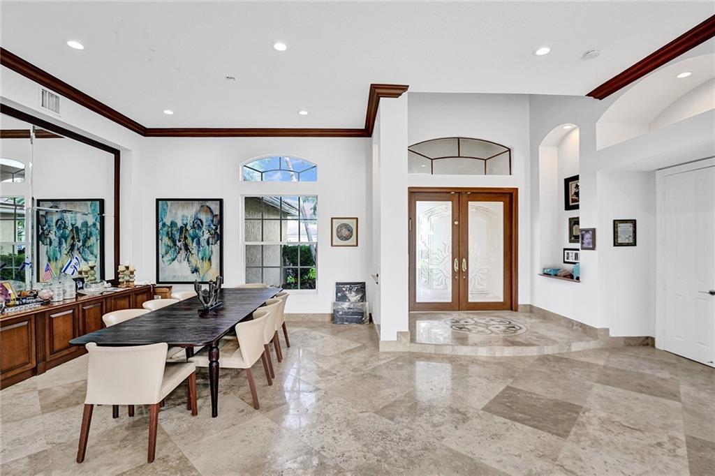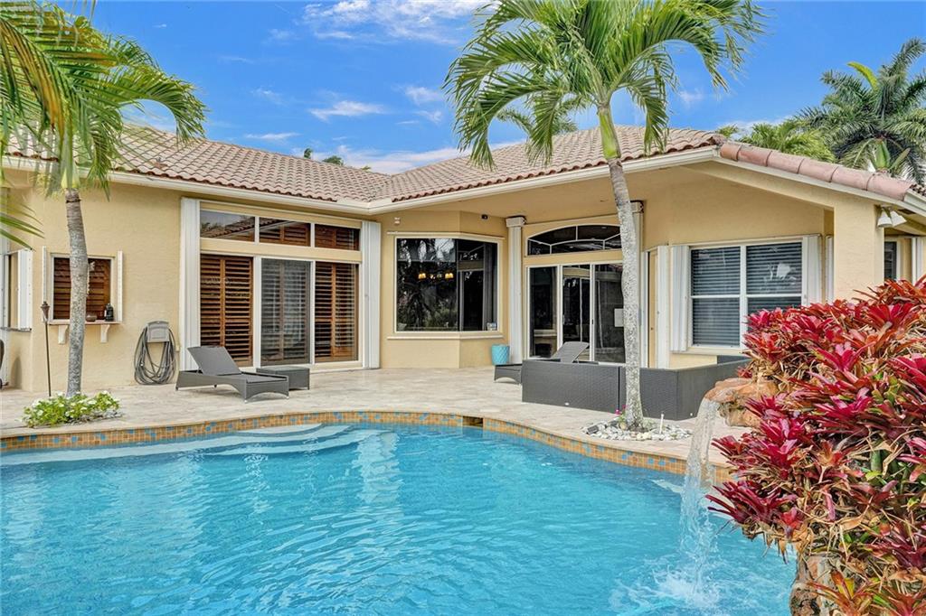 One story lovingly maintained with a pool and spa situated on a beautiful lake view. *in a process of Installing a New Roof (2023)* Triple split floor plan, 5 Bedrooms 4 Bathrooms 3 Car garage (one build/use for storage). Marble floors throughout the living area and parquet in bedrooms. kitchen with wood cabinets, granite countertops, and Stainless steel appliances. Central vacuum, large master's suite with sitting area and two walk-in closets, recessed led lighting, and surround sound speakers. Two showers in the master bathroom and a stand-alone bathtub, crown molding, wall niches, tray ceiling, and more. Enjoy the resort's style amenities in this 24/7 security guard community!
