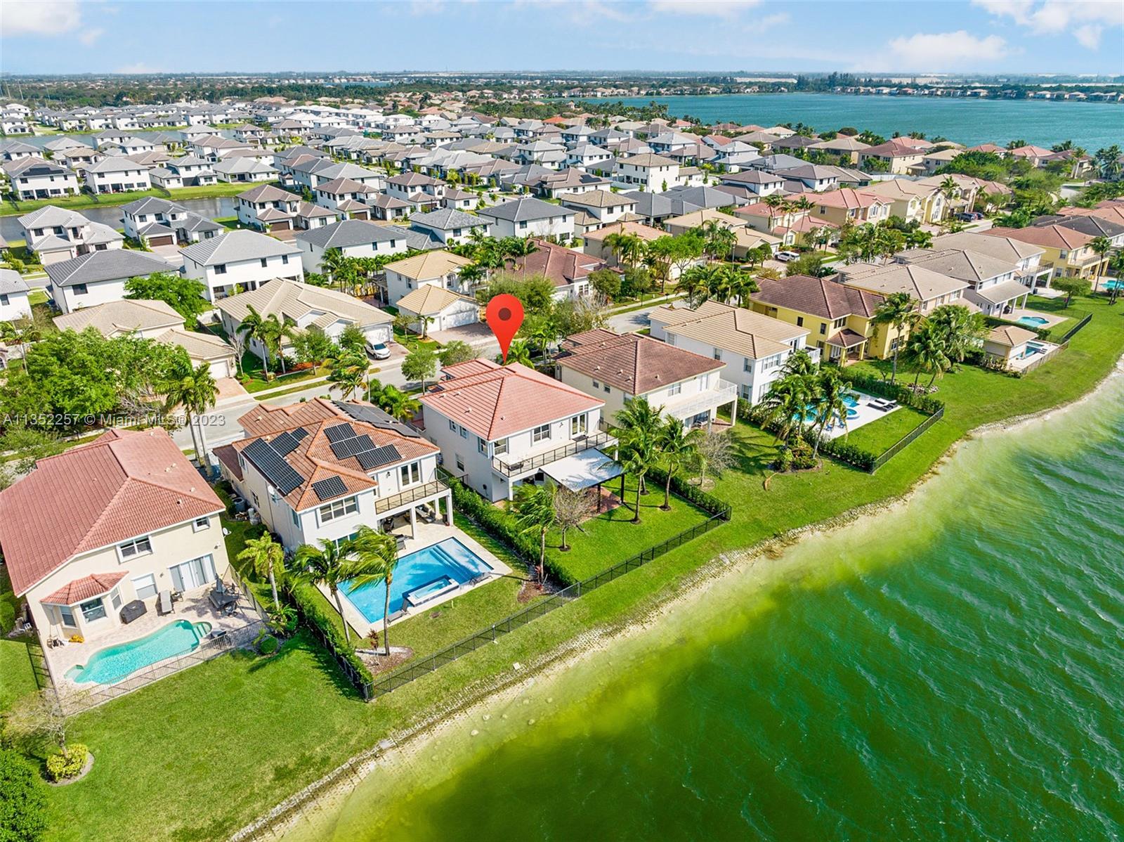 Enjoy outdoor living & beautiful water views in Sunset Falls, West Miramar’s most prestigious gated community! This 5 bed, 4 bath, 3 car garage home showcases impressive wide water views from the moment you walk in! The first floor features a remodeled kitchen w/waterfall quartz island, Alexa enabled refrigerator, breakfast nook & 1 full bed/bath, perfect as an in-law suite. Upstairs the master suite has a separate sitting room, 2 walk-in closets, his & hers baths & an oversized balcony for relaxing with a glass of wine at sunset. Outdoors, entertaining is easy w/a large fully fenced yard & extended covered patio perfect for BBQ. Keep bugs away year-round w/the included Swat system! Sunset Falls luxury amenities include a resort-style pool & spa, tennis & basketball courts & fitness center