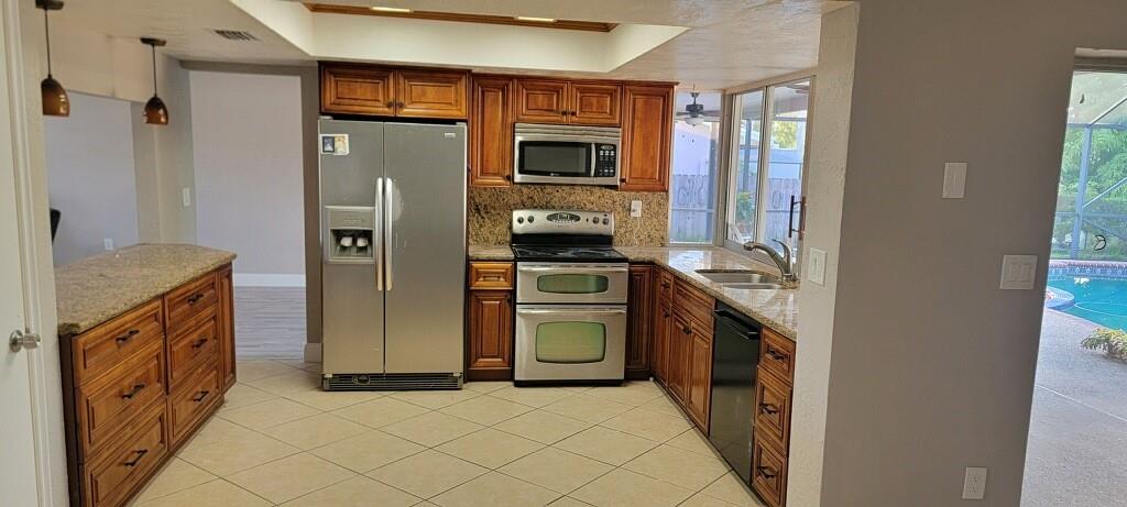 Large original 4 bedrooms, 2 bathrooms, 2 car garage, and a large screen pool. Plus a large pool.
