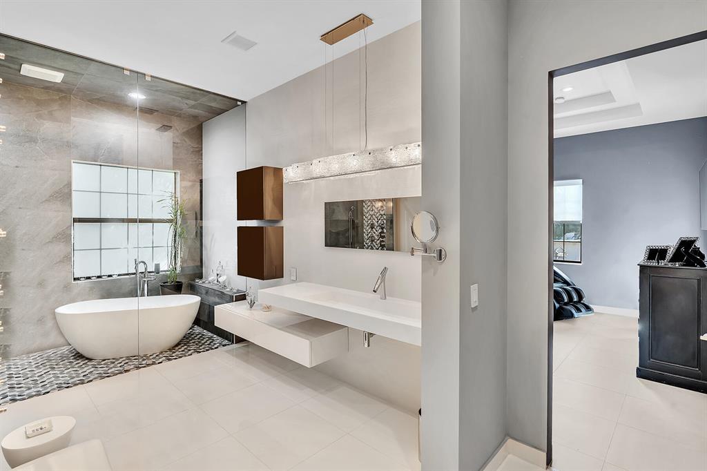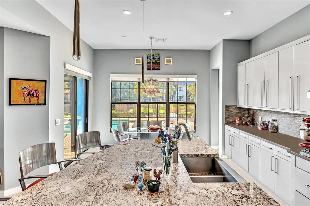 Absolutely Stunning Contemporary 4 Bedroom 3.5 Bath One Story Pool Home on the Lake with an Oversized Lot. This Home is in the Newer Section of the Oaks in Boca Raton. This Home has all the Modern Finishings from the Exquisite Gourmet Kitchen with Granite Countertops and Caesar Stone Countertops, Upgraded Raised Panel Cabinets, Pot Filler, Viking & Sub Zero Professional Stainless Steel Appliance Package to the Butler Pantry with Caesar Stone Countertops and Custom Shelving to the 24 x 24 porcelain rectified tile to the Oversized custom 41 x 17 salt water, heated pool with infinity spa and custom artesian series handrails, Pool 29 feet long, Spa 7x7, Rear facing South with lake views to the Summer Kitchen to the Hurricane Impact Windows and Doors and so much more.