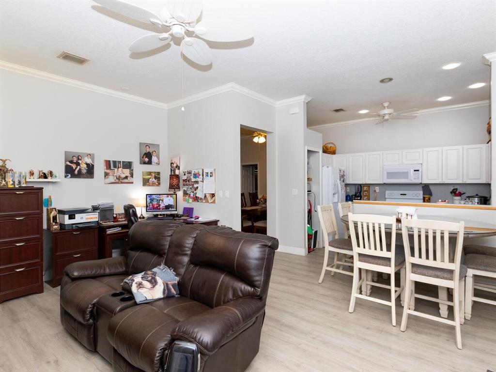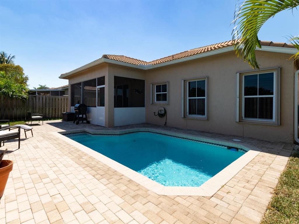 PIZZAZZ THROUGHOUT! Priced UNDER recent area sales! Why spend $40K or more totally updating-remodeling a home when for the same price you can buy a remodeled home? Originally living room, family room, 3BR. EZ to take living room wall down as there's floor under wall. 4/2.5 pool, 2 car garage and enjoy the privacy of being on the greenbelt. Wonderful, gated community! Newer appliances, newer roof, new waterproof wood flooring, new diamond, new sprinklers, new rolling hurricane shutters, new lighting in the screened overhang in back patio, high ceilings, master bedroom has tray ceilings, roman tub, tinted windows, plantation shutters, professional landscaping. EXCELLENT SCHOOLS TOO! Close anytime, however, seller needs to stay until June 15th and will rent back. Make offer!