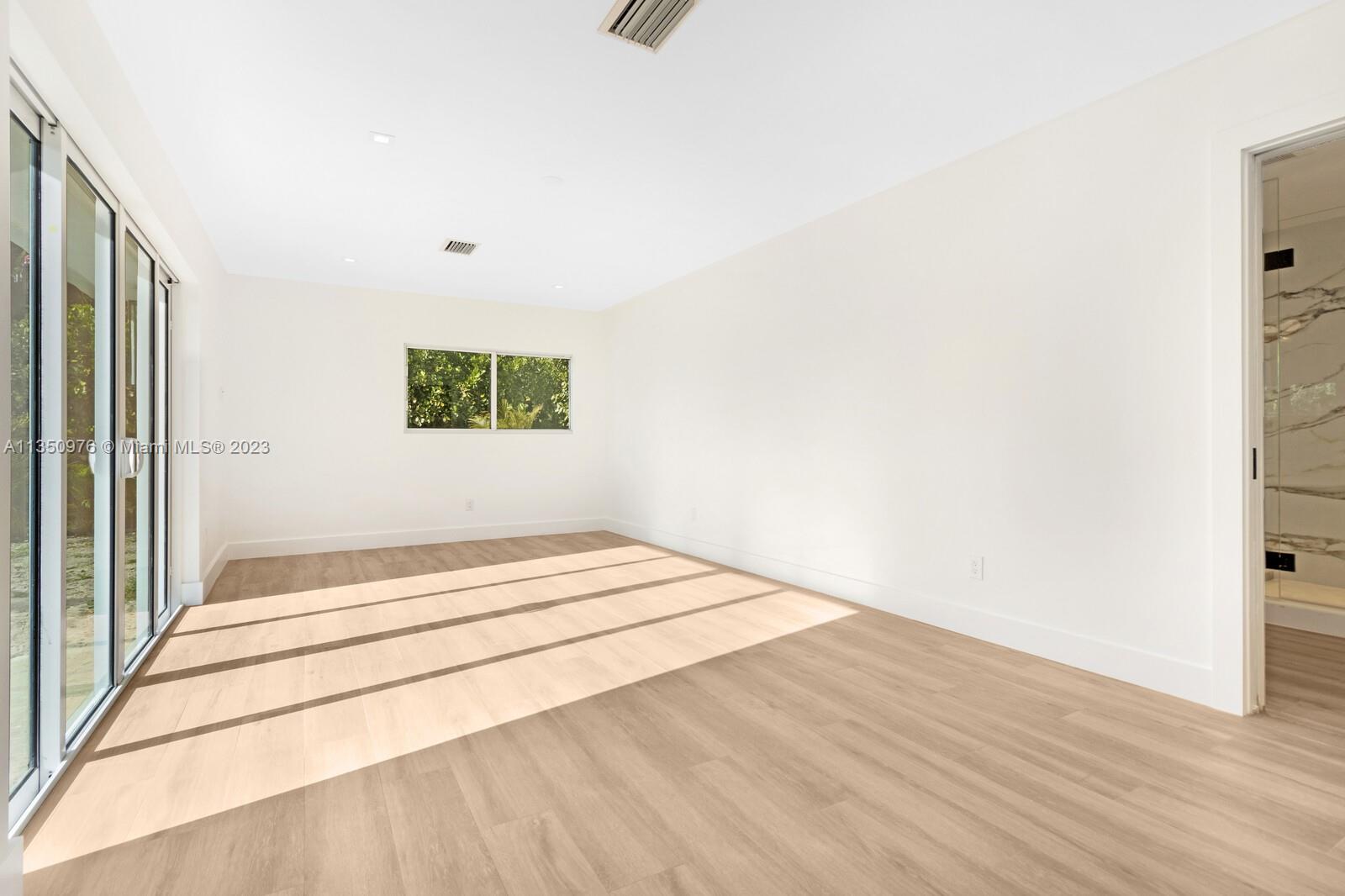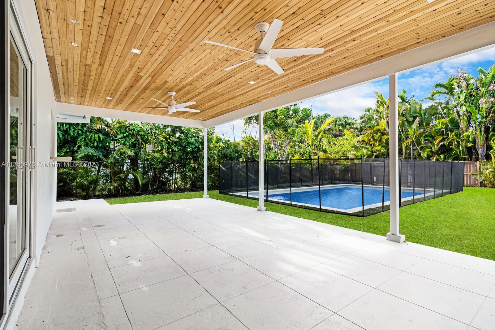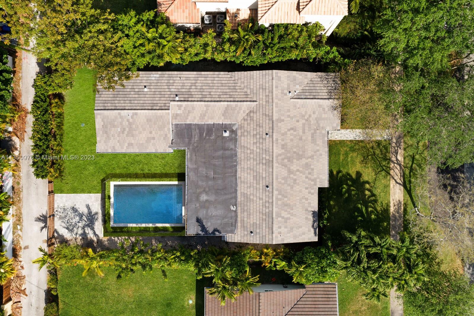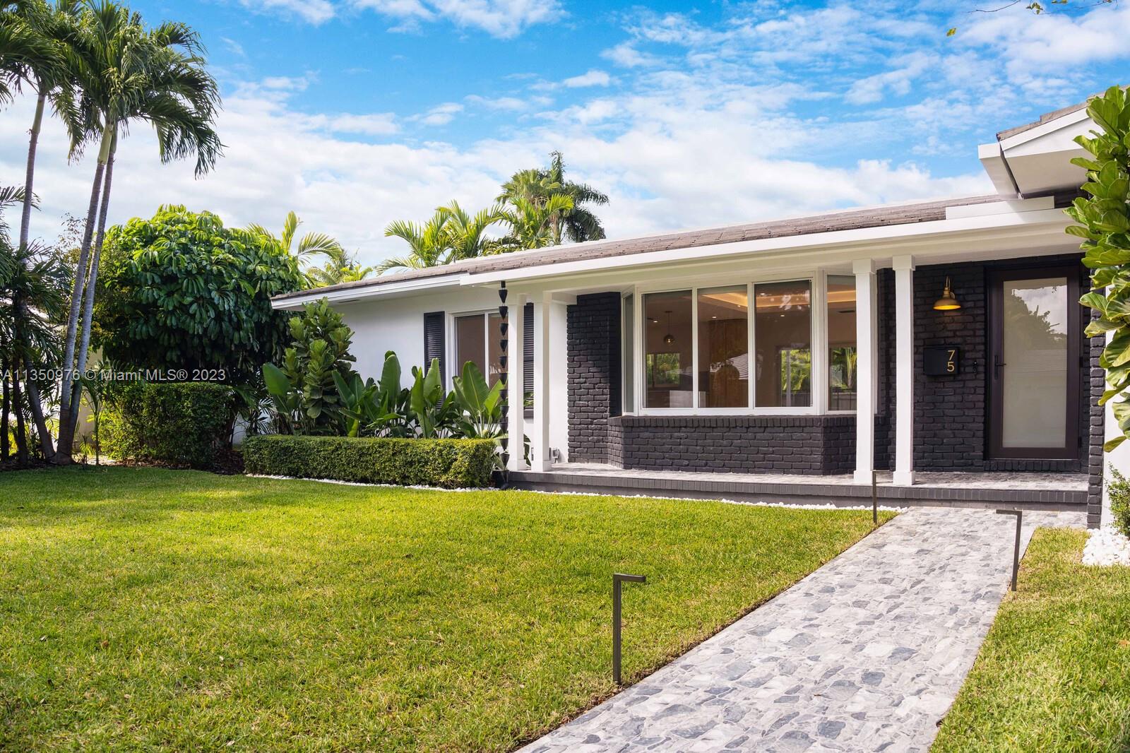Florida living at its finest with custom curated home by local designer builder in desirable area of Miami Shores. Entry Foyer opens to expansive living overlooking lush backyard & pool. Two wings separate the home with 2 VIP suites equal in size to create 4 bedrooms, 3 full bathrooms & 1 half bath. The primary overlooks pool with private access, 2 walk-in closets, along with 2-person shower & soaking tub. With design in mind, the kitchen delivers custom cabinetry with oversized island that allows seating for more than 6 and commercial grade appliances including gas stove with dual oven. Plus, separate laundry room off kitchen. Retreat outdoors to 300 sq ft covered patio, 15x26 pool with water feature & green space. Rear parking for 2 vehicles. All new with permits.