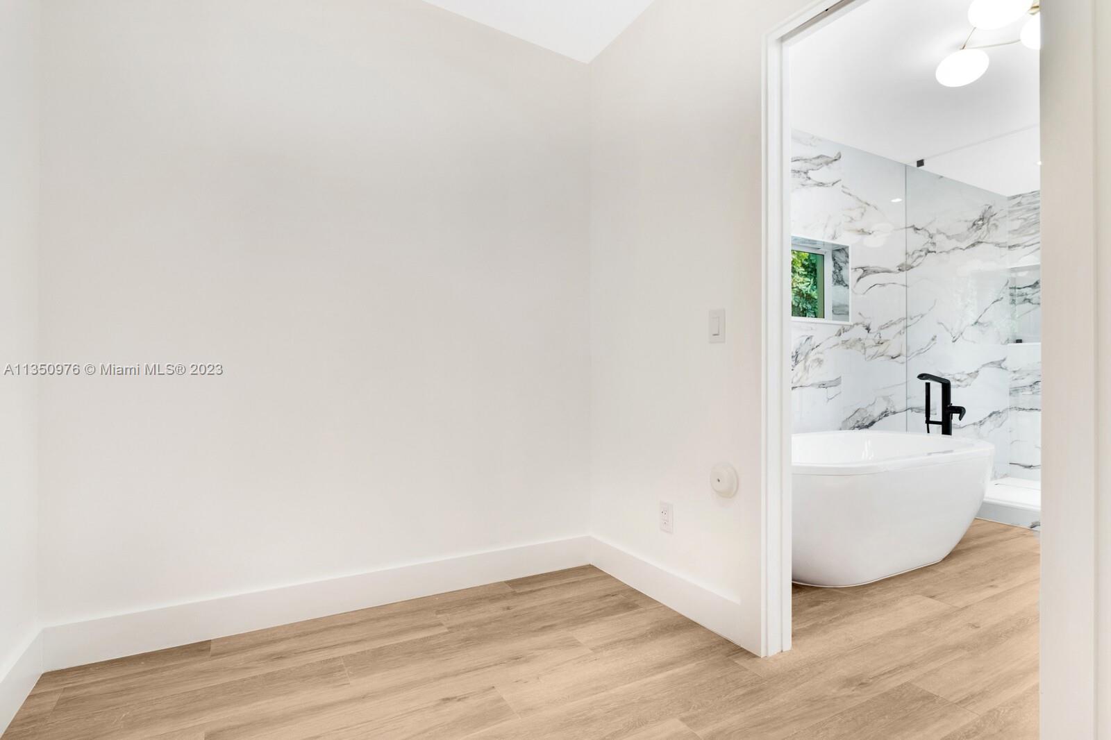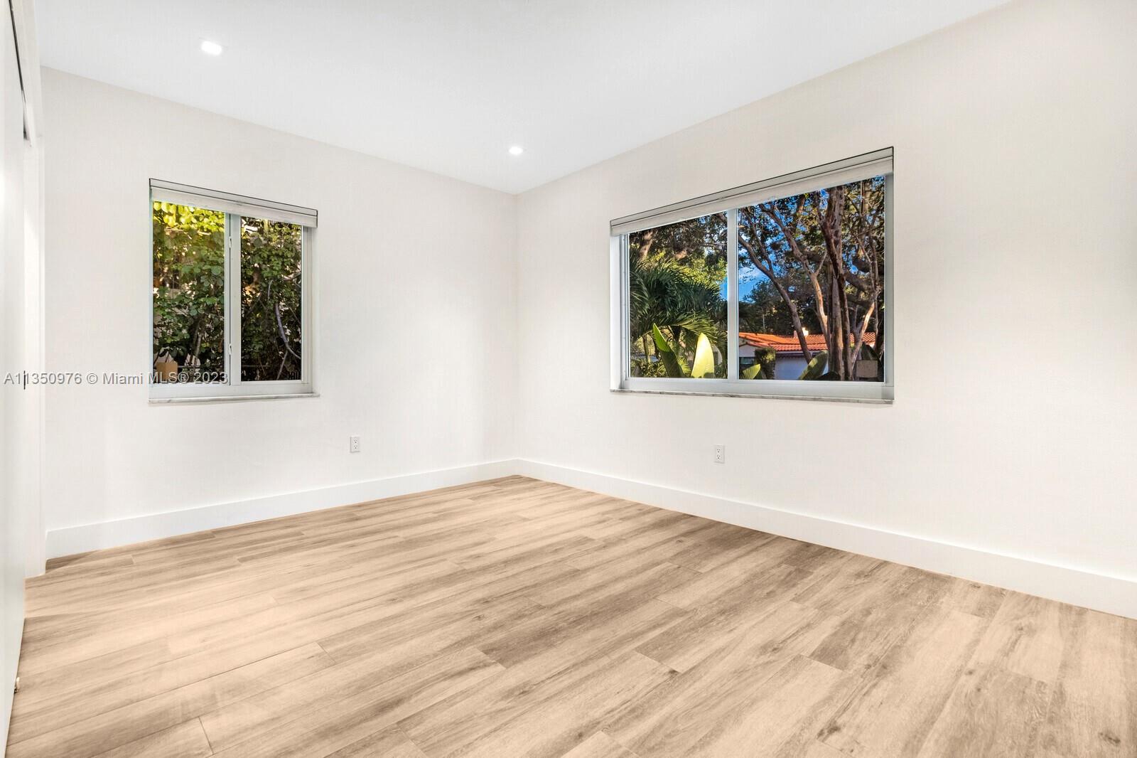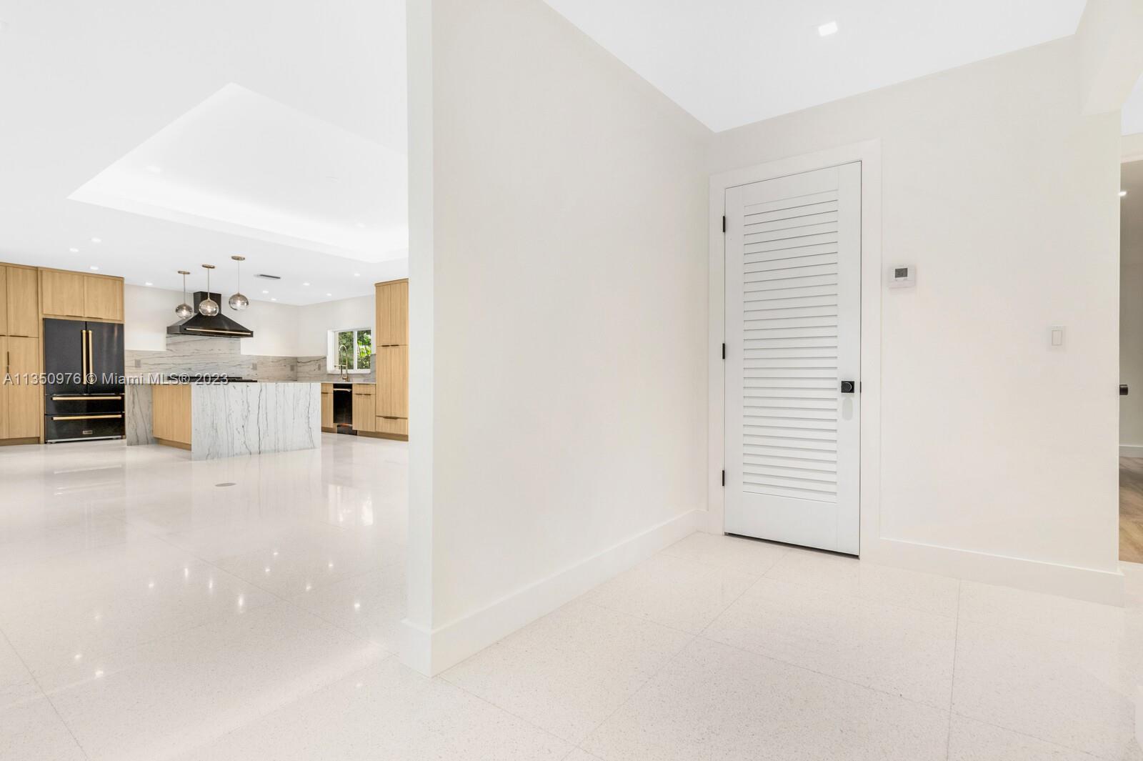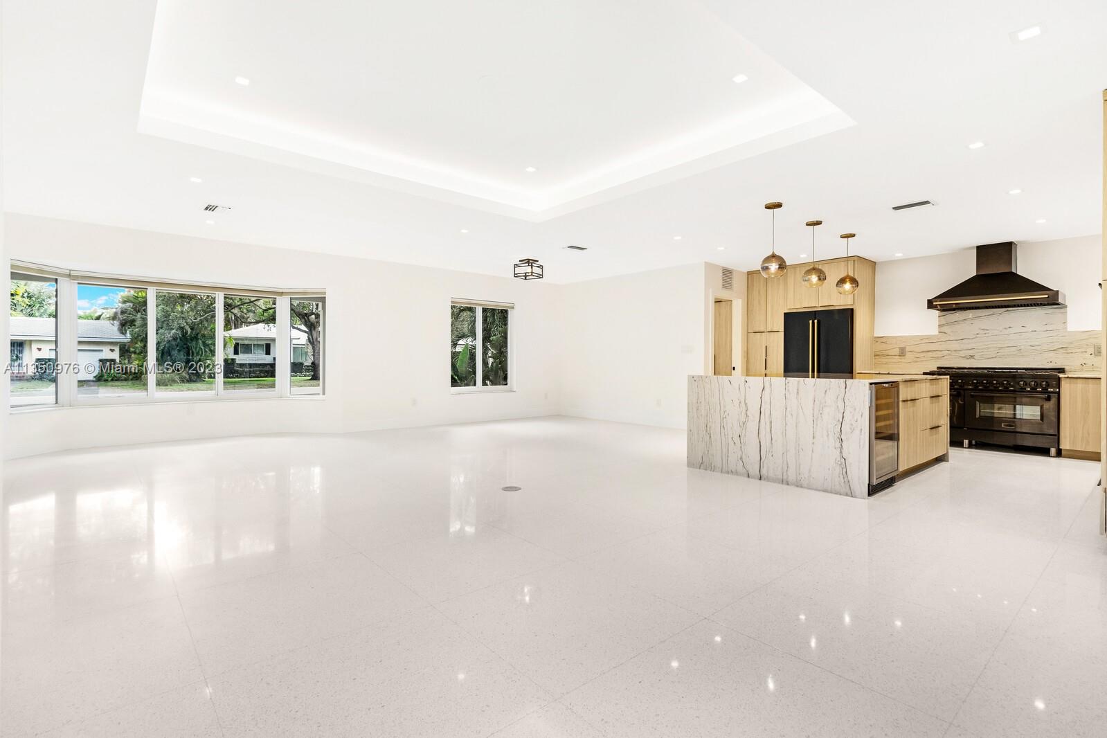 Florida living at its finest with custom curated home by local designer builder in desirable area of Miami Shores. Entry Foyer opens to expansive living overlooking lush backyard & pool. Two wings separate the home with 2 VIP suites equal in size to create 4 bedrooms, 3 full bathrooms & 1 half bath. The primary overlooks pool with private access, 2 walk-in closets, along with 2-person shower & soaking tub. With design in mind, the kitchen delivers custom cabinetry with oversized island that allows seating for more than 6 and commercial grade appliances including gas stove with dual oven. Plus, separate laundry room off kitchen. Retreat outdoors to 300 sq ft covered patio, 15x26 pool with water feature & green space. Rear parking for 2 vehicles. All new with permits.