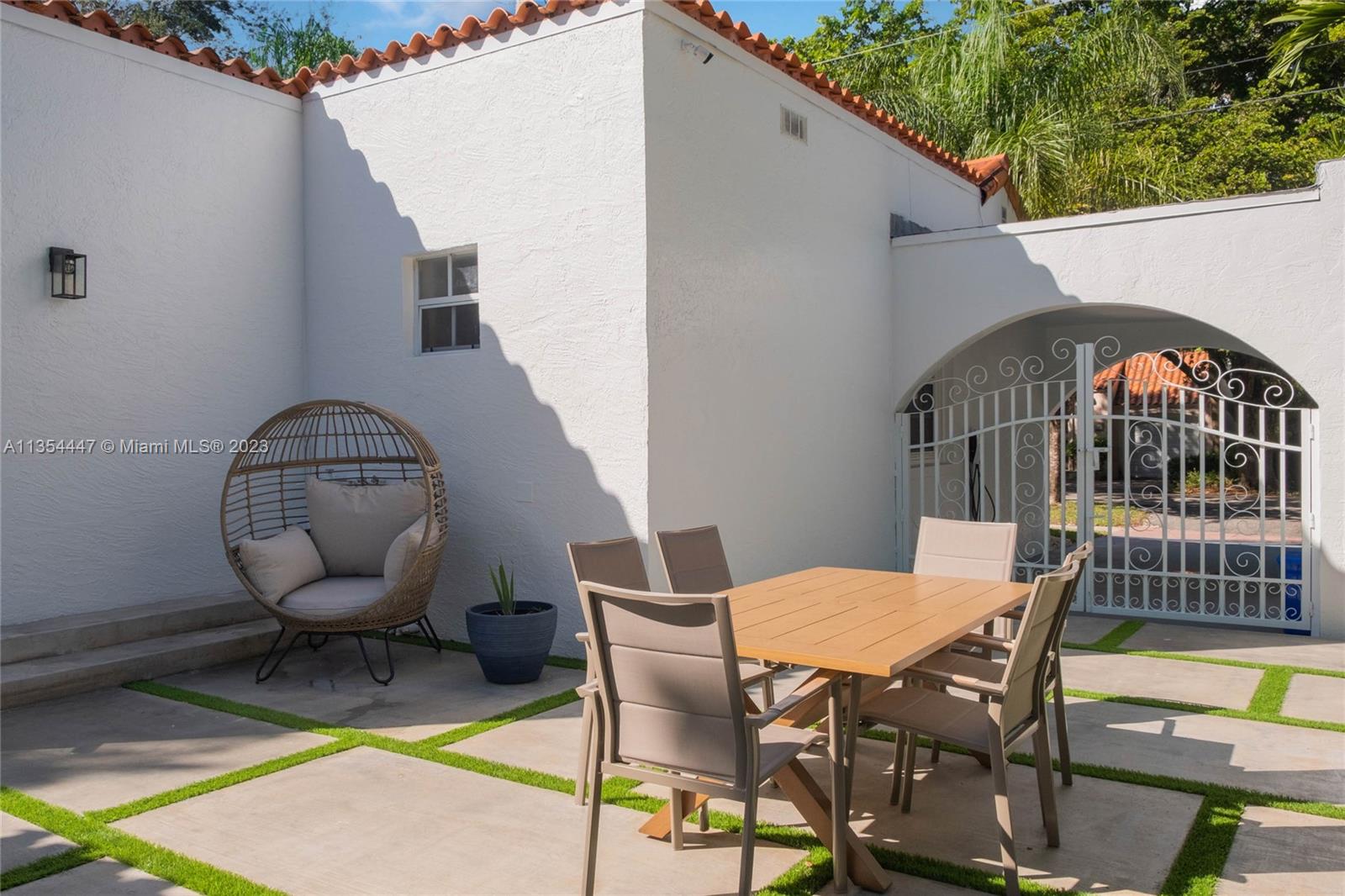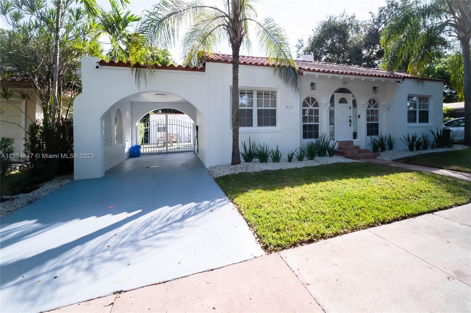 Coral Gables Old Spanish home, This home offes everything you need and more. With a total of 3 bedrooms and 2 baths in the main structure with a detached cottage with 1 bedroom and 1 bath. Updated electricity, reparaired roof with a year and fresh painted. The detached cottage has a full kitchen with full bath suitable for a complete separate living quarter. Completely renovated kitchen with top of the line appliances, washer and dryer unit, bar, original fireplace, ample carport with electric car charging station. Interior patio and huge yard with gazabo and plenty space for pool.