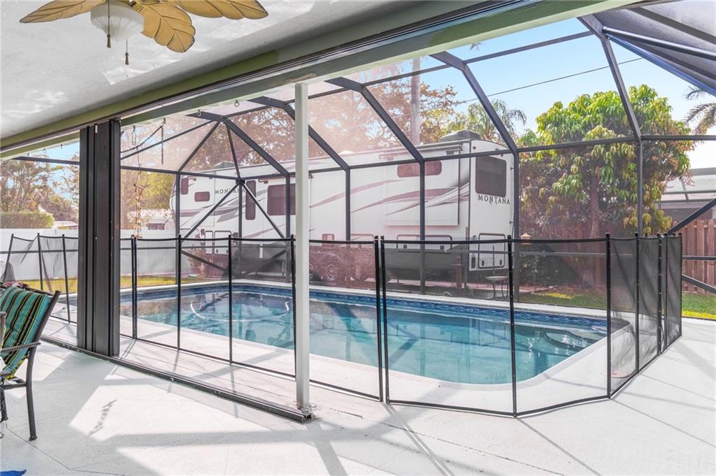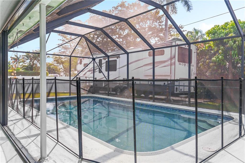 Extremely well maintained home ready for your cosmetic touches. Plenty of room for all of your toys! Large 2 car garage provides parking and storage. Circle driveway with large parking pad. There is even an concrete pad inside the fenced back yard - the perfect place to store a boat or RV. The living room, kitchen, and primary bedroom all have sliding glass doors that lead to the screened in porch and pool area. Most of the house has impact windows. The back porch has accordian storm shutters that enclose the porch and all rear doors. The exterior and most of the interior have recently been repainted. Pre-inspected so expect a clean inspection on this one! Den/office could be 4th bedroom. Owners will need to rent back until the school year is over.