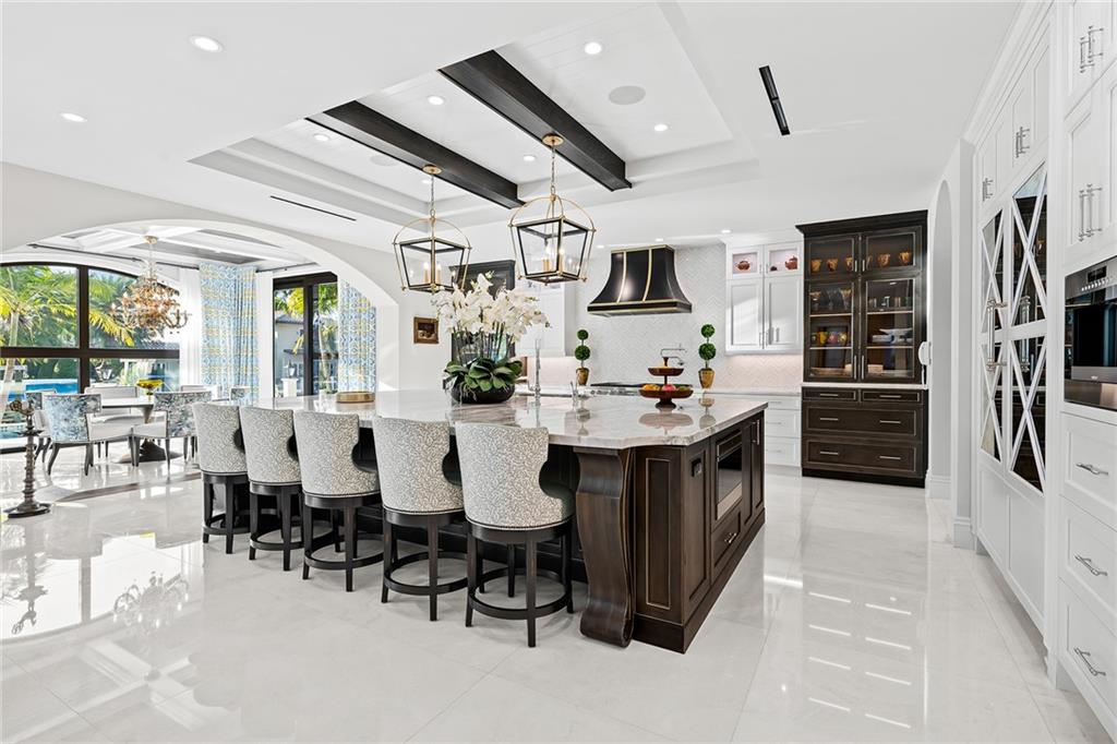 BESPOKE GRANDEUR!! 2020 CUSTOM!! 5 bedroom / 7.5 bath / 3 level residence. Well-conceived layout - epic two story foyer opens to living & formal dining rms, gorgeous gourmet kitchen w/spectacular island, breakfast rm, butler’s pantry, laundry, cabana bath, office w/cylindrical aquarium, wet bar & VIP guest suite are on first level; Ascend grand staircase to enter primary suite w/waterfront views, dual spa-like baths, boutique sized closets, safe rooms & balcony; Also residing on this level are 3 ensuite guest rms, & 2nd laundry. Elevator & exterior staircase gain access to 3 level family fun media rm w/full bath & lux sun deck w/2nd summer kitchen! Resort-like salt pool/spa, 100’ dock, 21K lift, summer kitchen, EV Charging; A/C Garages w/5 car availability, +golf cart bay, 100K Generator.