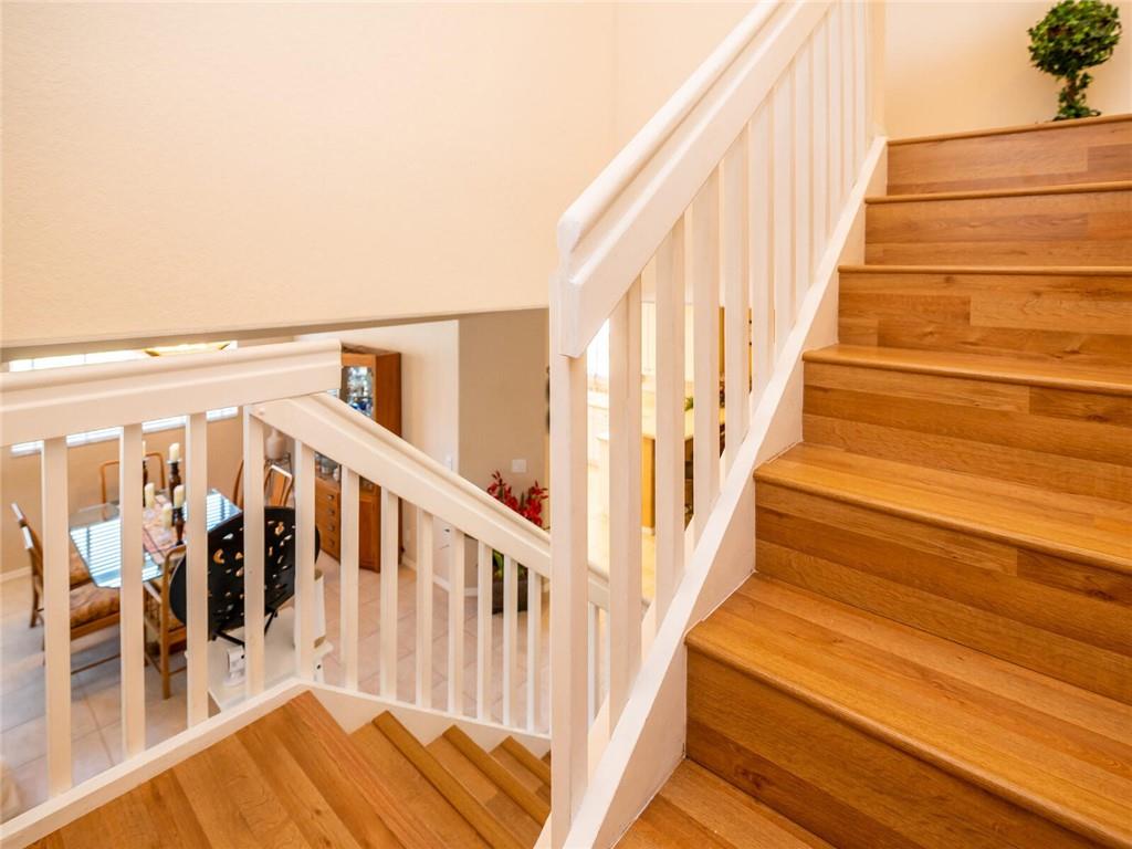 First time offered! REGENT model with sitting rm option in master bedroom. Oversized Cul-De-Sac LAKE lot. NEW ROOF JAN. 2021. Freshly painted exterior 2022. S/S appl & 42" white cabinets. Entire upstairs has wood floors but wood floors in front bedrooms, hallway & staircase are NEW. Master Br & one front br has closet built-ins. 1 br has built-in desk that stays. Covered/screened porch w/private lake view. Master has sundeck off of sitting rm. Plantation shutters on Family rm slider. HOA includes Internet, Blue Stream TV, Guard Gate, lawn maint, front yard tree trimming, sprinklers, comm pool/fitness rm. Owner prefers At Least 1 hour advance notice. DOG on premises! MLS information is TAX ROLL generated & not guaranteed to be accurate.