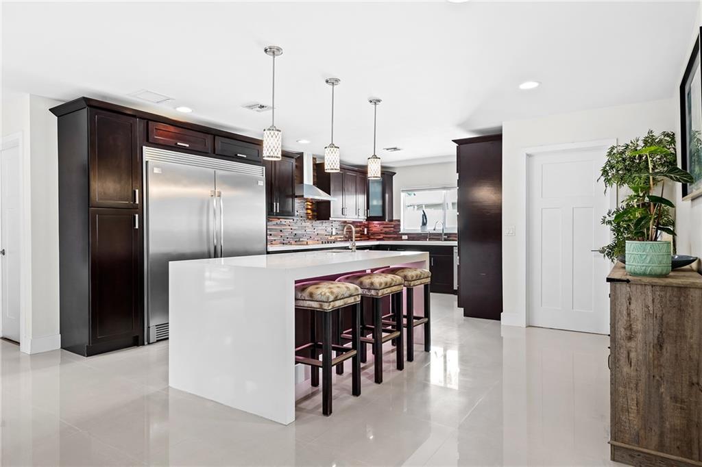Sophisticated luxury in Coral Ridge Country Club!!! Experience the WOW factor the moment you enter this completely updated contemporary style home w/luminous open concept living. Opulent finishes throughout, the spacious flr plan is conducive to today’s lifestyle boasting a culinary-inspired kitchen w/ center island & sink, stainless steel appliances, professional grade refrigerator, wine cooler & quartz counter tops. The oversized primary suite has direct access to the resort-style backyard, walk-in closet & exquisitely designed primary bathrm. Enjoy your tropical backyard w/heated saltwater pool/spa. Solar panels, impact windows & doors, Nest thermostat, Ring Doorbell, meticulous landscaping, glistening floors completes this retreat. Close to beach, restaurants & shops. Sq Ft from BCPA.