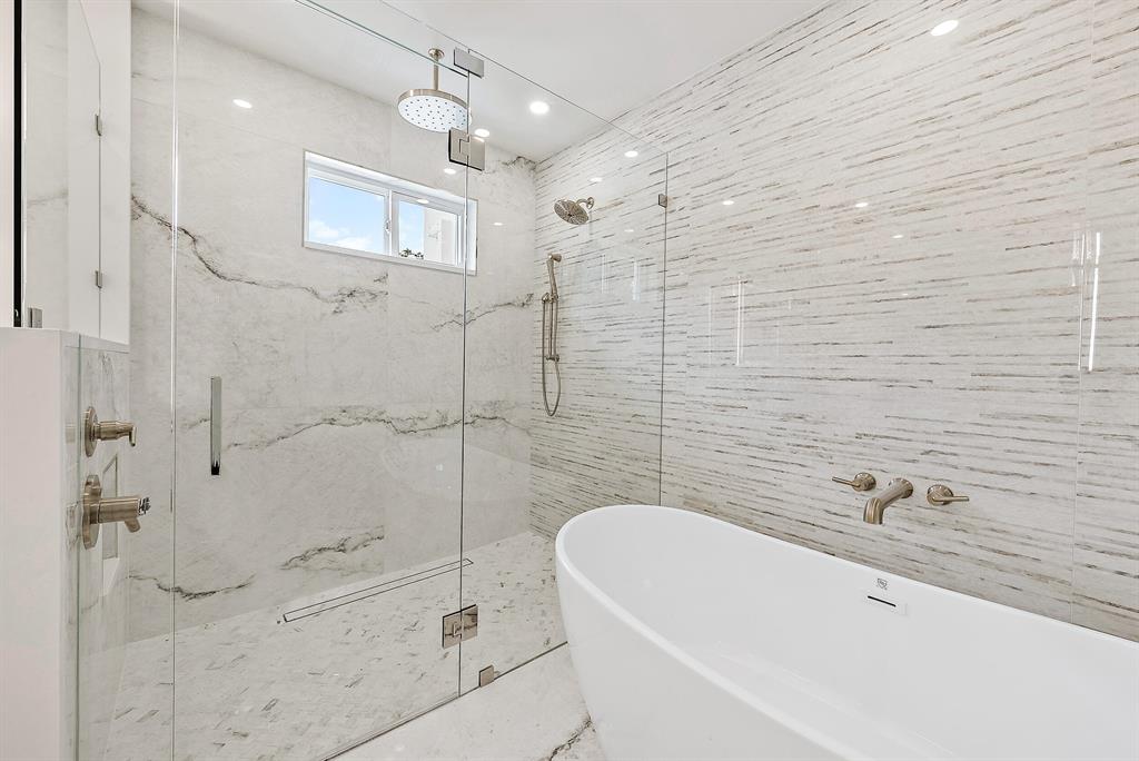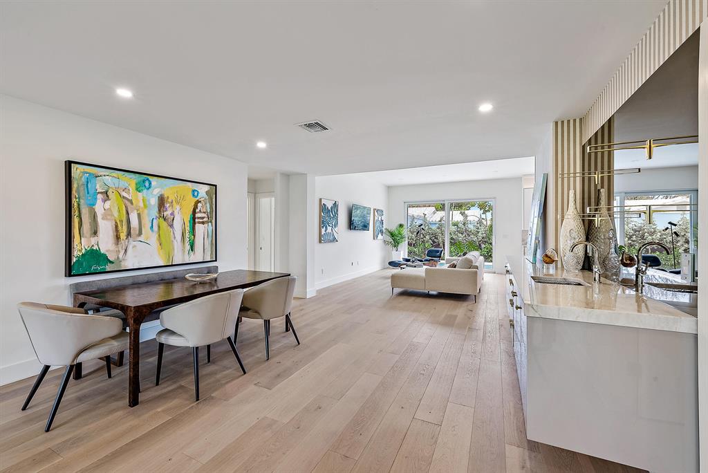 Light filled 4 bedroom, 3 full bathrooms + powder room (plus office/den/5th bedrm) home has been completely reimagined and re-built in every possible way. The centerpiece of this coastal, chic property is the fabulous chef's kitchen with gas stove, refrigeration columns, double ovens, 2 sinks, huge island with honed quartzite countertops overlooking the brand new swimming pool and spa. Split master suite features large walk-in closet, access to pool and patio, 2 vanities, large shower and tub. All impact rated openings & new metal roof. High-end finishes that are a must see! Centrally located in SoSo near restaurants, shopping, Palm Beach, Kravitz Center and PBI airport. Garage is finished with a/c, drywall, led lighting, epoxy floor & Clopay door. This construction project is brand new