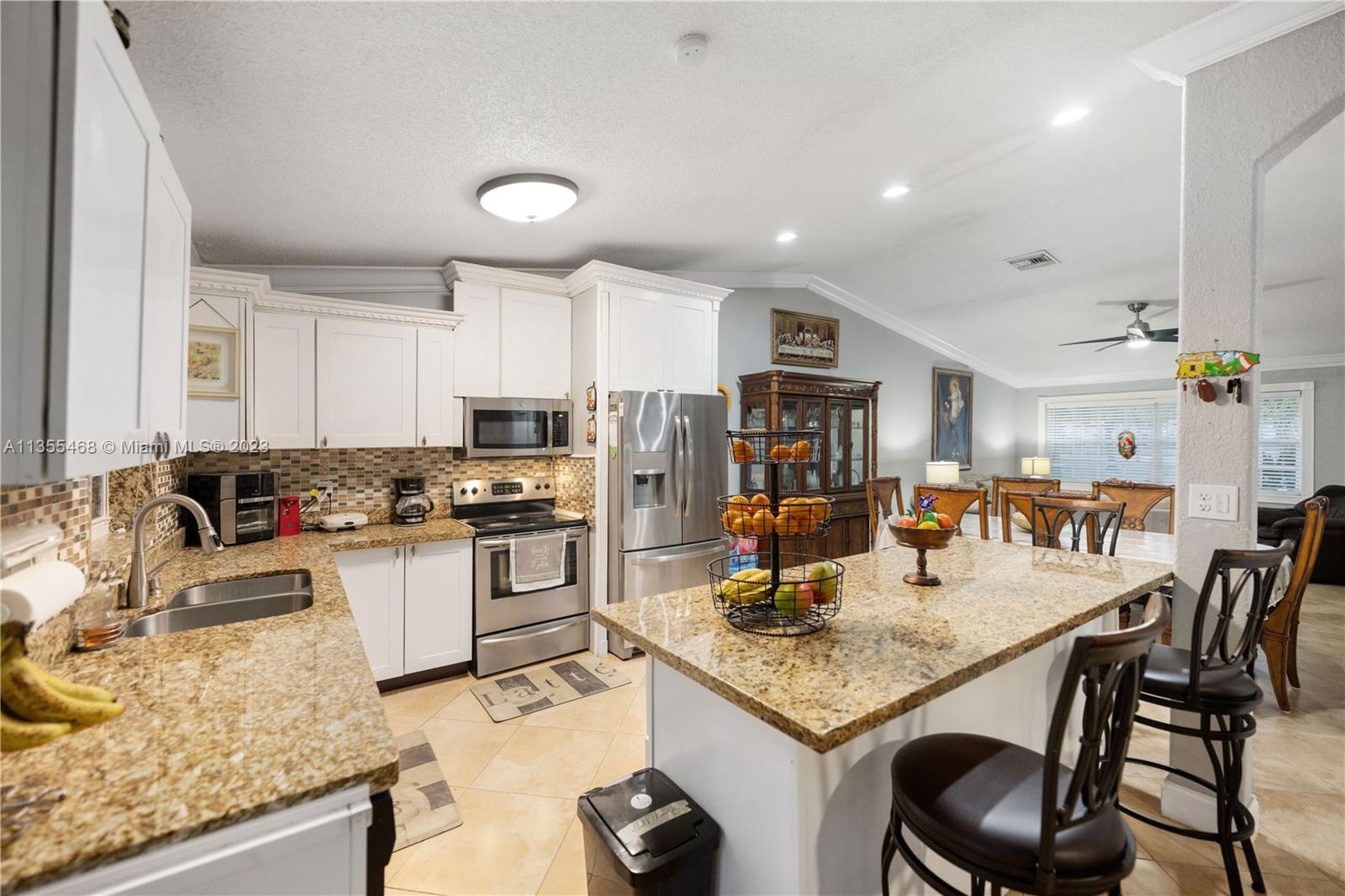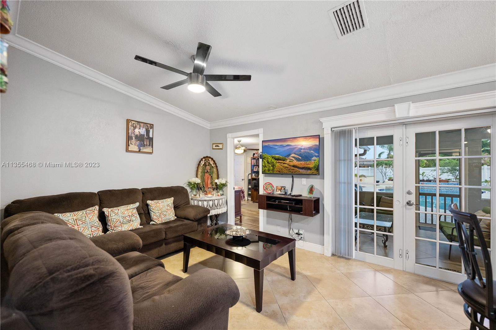 This beauty is a perfect oasis for your family. As you enter the living room, you'll notice the tile flooring that adds a touch of elegance to the space. The same tile flooring extends into the kitchen and bathrooms, making cleaning a breeze. The living area and master bedroom have lovely French doors that lead out to the screened porch. The backyard is adorned with tropical trees and plants, including avocado, mango, yucca, pineapple, bananas, and pigeon peas. This house also features a workshop, perfect for a hobbyist or DIY enthusiast. The pool is the highlight of the backyard and has an updated pump, making it easy to maintain. The house has an updated AC system installed since the current owner purchased the property, ensuring that you'll stay cool and comfortable all year round.