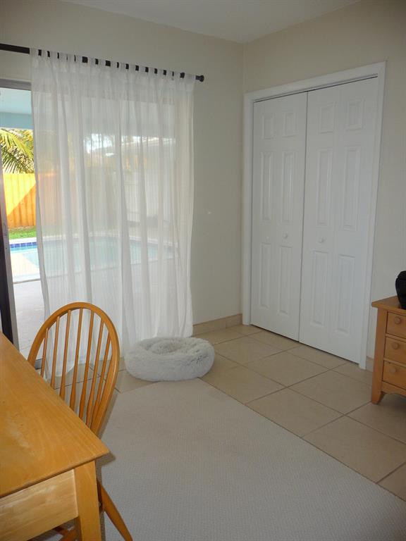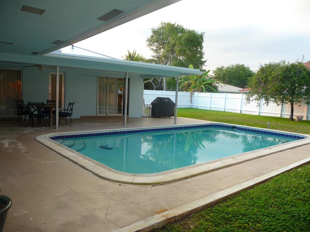 Beautiful updated 4 bedroom, 2 bath pool home on large lot in Boca Raton Square, foyer with entry closet, split bedroom plan, plantation shutters in living room, crown molding in living/dining/main bedroom, family room, inside utility room, cabana bathroom, 2 car garage, tile flooring throughout home, spacious under roof area poolside with pass-through from kitchen, large fenced backyard,roof replaced 2020,a/c installed 2023,hot water heater 2022,updated electrical panel,6 ceiling fans,hurricane metal panels