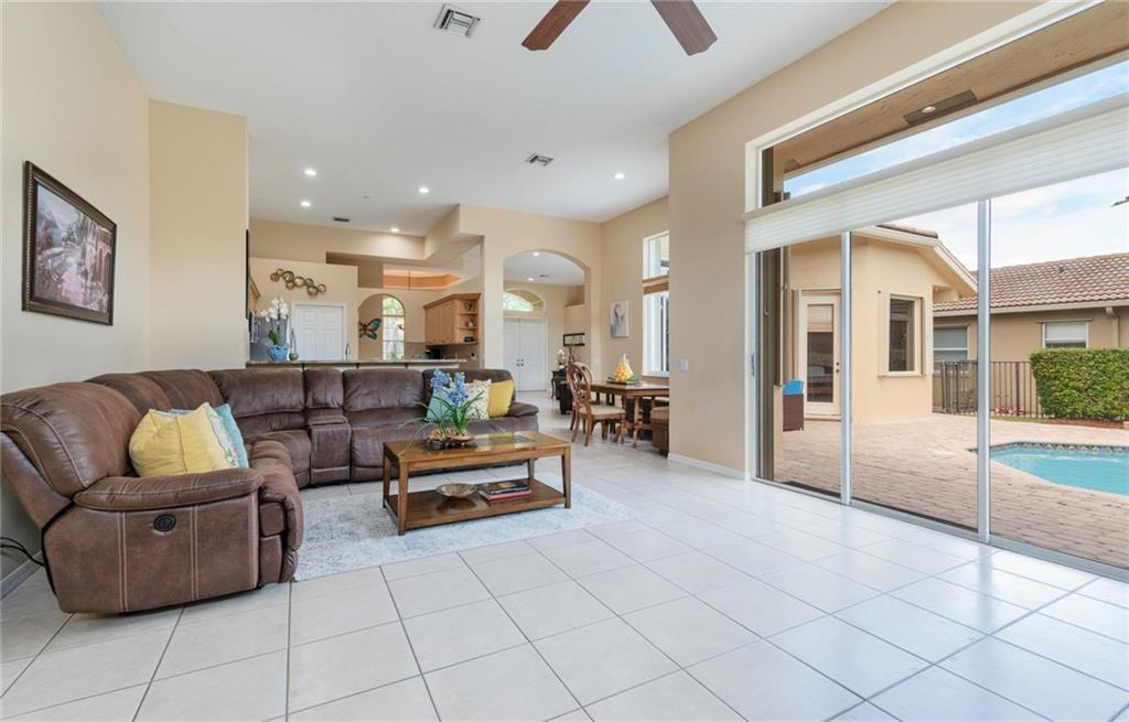 A stunning one-story home in the sought-after Oak Ridge community of The Ridges in Weston. This residence features an open and extended floor plan with high-volume ceilings. With a three-way split design, the home features 4 generously sized bedrooms, walk-in closets, and 3 full bathrooms. Tile floors in the living area and laminate wood in bedrooms. The kitchen featues wood cabinets, granite countertops, and stainless steel appliances. New AC unit (2021) and water heater (2022). Equipped with accordion shutters/panels. The oversized lot provides a great backyard space with a recently resurfaced pool and spa. Residents of Oak Ridge can enjoy the impressive amenities of The Ridges Park. The residence is located within walking distance of 3 top-rated A+ schools.
