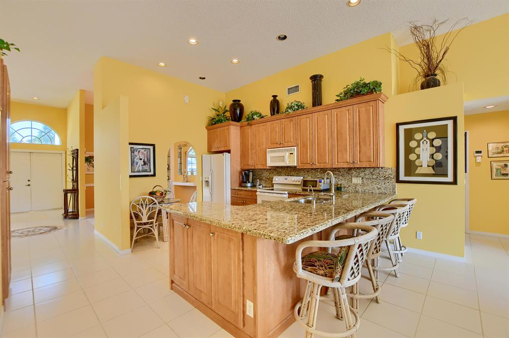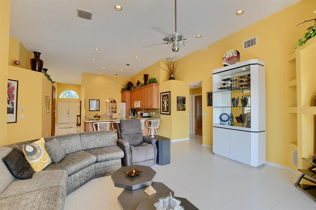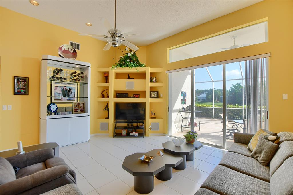 Starting w/the circular driveway for extra parking, this 4 bedroom open concept spacious home has it all. Located on an interior lot w/serene lake views. Entry foyer, formal dining & living rooms, eat-in kitchen w/updated cabinets, pantry & granite counters. Open family room over looks the extended screened in patio ideal for family gatherings & entertaining. Primary bedroom suite, walk-in closets, bathroom w/updated vanity w/dual sinks, roman tub & glass enclosed shower. Split bedroom floor plan, renovated cabana/main bathroom w/glass enclosed shower & vanity. Interior laundry room, ceiling fans, built-in units, a/c 2015, water heater 2013, accordion storm shutters. A rated schools, clubhouse, gym, tennis, pool & playground. Ideal for all ages- a great place to call home.