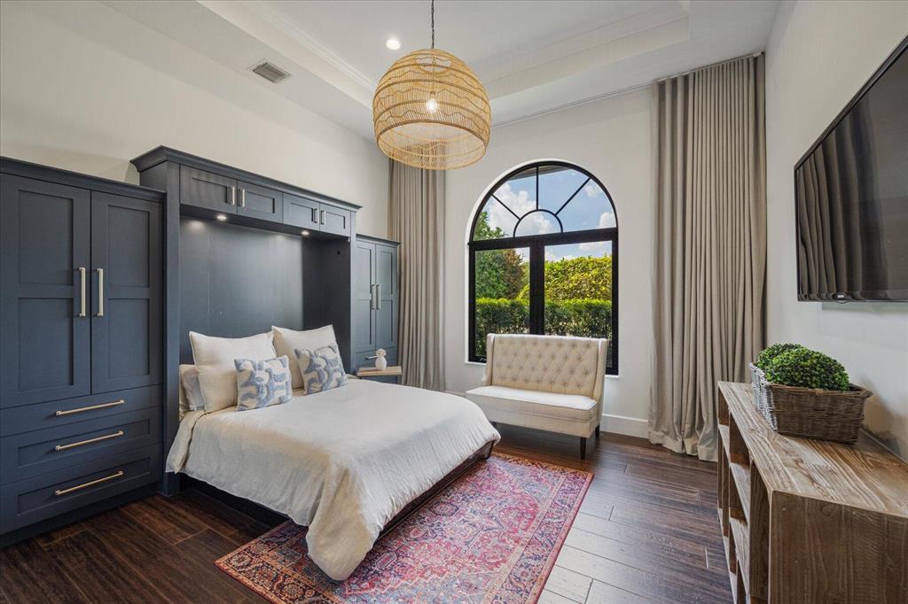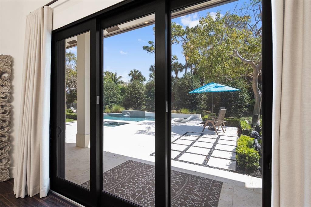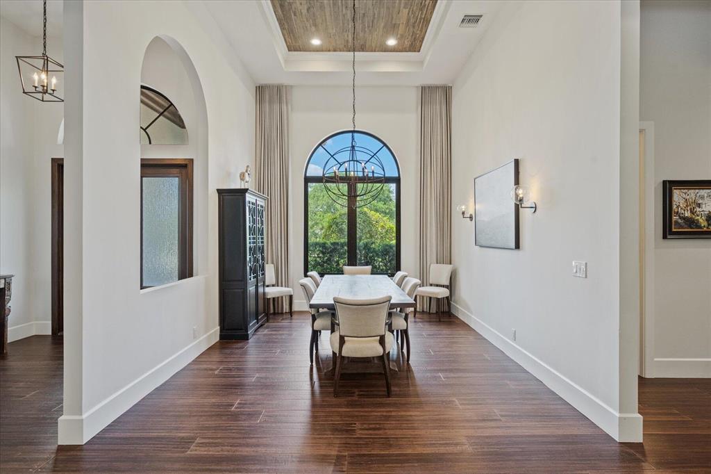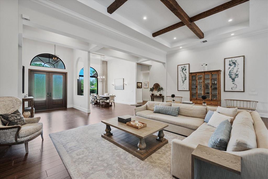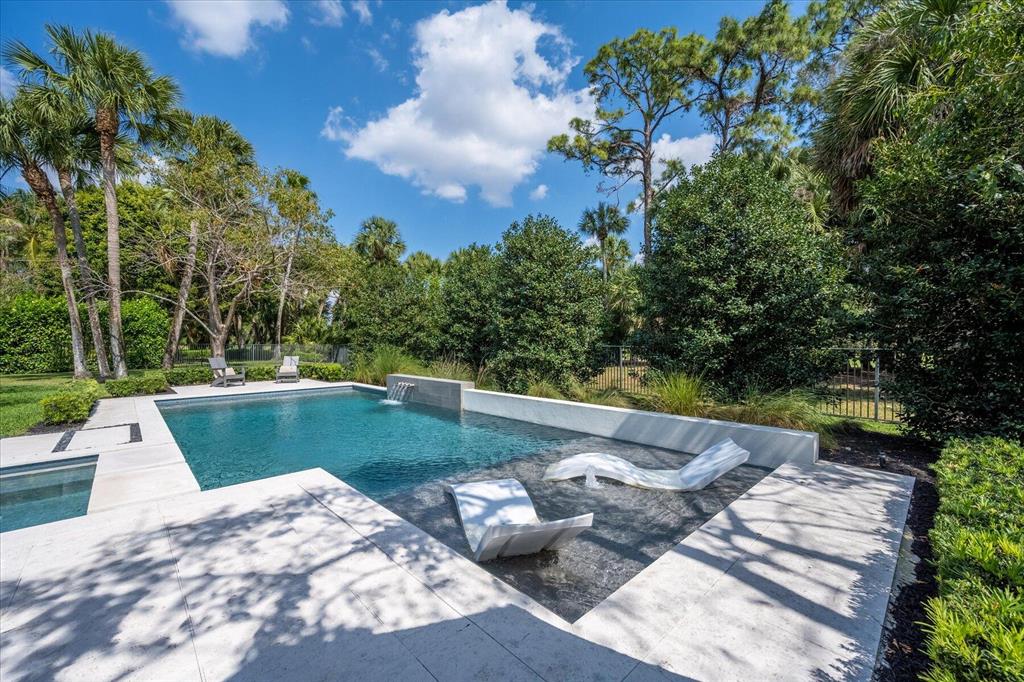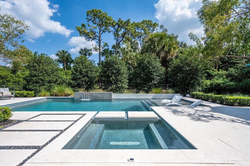 Located in West Palm Beach's premier gated community of Breakers West, this beautifully renovated custom home is brimming with character & quality finishes and situated on .49 acre lot along the renown Mayacoo Lakes Golf course in the back and a scenic in the front creating ultimate privacy. Authentic Chicago brick circular driveway leads to portico entry with reeded glass and wood impact front doors. Once inside, you will find an open floor plan with spacious Great Room featuring rich wood flooring, 14ft ceilings, crown molding and wood beams on the ceiling for more character. Formal Dining Rm with large window overlooks the lake in front & opens to Great Room. Nearby is the Powder Bath with white shiplap walls & wall-mounted porcelain and chrome sink.
