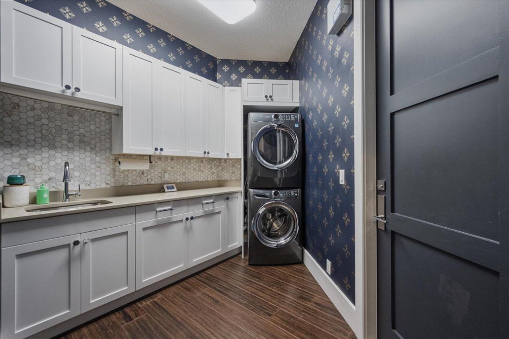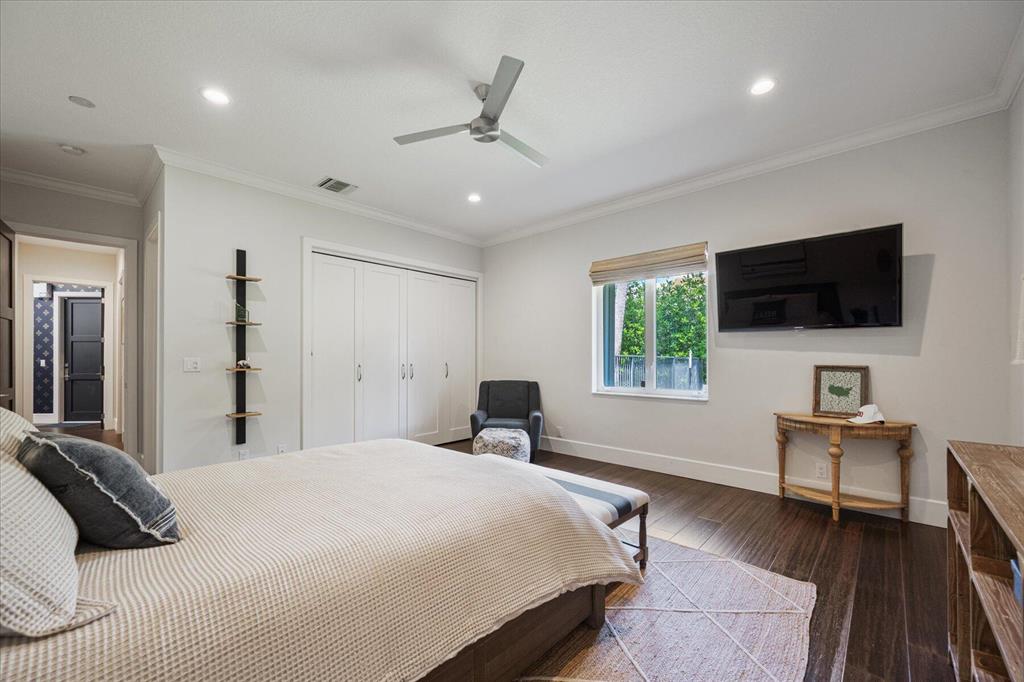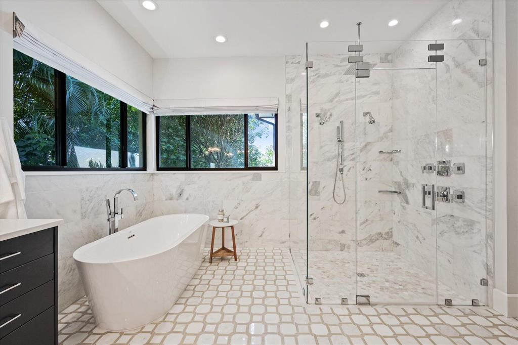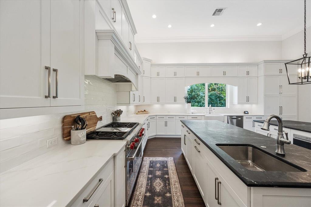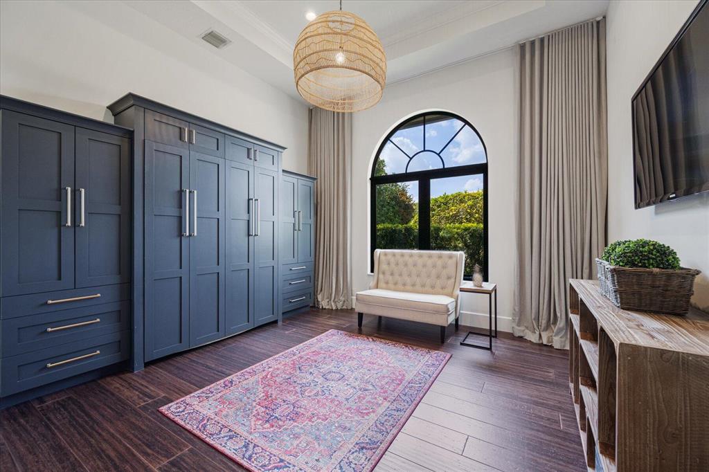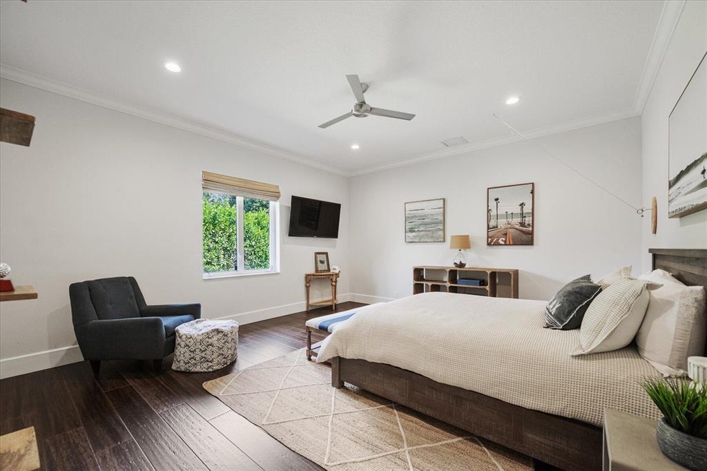Located in West Palm Beach's premier gated community of Breakers West, this beautifully renovated custom home is brimming with character & quality finishes and situated on .49 acre lot along the renown Mayacoo Lakes Golf course in the back and a scenic in the front creating ultimate privacy. Authentic Chicago brick circular driveway leads to portico entry with reeded glass and wood impact front doors. Once inside, you will find an open floor plan with spacious Great Room featuring rich wood flooring, 14ft ceilings, crown molding and wood beams on the ceiling for more character. Formal Dining Rm with large window overlooks the lake in front & opens to Great Room. Nearby is the Powder Bath with white shiplap walls & wall-mounted porcelain and chrome sink.