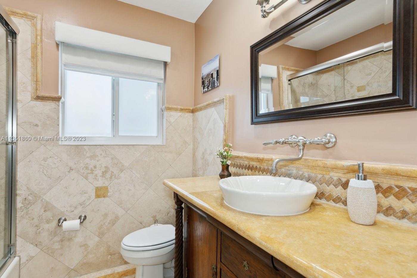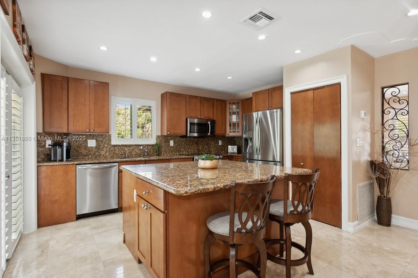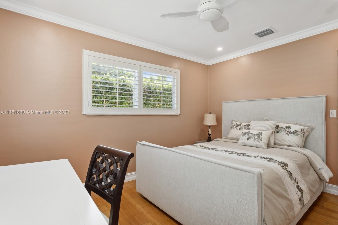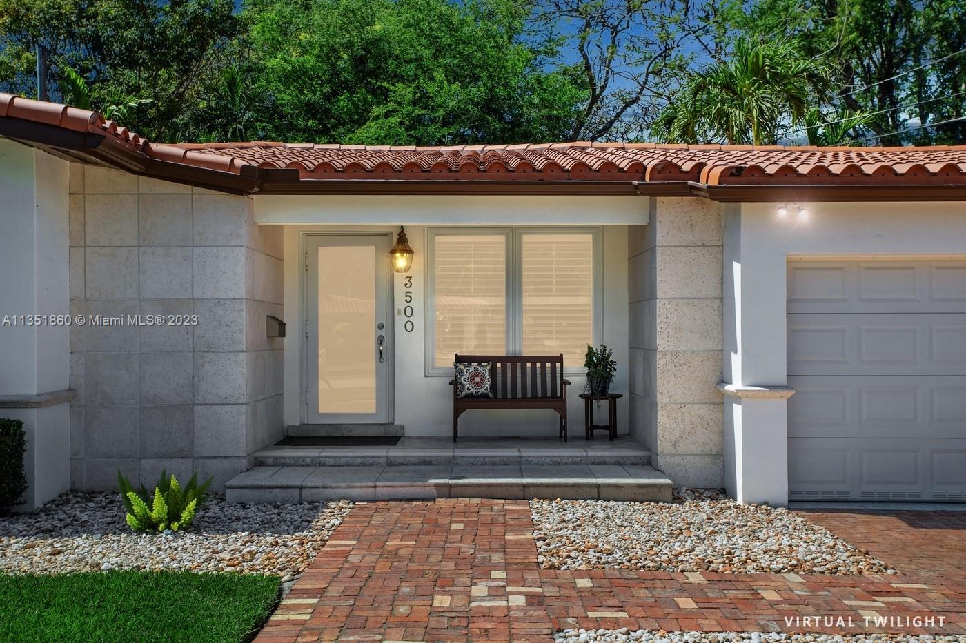 Charming and elegantly updated Gables gem! Enter into this beautiful move in ready, open floor plan to experience the perfect ambiance offering Impact windows /doors, immaculate neutral travertine and hardwood floors, plantation shutters throughout and a new Carrier A/C with u.v. light, new duct work and PVC plumbing. Perfect for intimate gatherings with an over sized island with seating, temperature controlled wine cooler, stainless steel appliances ,wood and granite kitchen, including a full house Generac generator. Crown molding with delicately designed sculptured ceilings, recessed lighting and a full 2 car garage make this the perfect oasis to include outdoor relaxation on the Chicago brick patio among mature and meticulously manicured foliage with a park like setting. Welcome Home!