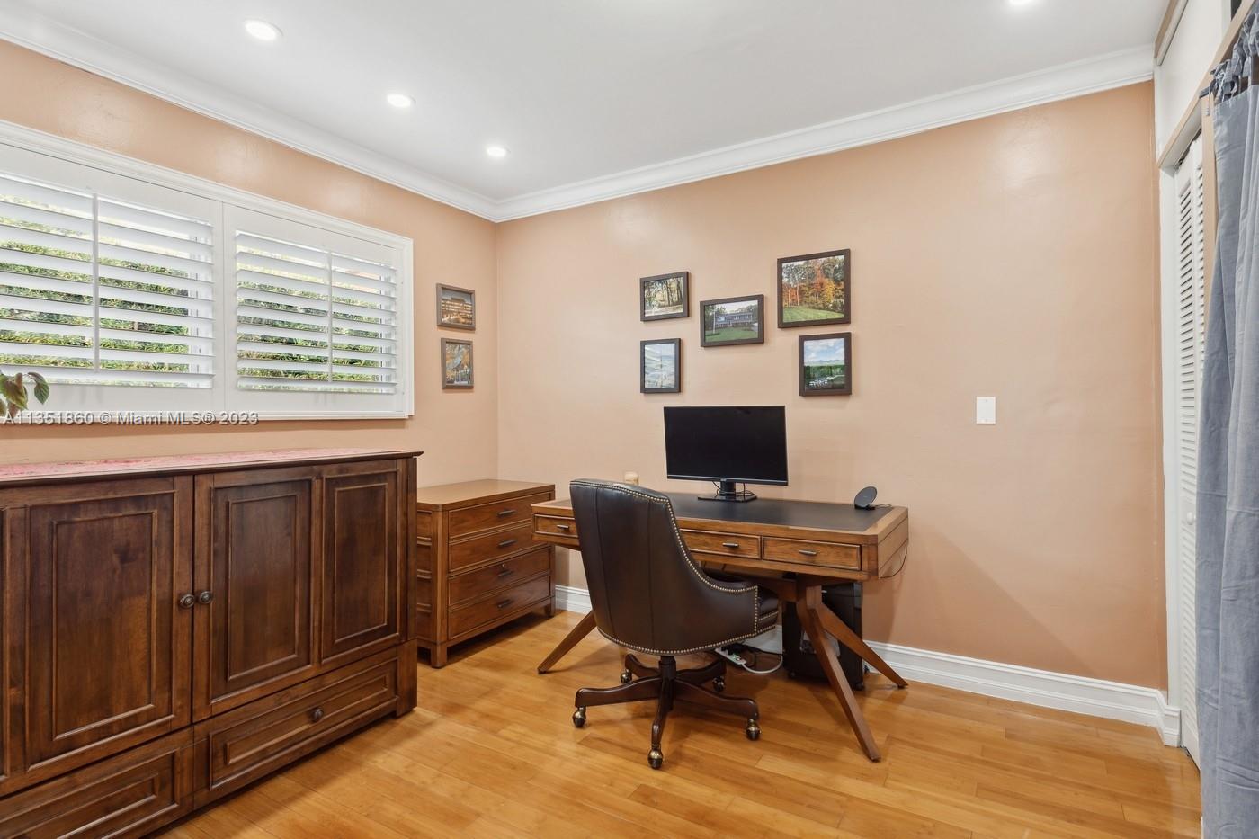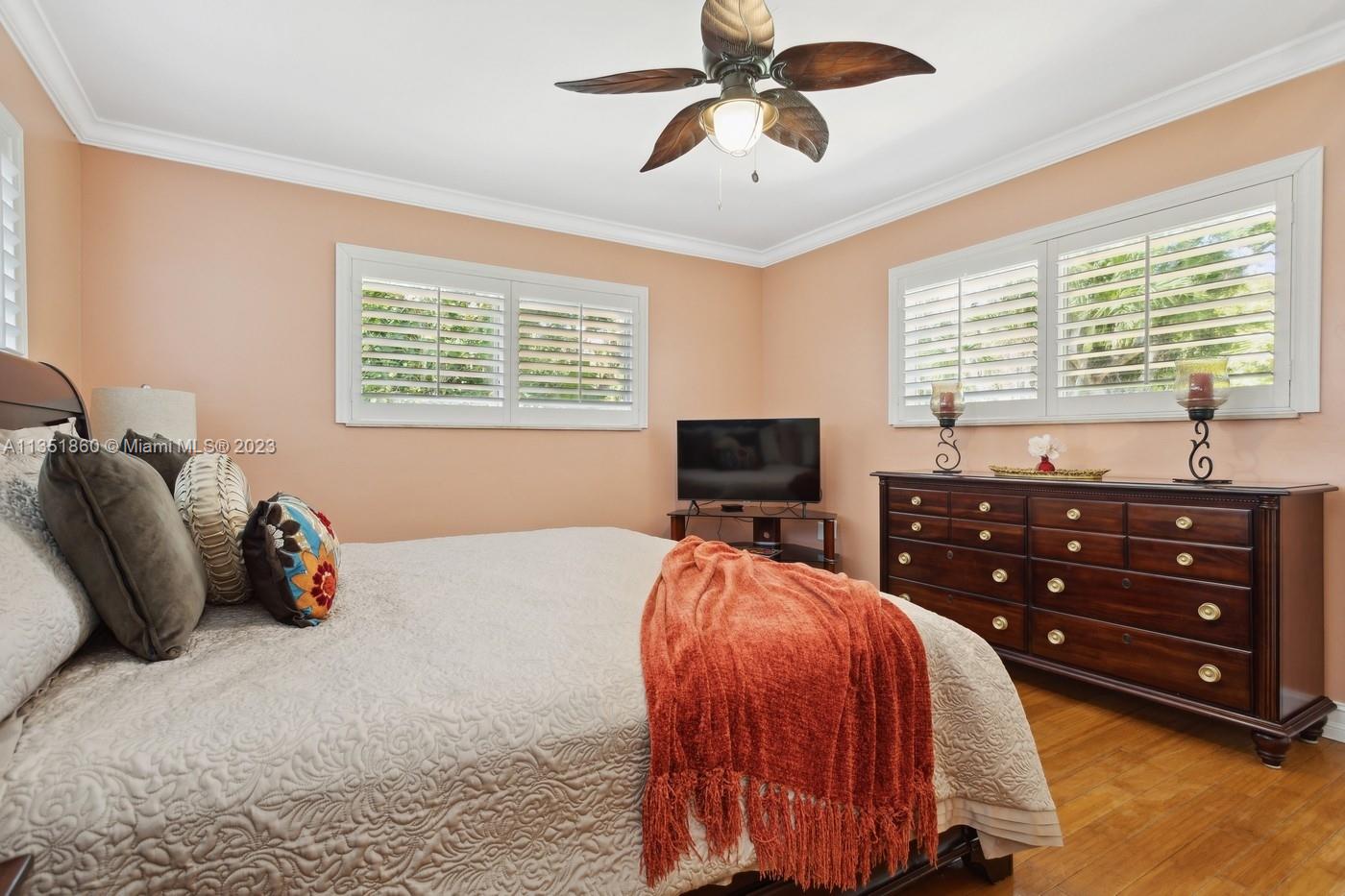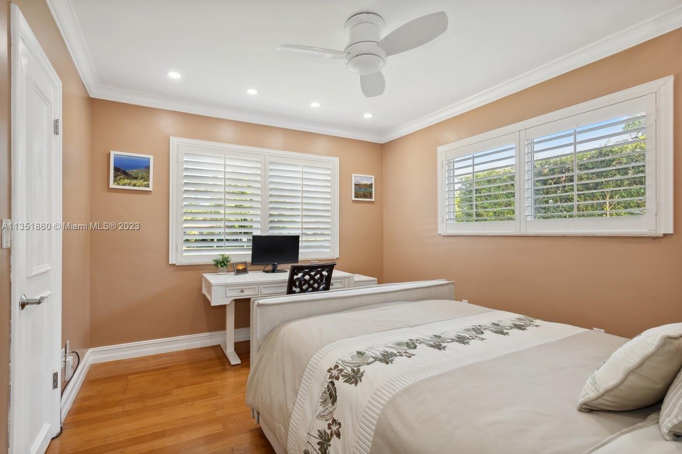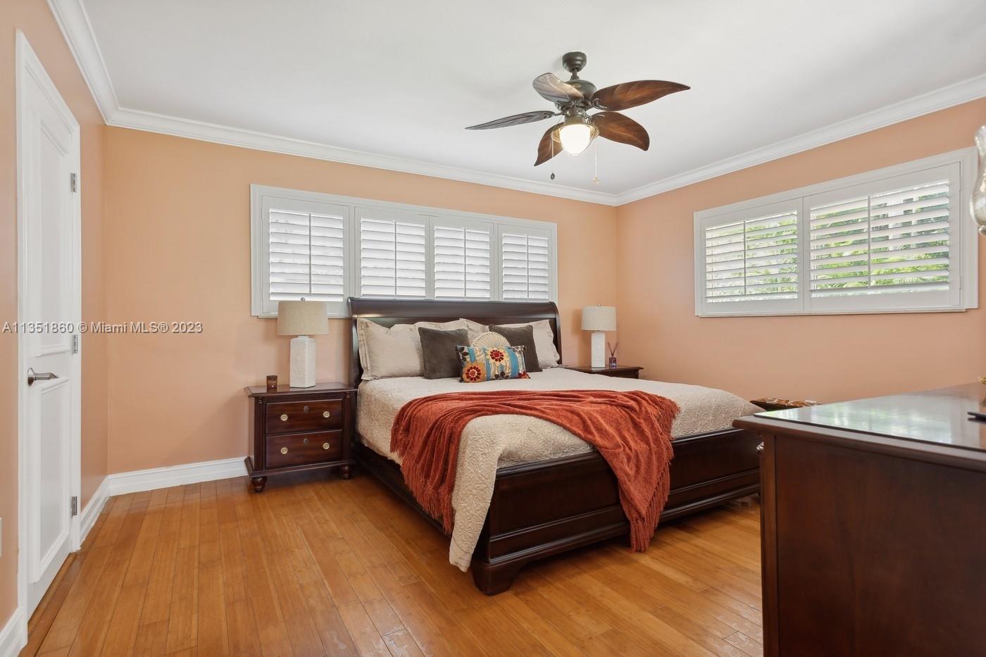 Charming and elegantly updated Gables gem! Enter into this beautiful move in ready, open floor plan to experience the perfect ambiance offering Impact windows /doors, immaculate neutral travertine and hardwood floors, plantation shutters throughout and a new Carrier A/C with u.v. light, new duct work and PVC plumbing. Perfect for intimate gatherings with an over sized island with seating, temperature controlled wine cooler, stainless steel appliances ,wood and granite kitchen, including a full house Generac generator. Crown molding with delicately designed sculptured ceilings, recessed lighting and a full 2 car garage make this the perfect oasis to include outdoor relaxation on the Chicago brick patio among mature and meticulously manicured foliage with a park like setting. Welcome Home!