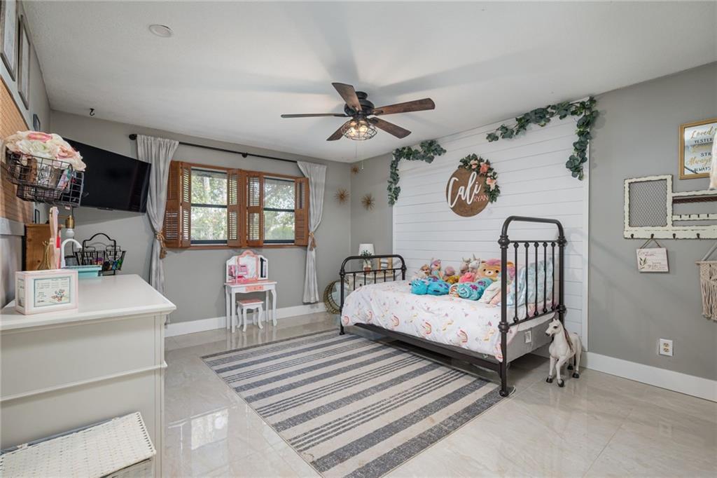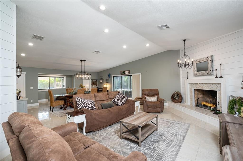 This amazing ranch style home sits on a large lot and has great entertaining space inside and out. Enter to a spacious foyer with bright natural light from the skylight. The foyer opens up to a large utility room, massive living and dining room as well as a beautiful kitchen and family room. This house features new 24x24 tile throughout, updated kitchen, guest bath and half bath. Step outside and enjoy the screened in patio as well as the newly refinished pool or relax from the heat under the new awning. The bedroom wing features large bedrooms as well as a separate master oasis. All bedrooms also have built in closets.