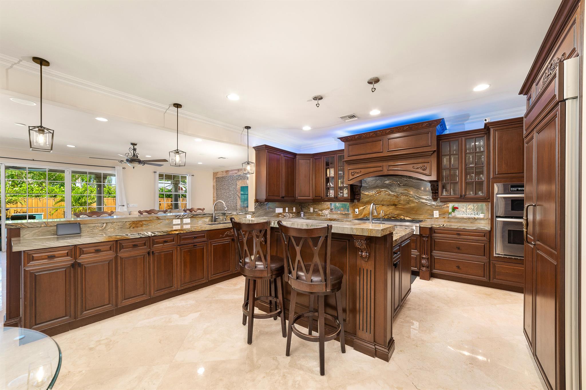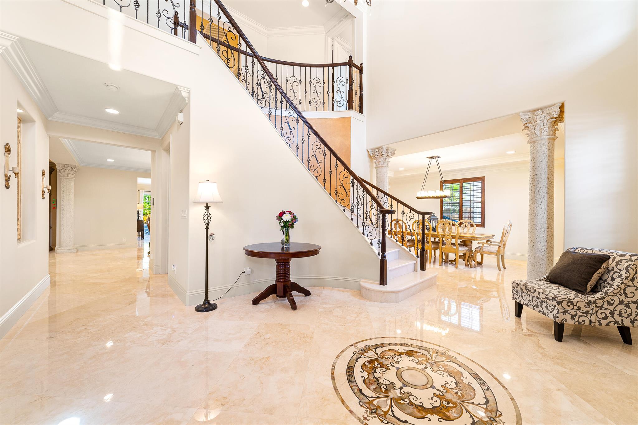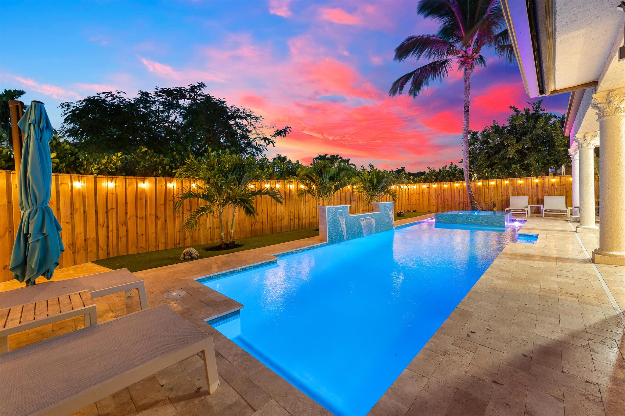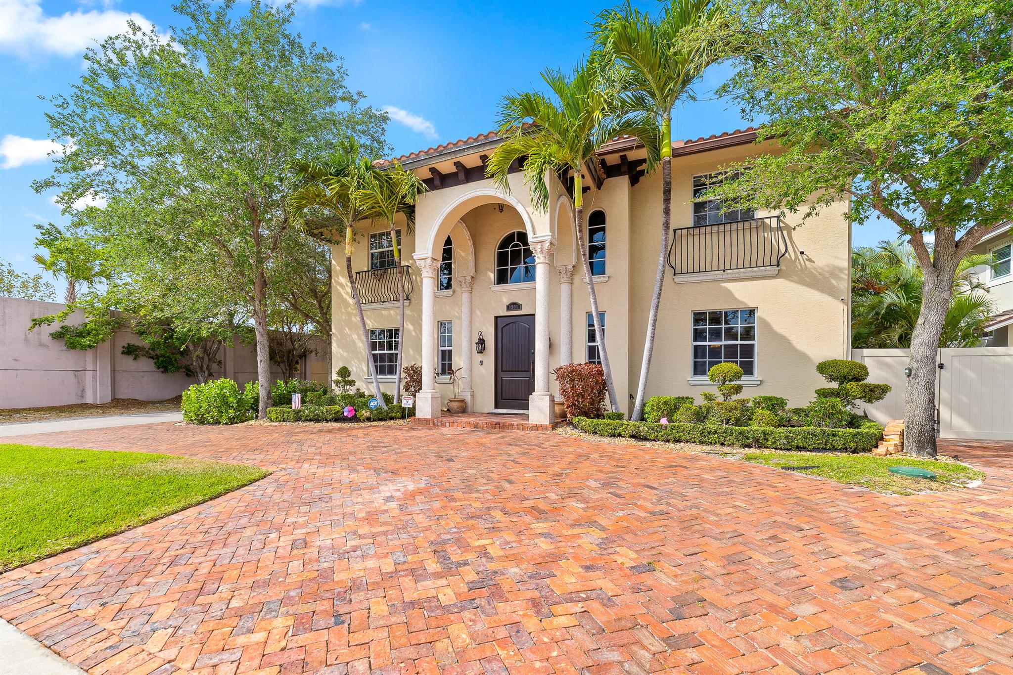 Impressive Mediterranean home on a private corner lot in non HOA community Palm Beach Farms. Close to A-rated schools including Addison Mizner Elementary, shopping, restaurants, parks and beach. Grand entrance with 20 ft ceilings, travertine marble flooring with onyx marble inlay, spacious floorplan, impact windows and doors make the house very quiet, open kitchen with top-of-the-line appliances, exotic quartzite countertops, large walk in pantry, new flat roof, partial home generator, and new hot water heater. Upstairs a spacious spa-like primary suite and four additional bedrooms. Two NEW A/C units. Private, fenced in, resort-style backyard oasis with a fully automated NEW heated saltwater pool & infinity spa & full cabana bathroom. Side yard gives you space for your boat or jet skis.