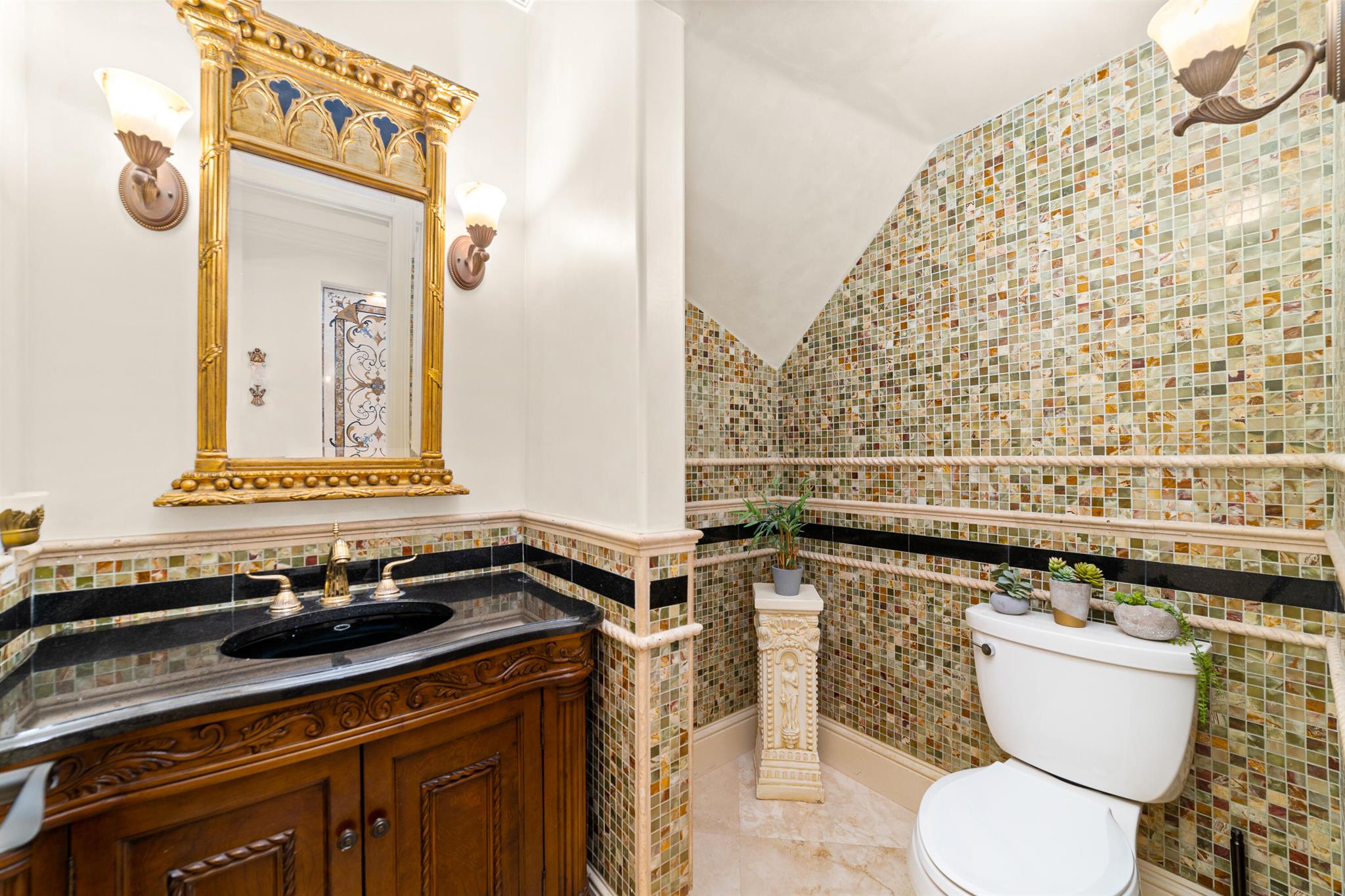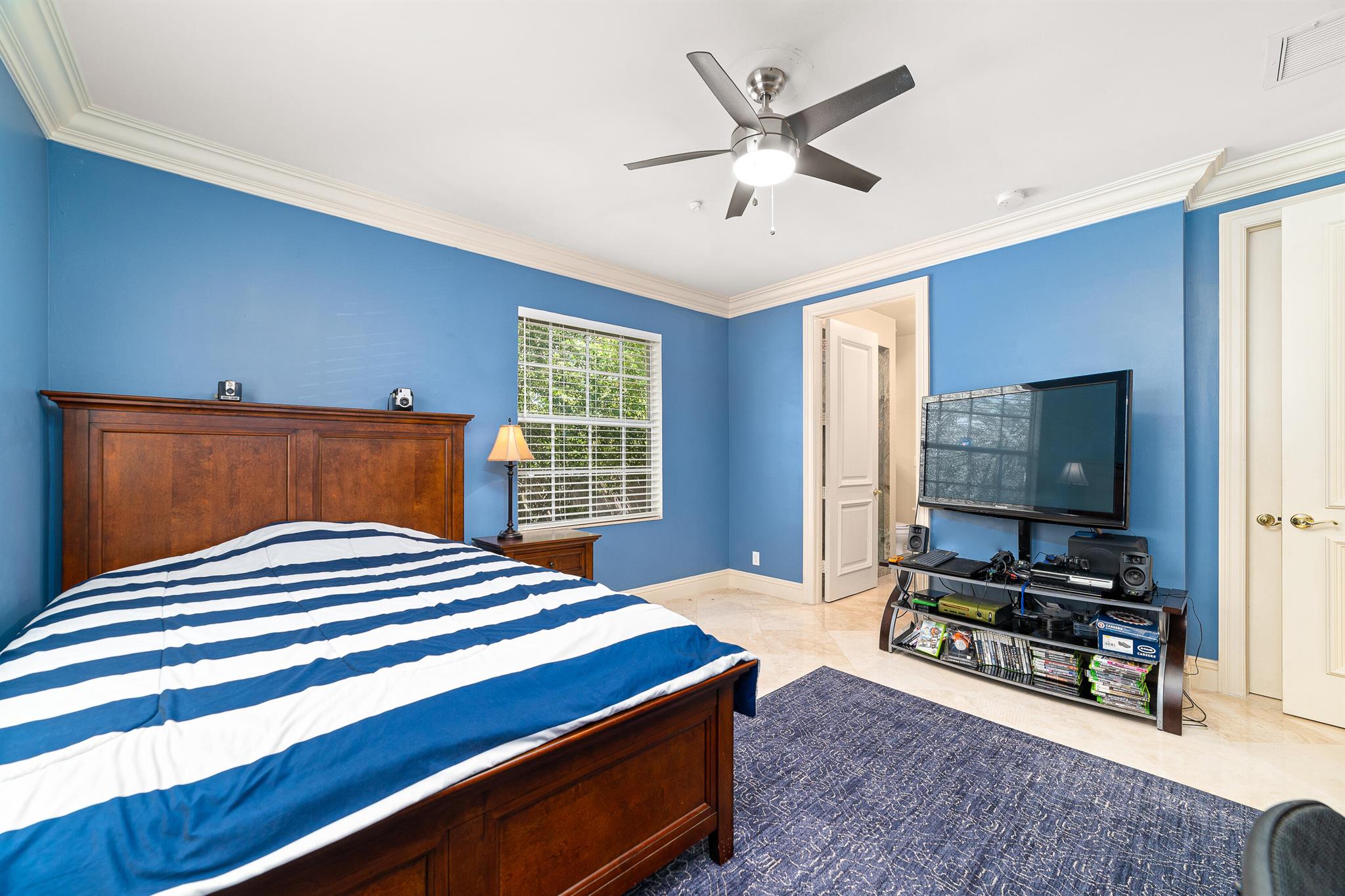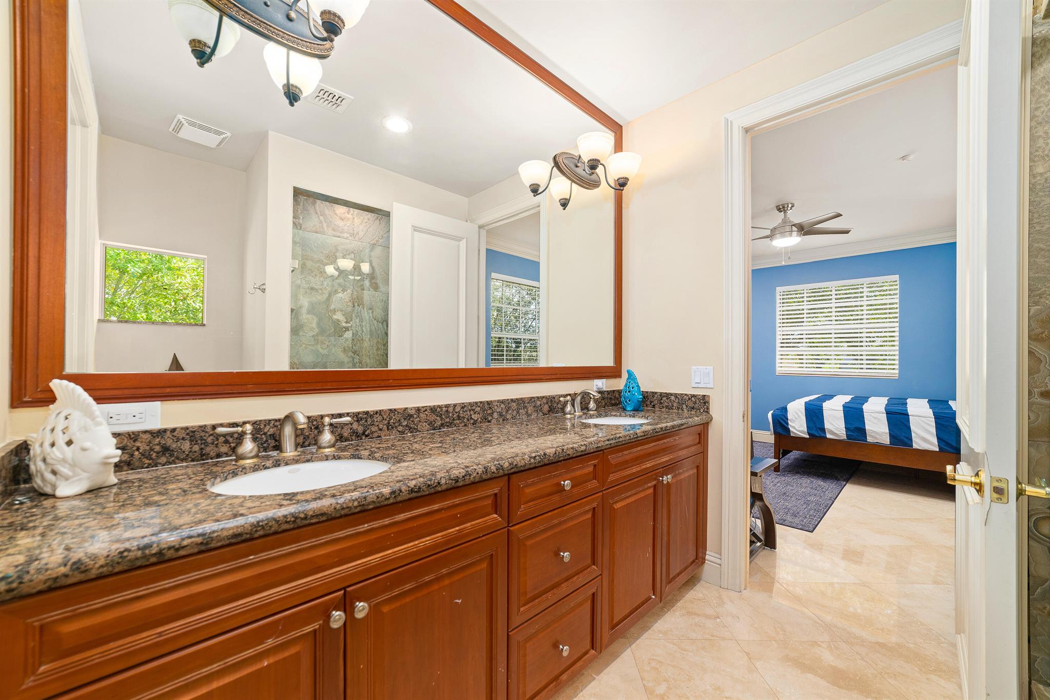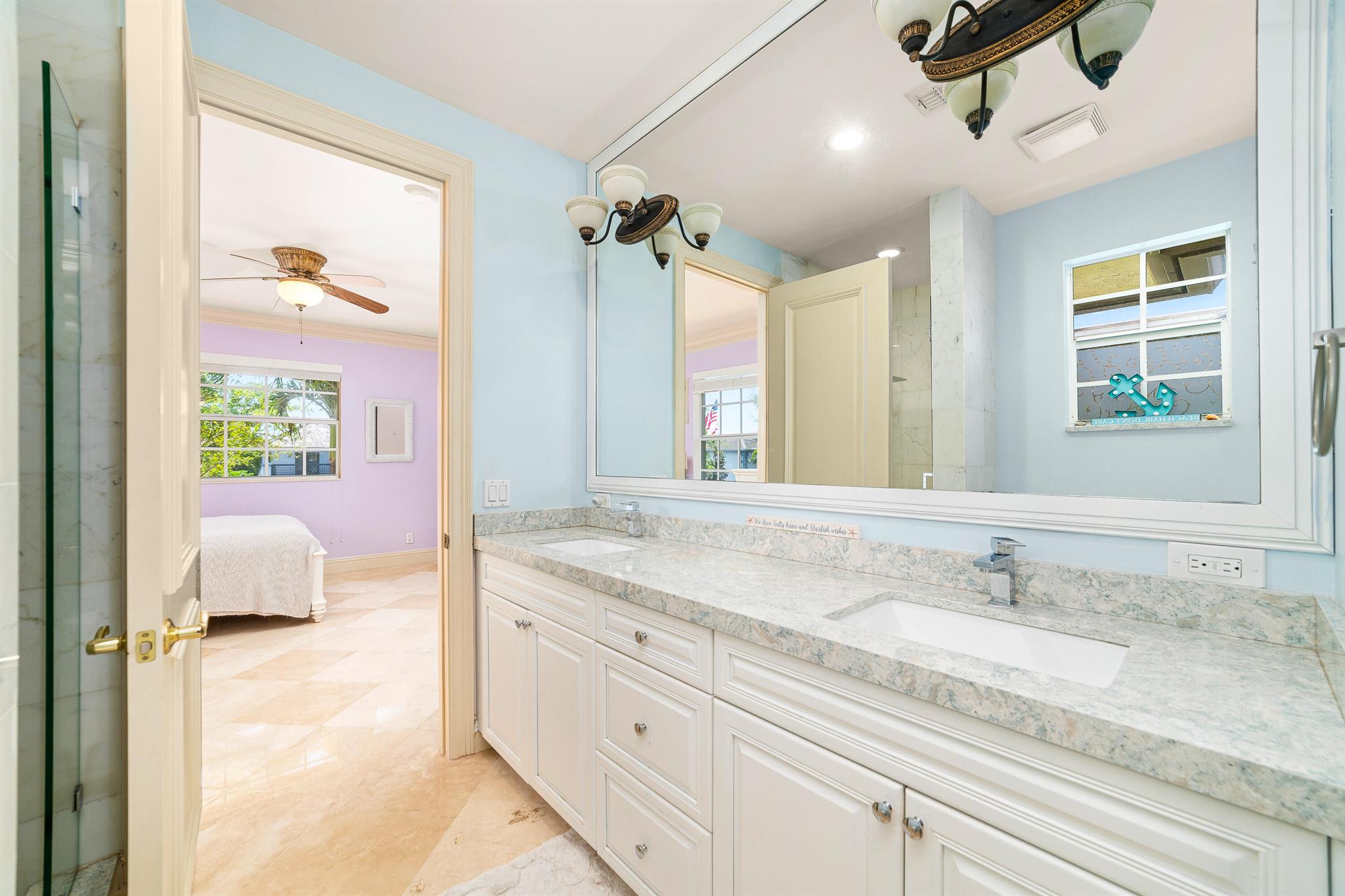 Impressive Mediterranean home on a private corner lot in non HOA community Palm Beach Farms. Close to A-rated schools including Addison Mizner Elementary, shopping, restaurants, parks and beach. Grand entrance with 20 ft ceilings, travertine marble flooring with onyx marble inlay, spacious floorplan, impact windows and doors make the house very quiet, open kitchen with top-of-the-line appliances, exotic quartzite countertops, large walk in pantry, new flat roof, partial home generator, and new hot water heater. Upstairs a spacious spa-like primary suite and four additional bedrooms. Two NEW A/C units. Private, fenced in, resort-style backyard oasis with a fully automated NEW heated saltwater pool & infinity spa & full cabana bathroom. Side yard gives you space for your boat or jet skis.