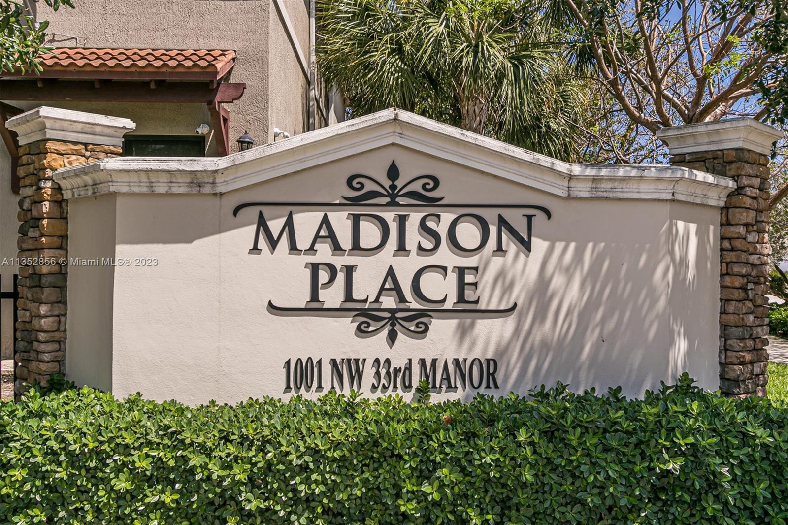 Beautiful Mediterranean style townhouses in gated community features very low HOA! Beautiful clean & spacious townhouse located in Madison Place with 9'6"� ceiling. Impact windows, doors & garage. Lots of natural light in the kitchen, stainless steel appliances. Upgraded faux wood porcelain tiles & white shaker cabinets. Primary bedroom has a large walk-in closet. W/D is conveniently located on the second floor. Small outdoor patio right off the dining area. Paved 2 car driveway, 1 car garage. It has a pool, gazebo & kiddies tot lot. Conveniently located near I-95, Turnpike, Tri-Rail, & 5 mins from the beach, making Madison Place the best home value in the Pompano Beach area.