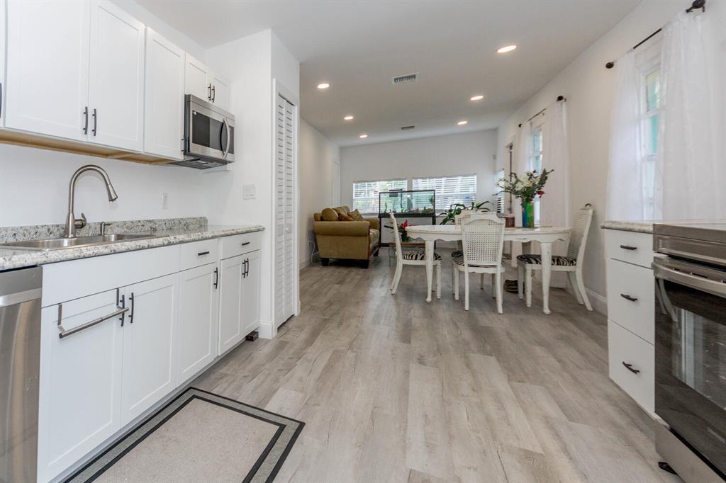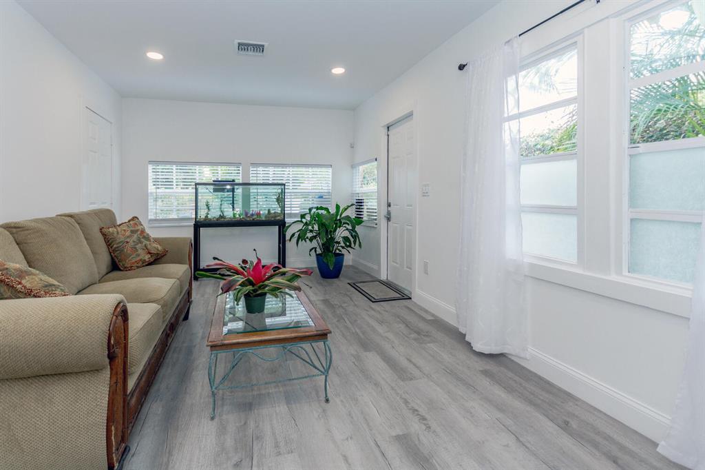 CHARMING COTTAGE in West Palm Beach only 5 minutes north of downtown and Clematis Street! Highlights of this home include light and bright interior paint, white shaker style kitchen cabinets, NEW stainless appliances and modern cooktop hood. Laminate flooring throughout. Large fenced yard has tropical landscaping with plenty of room to plant your own garden beds. Private driveway for parking plus additional street parking available for guests. Newer AC with warranty, alarm system with security cameras, and storm shutters for hurricane protection. (Roof is 13 years old April 2011)