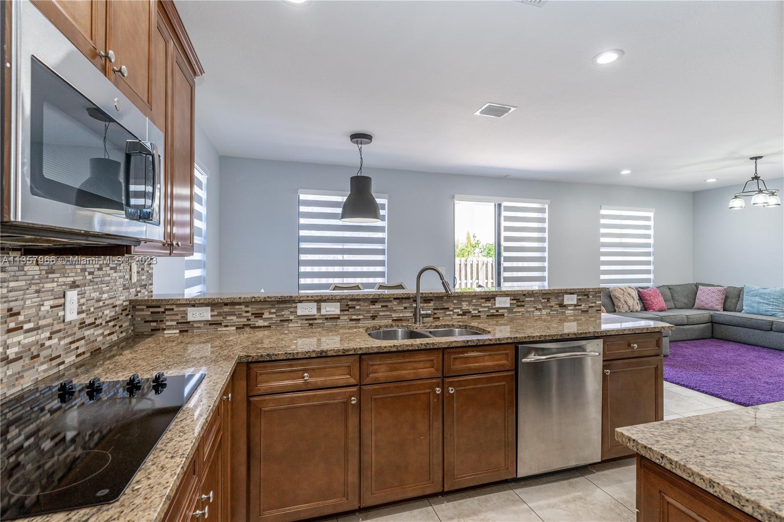 Beautiful property, spacious and modern detached house with 5 bedrooms (second floor), 1 office on the first floor, and 4.5 bathrooms. Open kitchen with plenty of cabinets, granite countertops, stainless steel appliances, double wall oven, and wine cooler. Breakfast area, formal dining room, and family room, as well as impact windows throughout the house. Large master suite with custom walk-in closet. The master bath has a separate roman shower and double sinks. The laundry area is conveniently on the second floor. Oversized yard with enough space for a pool. Gated community with guard and 24-hour security located in the luxurious Isles at Grand Bay. Spectacular clubhouse with resort-style pool, jacuzzi, children's water park, gym, tennis, and basketball court, social areas, and more.