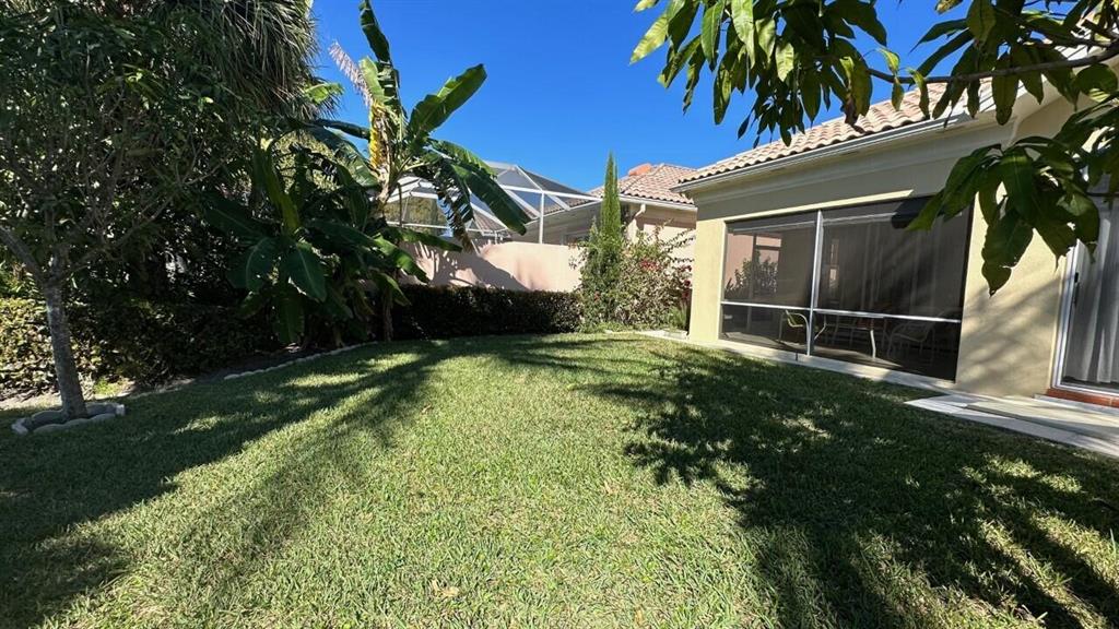 One of the last homes built in the community! This ''Glenwood'' model single family home shows pride of ownership. Tiled flooring in the main areas, parquet flooring in the bedrooms. The kitchen, dining and Great Room are a wonderful open plan, perfect for entertaining. There are 10 ft ceilings throughout, the guest bedrooms are split from the primary bedroom, laundry room has a utility tub and ample storage. The screened lanai overlooks a pretty garden (can be fenced) and a view of the lake. Very close to the Cul de sac with a convenient pathway that leads over the bridges to the Town Center! Central vacuum system and central alarm. This home is a fabulous value for a 3 bedroom lakefront single family home in RiverWalk!