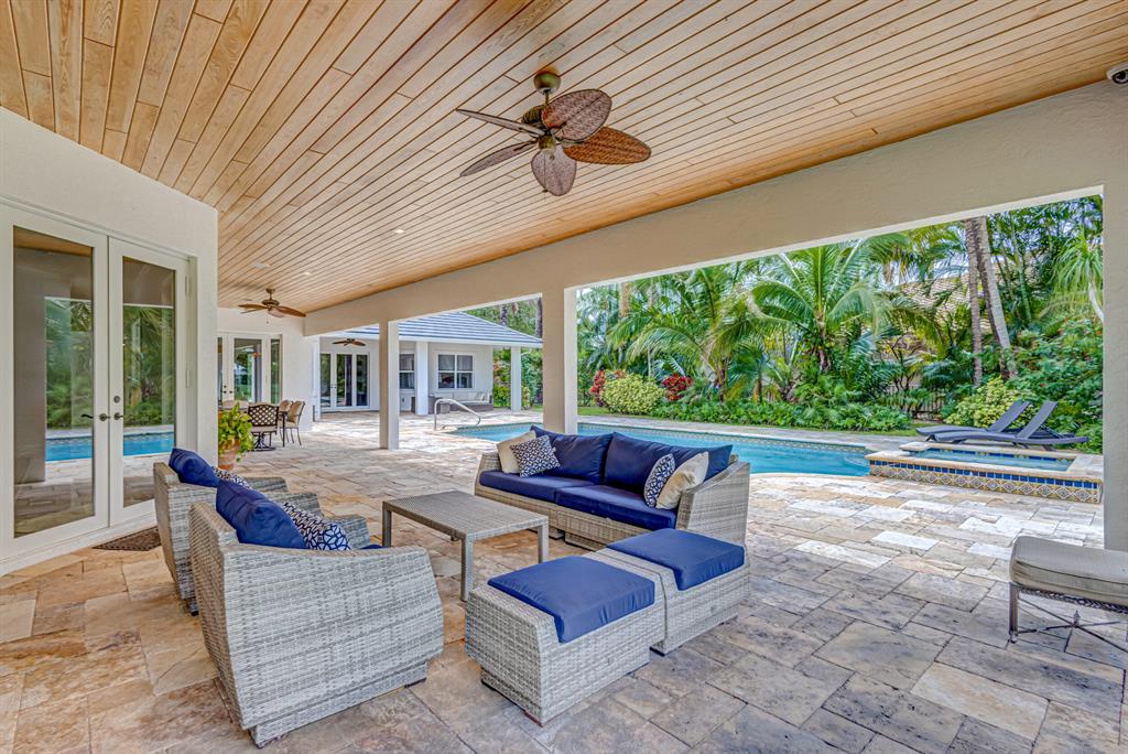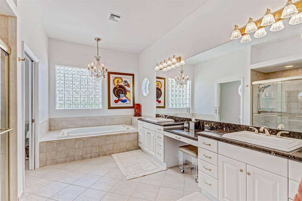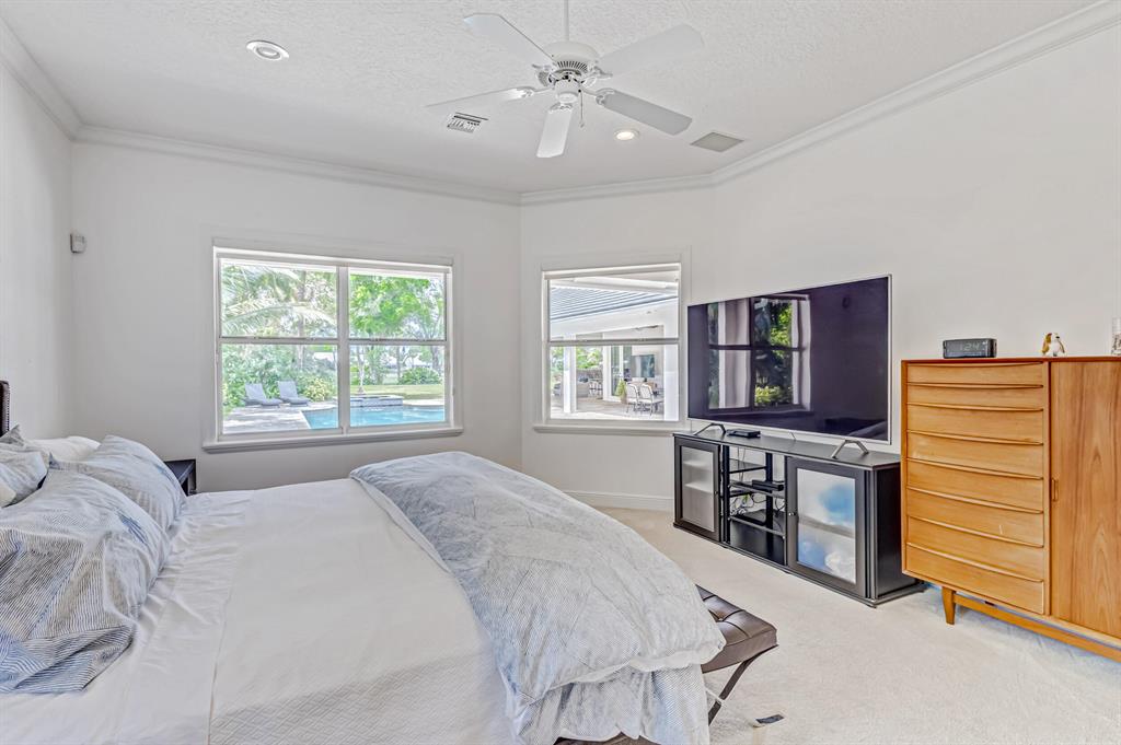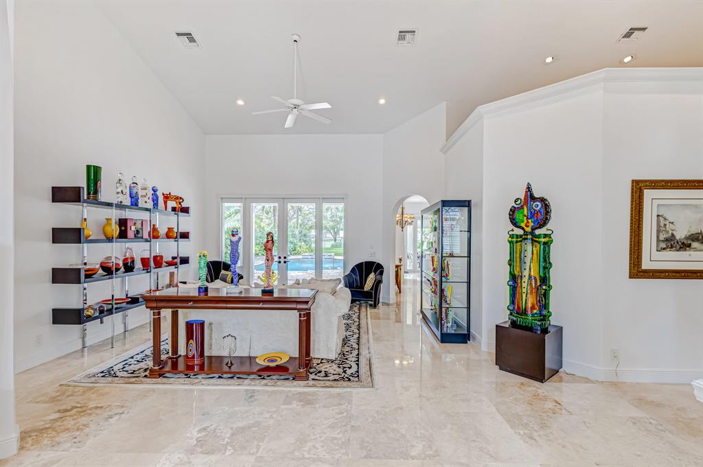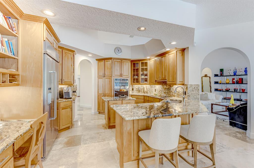 Meticulously maintained custom pool home features 5 Bedrooms/4 Baths + office/den + media room with over 3,500 SF living area privately nestled on SENSATIONAL cul-de-sac lot! This sprawling single story residence sits on one of the BIGGEST & BEST lots in Bear Lakes Estates. Brand new slate flat tile roof, gutters, and exterior paint in 2023!!! At nearly 3/4 of an acre, overlooking the 6th hole of the Lakes Course, this incredible home is completely surrounded by massive tropical palms and lush landscaping, extended covered patio, travertine marble pavers, radiant pool with separate spa, summer kitchen with built-in grill and refrigerator, surround sound, hi-hats and outdoor fans. Tons of natural light embrace you as you enter the expansive living areas that feature an array of Saturnia