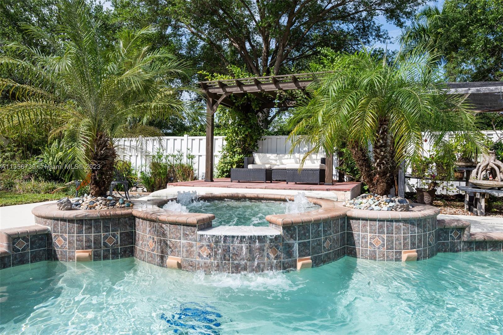 Located in coveted guard gated Pembroke Falls on an oversized lot! No neighbors behind. Large fenced backyard has gorgeous free-form heated pool with hot tub, tranquil waterfall, pergola & over-sized deck. Lovely Koi pond adds a unique touch. Fruit trees. Custom front door. Soaring volume ceilings. Enormous master suite on the 1st floor has wood flooring, luxury bath with whirlpool tub/separate shower, dual sinks. 3 bedrooms, 2 baths & huge loft/game room are located on 2nd floor & look brand new. 5th bedroom can easily be added upstairs. Enormous cook's kitchen has loads of cabinetry, large snack counter, breakfast nook. Formal living room, dining & family. Screened covered patio. Enjoy a family oriented community with fabulous amenities. Easy access to I75/595/airports, shops, schools.
