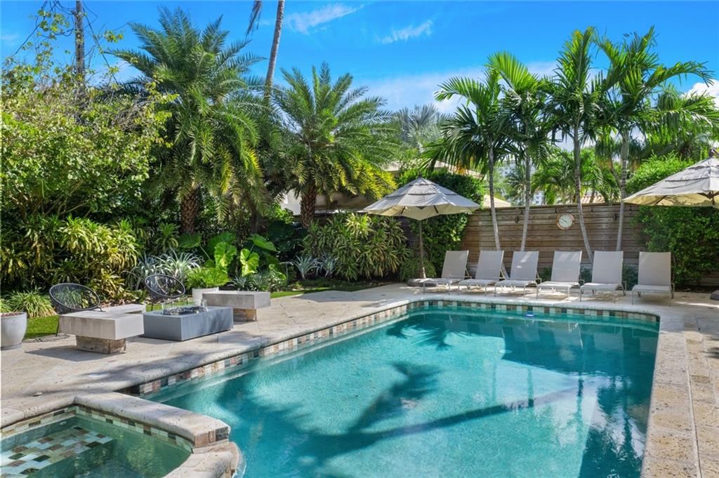 Located off Las Olas in the upscale neighborhood of Idlewyld. Renovated in 2018, this Santa Barbara-inspired residence is perfect for both family living or a second home retreat. The lush oversized lot provides spacious outdoor areas for a resort-style day by the pool/spa or entertaining friends. Modern interiors transition seamlessly throughout the living spaces. The Chef's kitchen boasts high-end appliances, quartz counters, and a custom built island. A Butler's pantry caters to private dining. Three bedrooms, laundry, and mudroom complete the first floor. Primary suite, gym, and additional bedroom on the second floor. Gated entry, 45kw full home generator, Sonos inside and out, impact windows/doors, and 2-car garage. Just blocks from the Ocean, ICW, and shopping and dining.