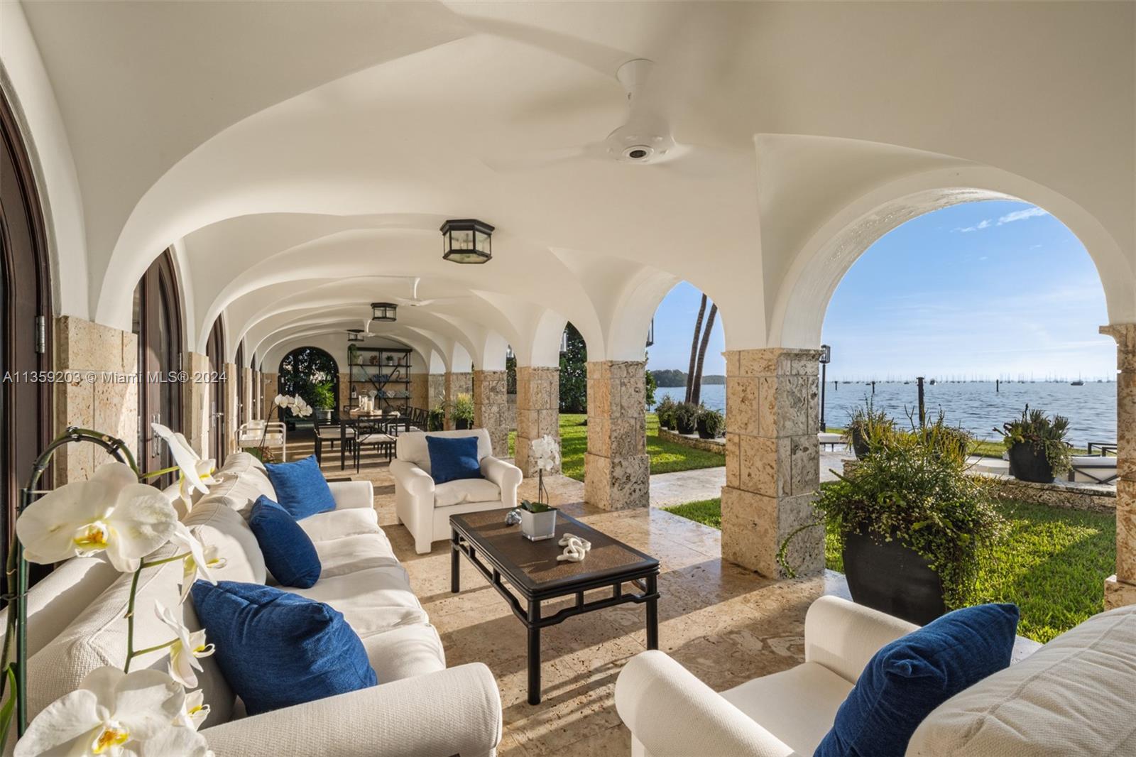 Perfectly set on a ½ acre +, bayfront estate, this 3-story Villa is the epitome of sophisticated Miami living. Step into the atrium boasting 30’ ceilings, Jerusalem stone staircase where you are greeted by unobstructed panoramic water views of the Miami skyline.From the mahogany floors to the 40’ dock, every attention to detail is reflected in this estate’s craftsmanship. Enjoy views of Biscayne Bay from the grand room or the open terrace, ideal for outdoor entertaining while overlooking the pool & 300’ of open bay. 8 beds & 8/1 baths are perfectly spread out over 10,100 sf of area. Located in private, guard-gated & historic community of Camp Biscayne, enjoy tranquility in this estate while being steps away from some of the country’s finest private schools, shops, restaurants, & marinas.