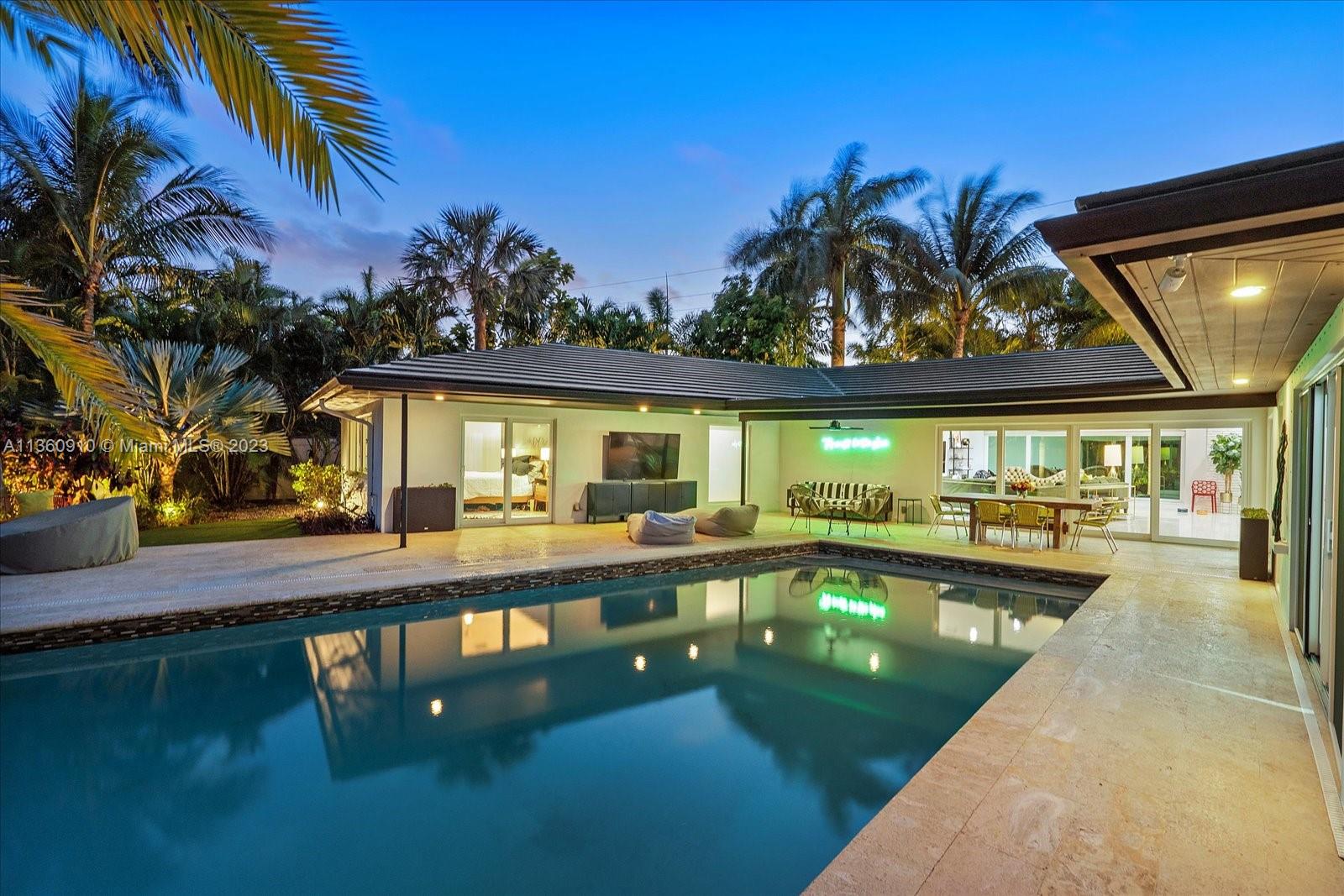 2516 Bayview Drive is a highly unique mid-century modern house situated amongst extraordinary tropical landscaping with the highest levels of intracoastal privacy. Constructed in 1956 and renovated to create best-in-class execution of classic mid-century style with today’s top amenities. 4 bedrooms provide abundant individual space with 3 including high-end en suites, stunning master / master bathroom, a gourmet kitchen, and more. 12,793 square foot lot with jungle like landscaping provides an ultra-private and a true resort like feel. Impact resistant windows, sewer lined in 2022 with a 40+ year warranty, new generator, new roof coating, new paint inside & out, slat wall, pond expansion, extensive landscaping work, and much more.