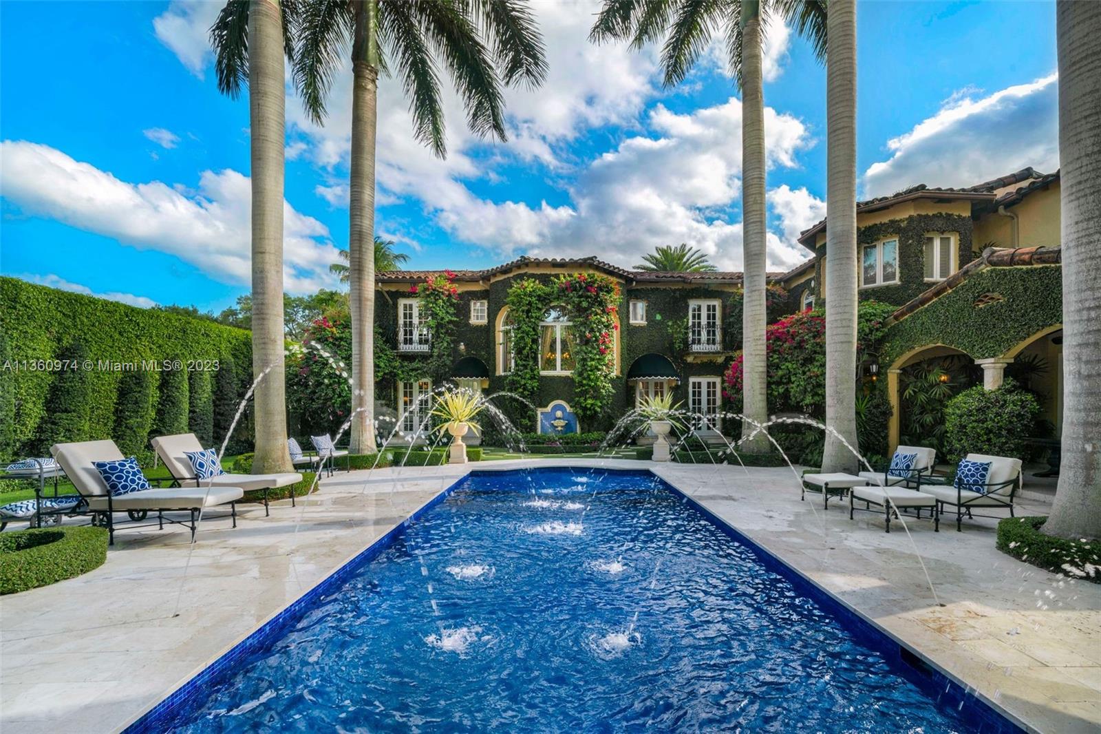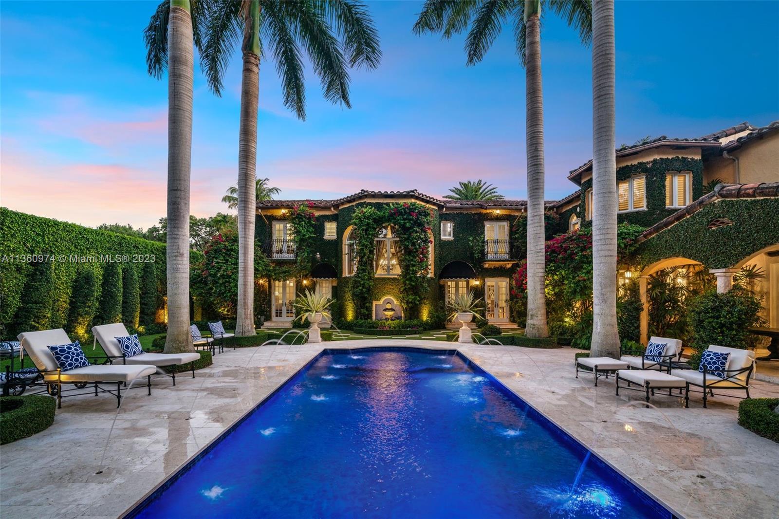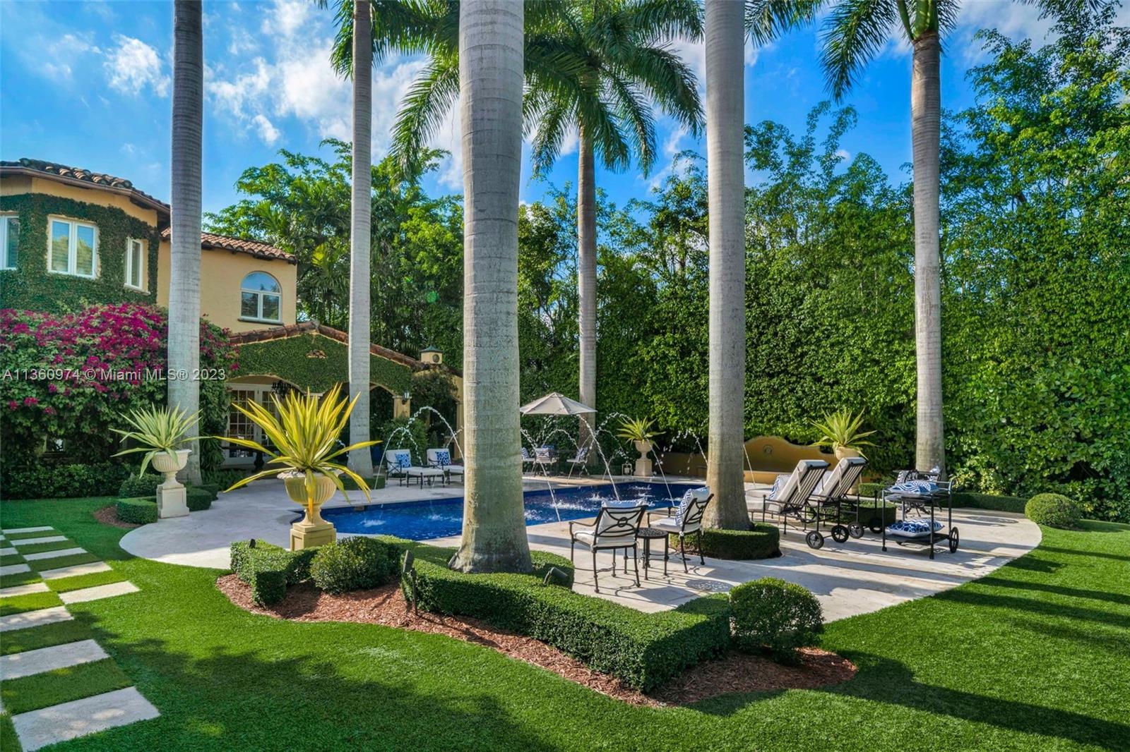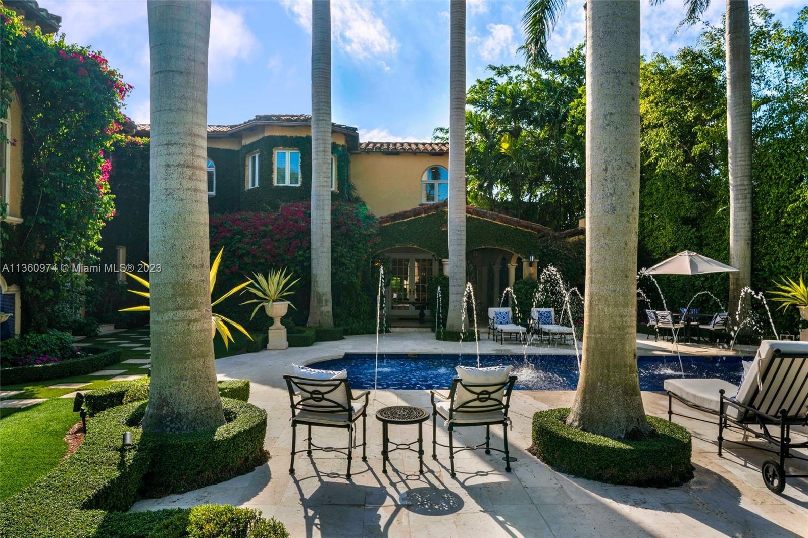 Palm Beach elegance meets historic Coral Way! With impressive architecture this walled & gated 5 BR/5.5 BA home sits on 18,020 SF lot surrounded by a 30’ privacy hedge. This residence was effectively rebuilt in 2000, bringing it to 6,690 SF designed for entertaining. Enter via a foyer overlooking a courtyard & water fountain. A formal living rm w/impressive fireplace & wood-beamed ceilings sits adjacent to a piano rm, the dining rm leads to the Clive Christian kitchen w/marble & butcher block island, & top-of-the-line appliances. The family rm & 2 BRs are on the 1st floor, as well as a covered outdoor liv area, summer kitchen, mosaic pool, & turf & tile patio. Via a sweeping staircase, the 2nd floor is home to dedicated study, 2 BRs & Bas, & primary suite w/ custom closets & spa-like bath.