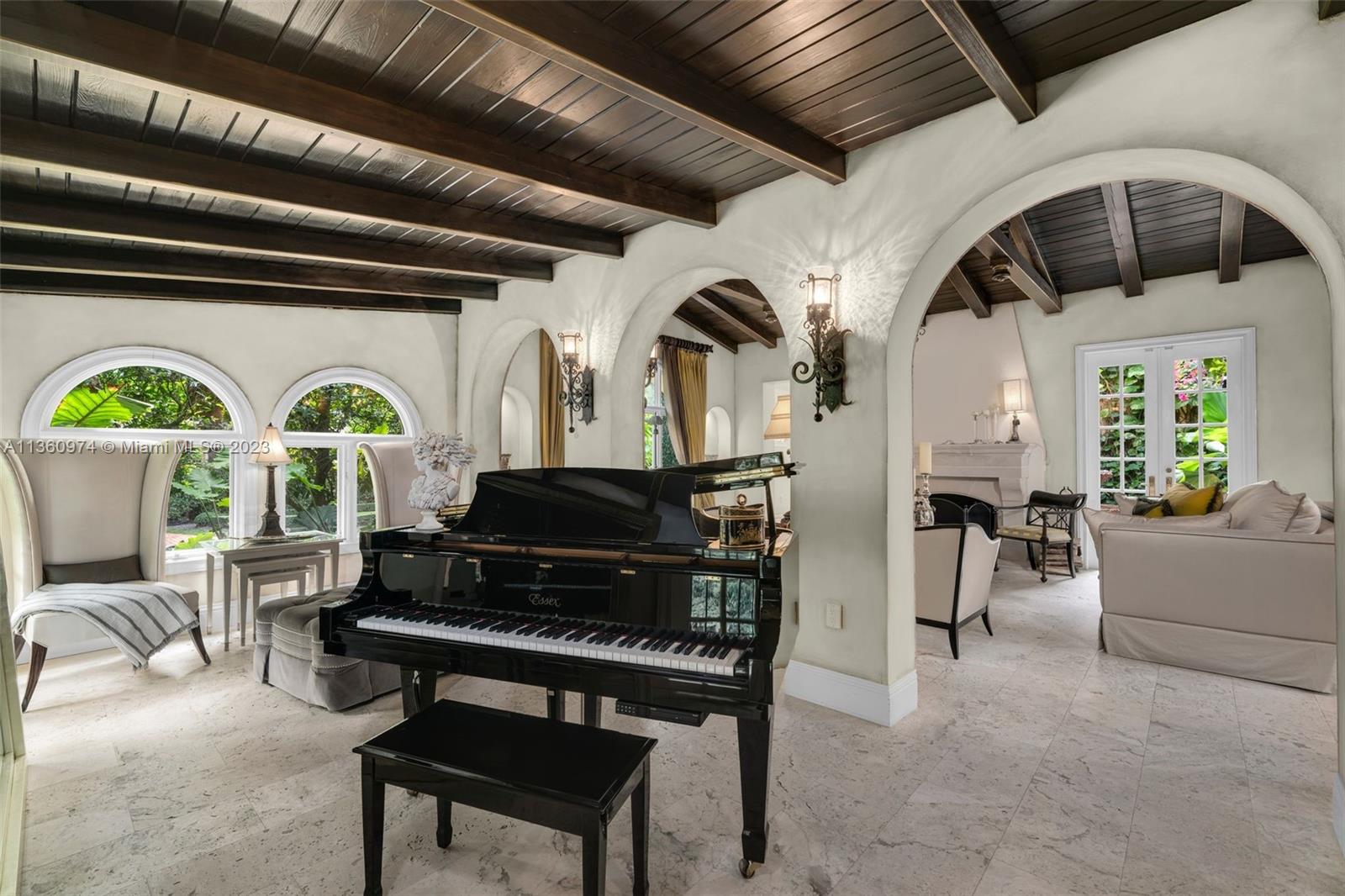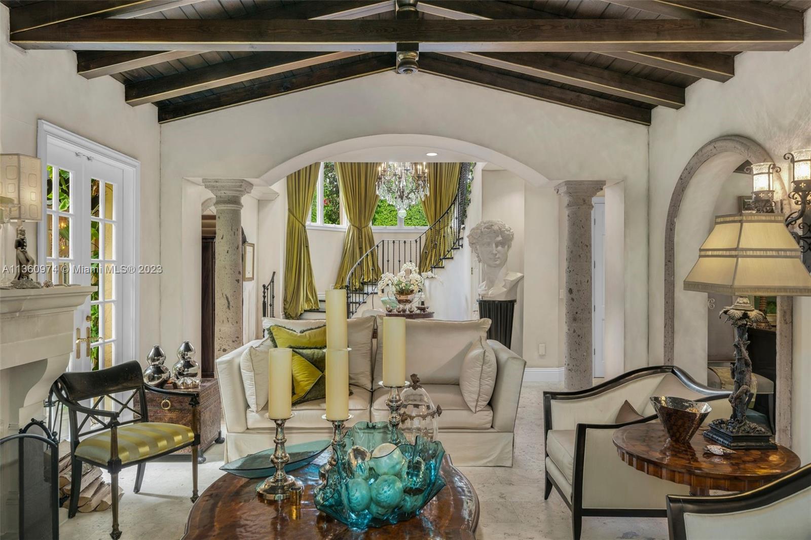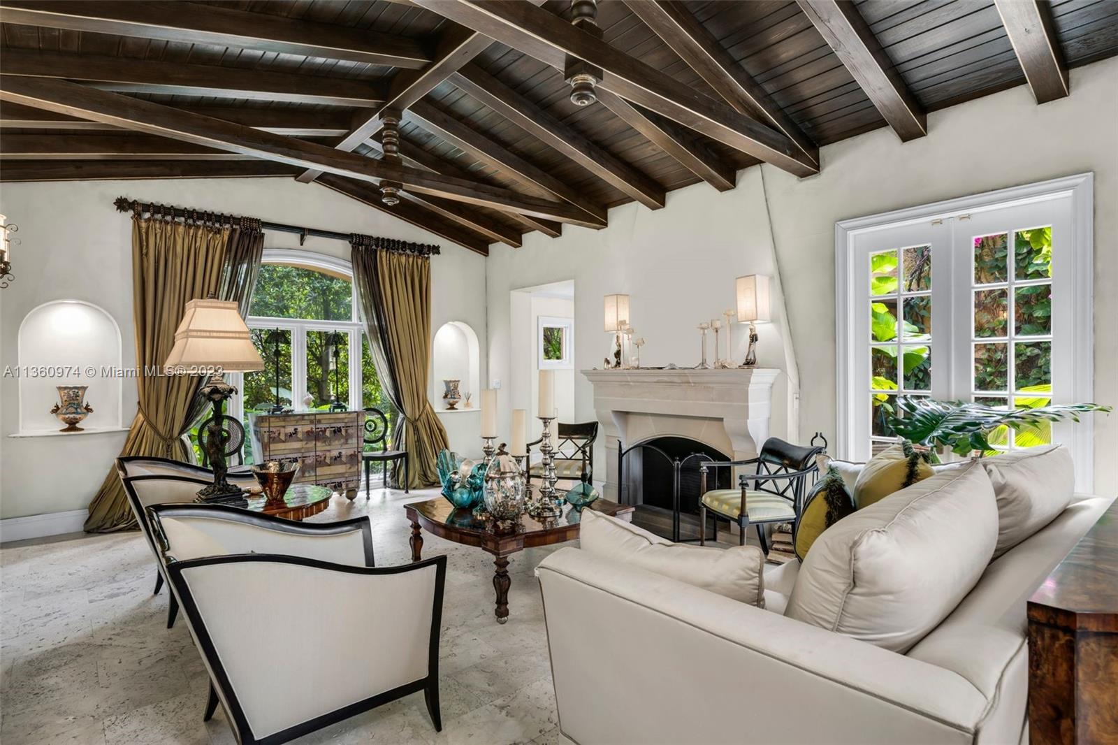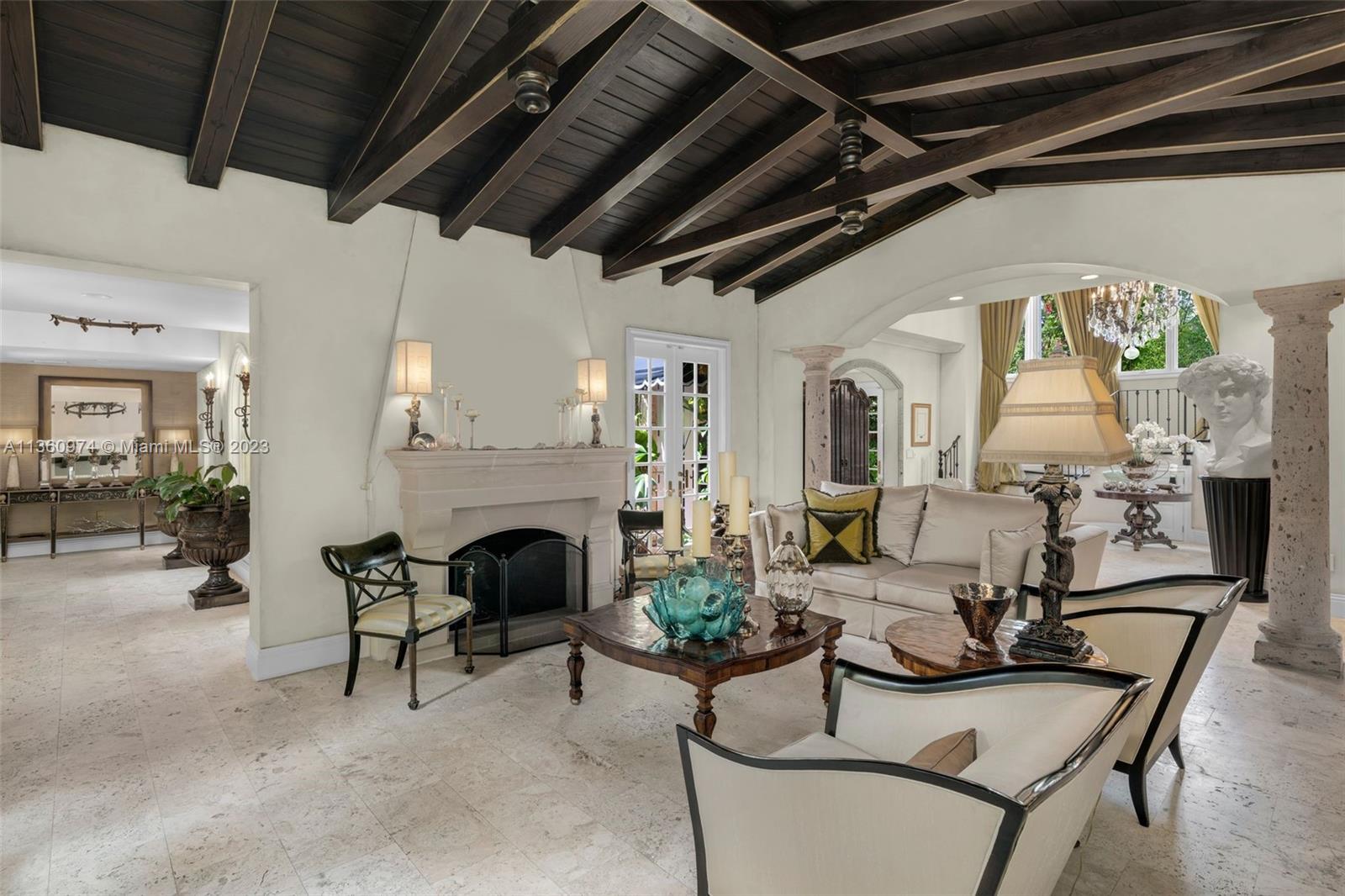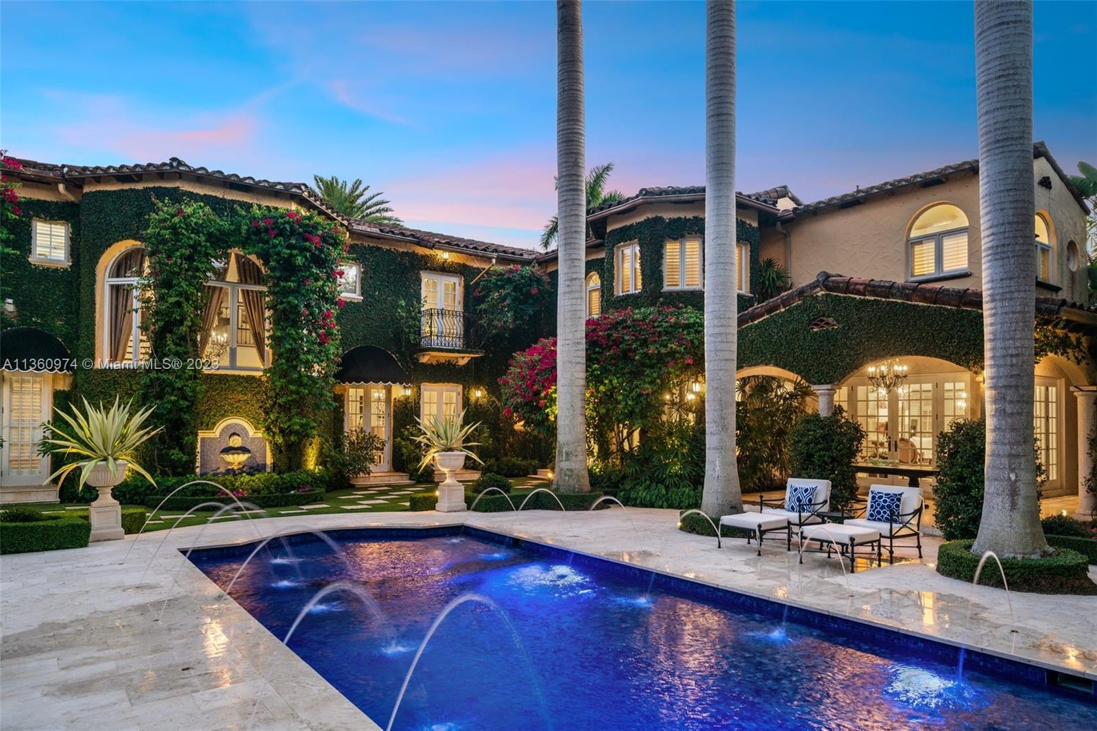 Palm Beach elegance meets historic Coral Way! With impressive architecture this walled & gated 5 BR/5.5 BA home sits on 18,020 SF lot surrounded by a 30’ privacy hedge. This residence was effectively rebuilt in 2000, bringing it to 6,690 SF designed for entertaining. Enter via a foyer overlooking a courtyard & water fountain. A formal living rm w/impressive fireplace & wood-beamed ceilings sits adjacent to a piano rm, the dining rm leads to the Clive Christian kitchen w/marble & butcher block island, & top-of-the-line appliances. The family rm & 2 BRs are on the 1st floor, as well as a covered outdoor liv area, summer kitchen, mosaic pool, & turf & tile patio. Via a sweeping staircase, the 2nd floor is home to dedicated study, 2 BRs & Bas, & primary suite w/ custom closets & spa-like bath.