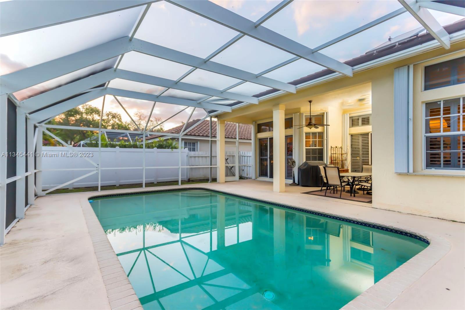 GORGEOUS ONE STORY HOME WITH FOUR BEDROOMS, THREE AND A HALF BATHROOMS IN THE MANNED GAURD GATED COMMUNITY OF NORTH LAKES IN WESTON! THE EXTERIOR OF THIS HOME FEATURES A **BRAND NEW ROOF** (2021), NEW GUTTERS, ACCORDION SHUTTERS, FENCED-IN BACKYARD, SCREEN ENCLOSED POOL AND COVERED SITTING AREA. THE INTERIOR OF THIS HOME FEATURES TILE FLOORING IN THE MAIN LIVING AREAS, PLANTATION SHUTTERS, VOLUME CEILINGS & CROWN MOLDING. THIS HOME IS A TRIPLE SPLIT FLOOR PLAN WITH AN OVERSIZED MASTER SUITE WITH SITTING AREA, AND RECENTLY UPGRADED MASTER BATHROOM, MODERN STYLE! THE OTHER BATHROOMS HAVE ALSO BEEN COMPLETELY UPGRADED MODERN STYLE! THE OPEN KITCHEN IS COMPLETE WITH UPGRADED COUNTERTOPS, WOOD CABINETRY & STAINLESS STEEL APPLIANCES.