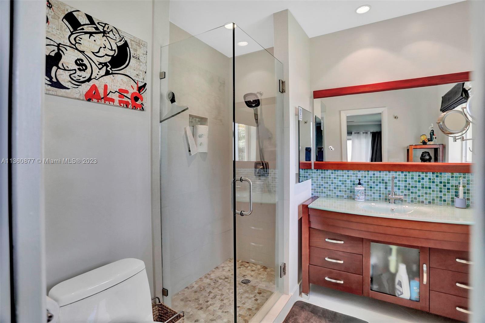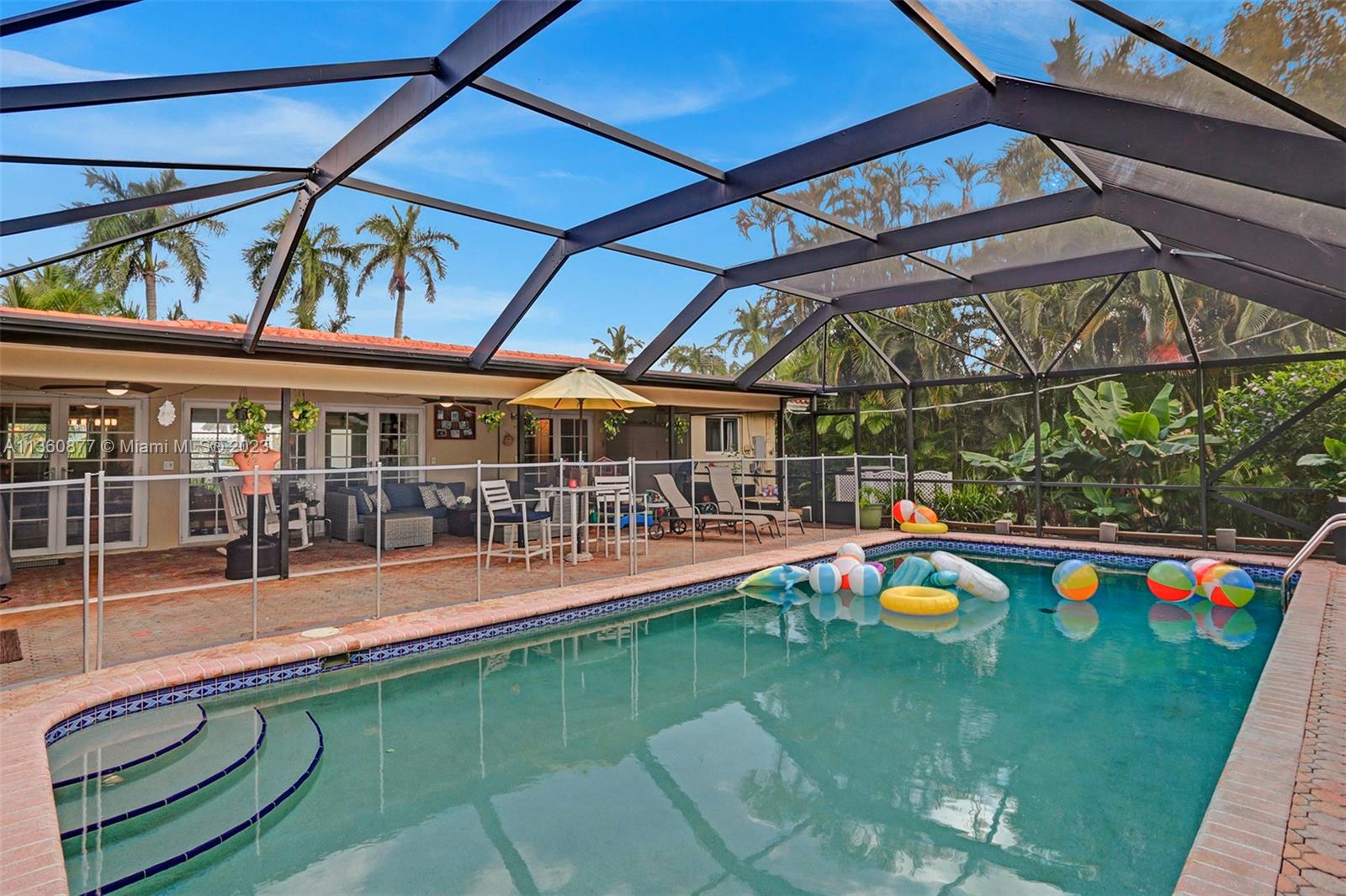 BEAUTIFUL & BRIGHT 3 BED, 2.5 BATH POOL HOME W/OVERSIZED 1 CG IN HOLLYWOOD LAKES! ENJOY THE GREAT OUTDOORS W/ A SPACIOUS FENCED IN YARD FOR PRIVACY, SALTWATER & ENCLOSED HEATED POOL, COVERED PATIO GREAT FOR ENTERTAINING. THE INTERIOR FEATURES AN OPEN LAYOUT COMBINING DINING, LIVING, FLORIDA ROOM AND A WELL APPOINTED KITCHEN HIGHLIGHTED BY SS APPLIANCES, GRANITE COUNTERTOPS, AND MARBLE BACKSPLASH W/BAR SEATING. THE SPACIOUS OWNER’S SUITE PROVIDES OVERSIZED CLOSET W/BUILT INS & ENSUITE BATH W/ SHOWER, GLASS DOOR ENCLOSURE, GLASS VANITY W/ MOSAIC TILE BACKSPLASH. RECESSED LIGHTING, CROWN MOLDING. DRIVEWAY IN THE BACK W/SLIDING GATE. BEAUTIFUL CURB APPEAL W/ AVOCADO, MANGO, BANANA TREES, & COCO PALMS. ROOF 2018, A/C 2022, POOL HEATER 2020, WASHER, DRYER, REFRIGERATOR 2022, WATERHEATER 2017