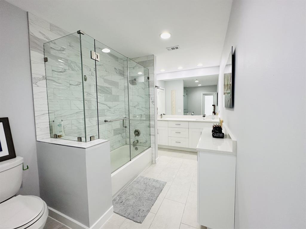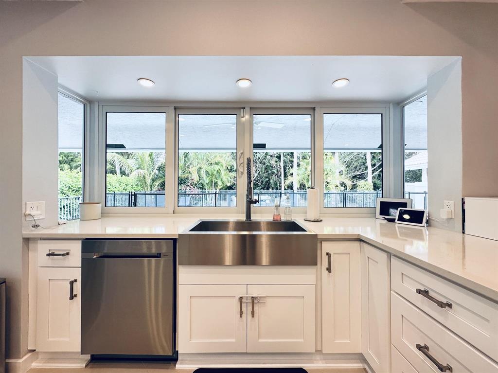 Step into this extraordinary Parkside 4bdr/3Ba home nestled on a large corner lot of a cul-de-sac. The home is remodeled with a beautiful kitchen overlooking the new pool patio, complete with quartz countertops, Samsung SS appliances, all wood soft close cabinets, and a glass wine closet that will wow your guests. All bathrooms have been updated, including a cabana bath and a luxurious primary on-suite. Vaulted ceilings, wall-to-wall sliding glass doors and sky lights fill the open floor plan home with natural light. Impact windows throughout, real wood floors, porcelain tile, Smart home system, & Ring Security. Close to the 95, fabulous restaurants, Sugar Sand Park, & the beach. This turn key home is a must see!
