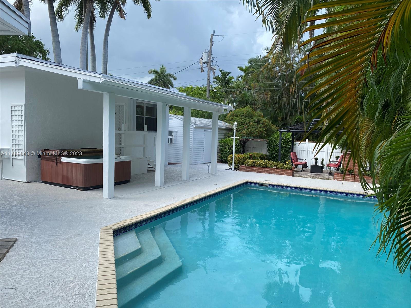 Welcome to a remodeled magnificent mid-century modern home, featuring an amazing multi-level open floor plan with abundant natural lighting, exquisite granite countertops, and elegant travertine tile floors. The entertainment room boasts a wet bar, while the pool, jacuzzi, outdoor bar, and BBQ area create the perfect setting for hosting guests. Situated near 2 golf courses & Hollywood Beach Broad-walk, this home is an entertainer's paradise. There's so much more to discover - a true gem that must be seen to be fully appreciated!