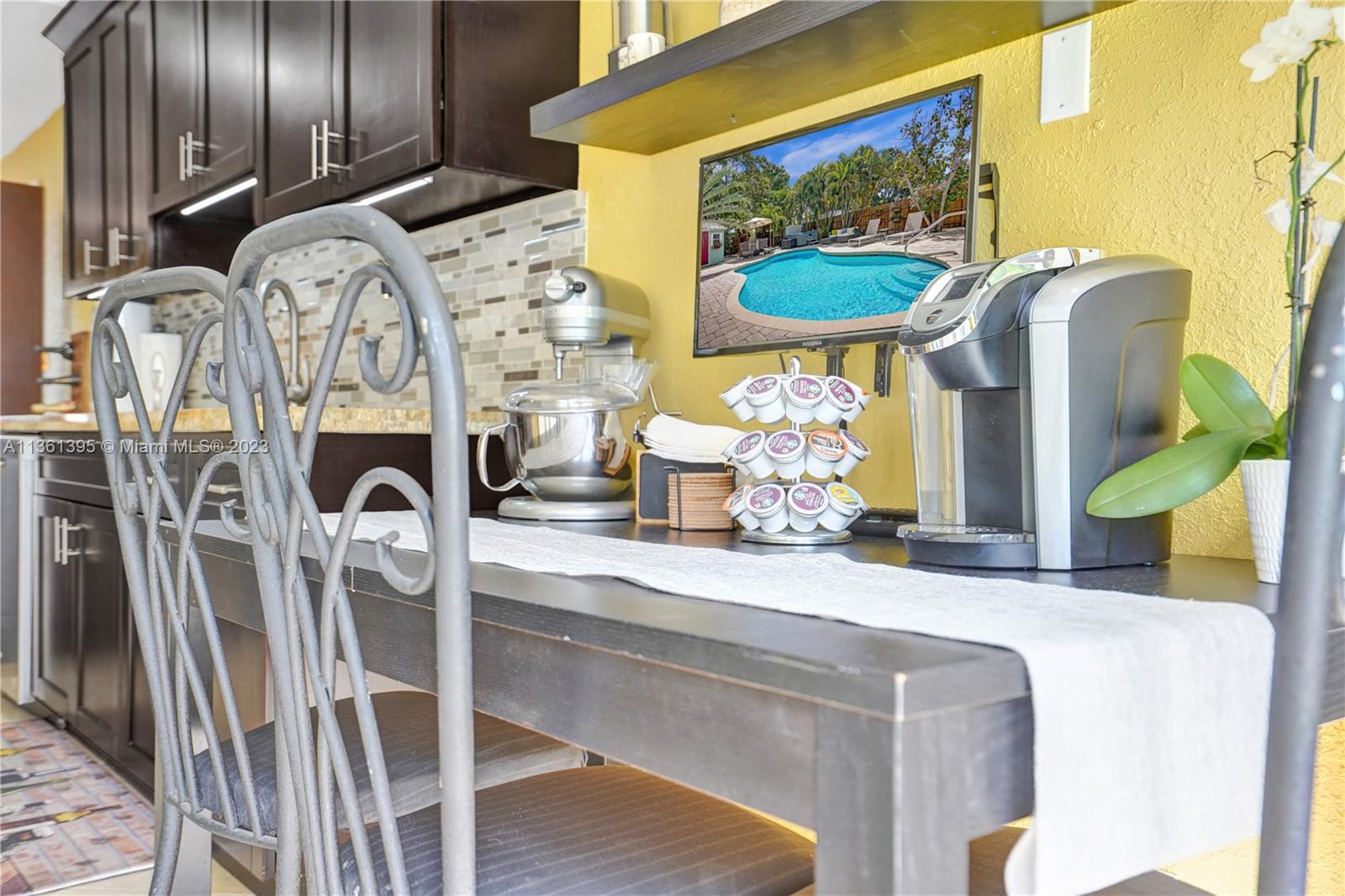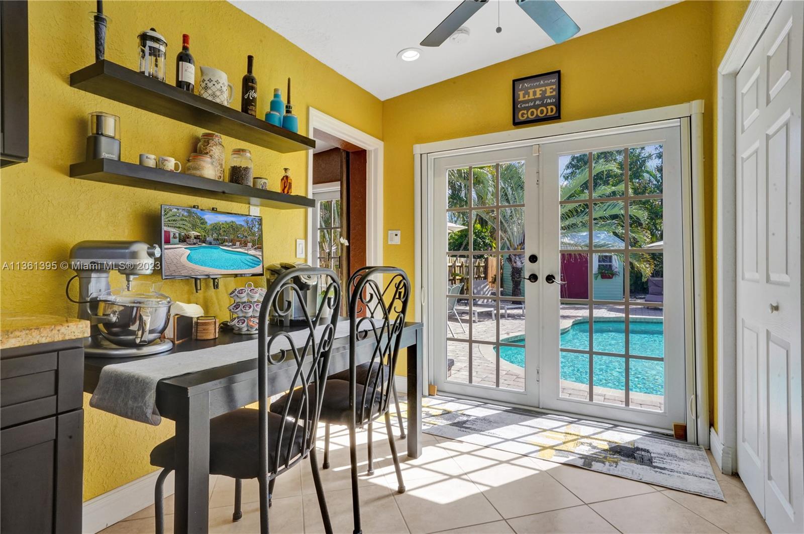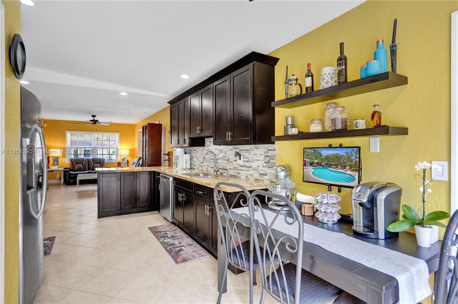 Live or Air B & B the Florida dream in this beautifully renovated 3/2 Pool Home plus cottage. This one has it all: 3 bedrooms 2 baths plus cottage, open plan, stunning updated kitchen and baths, large pool with heater and chiller, Hot Springs Spa, impact windows & doors & accordion panels, Tropical Kitchen, roof top whole house solar panels, car charging station, on demand tankless hot water, low maintenance tropical rock garden, 7 car parking. Open flexible living space and chef’s kitchen with stainless steel appliances and granite counters. The split bedroom plan ensures privacy for the primary bedroom. French doors from the Primary bedroom, main living, and guest bedroom lead to the garden oasis where you will splash, soak, relax, barbecue and dine amongst exotic palms and fruit trees.