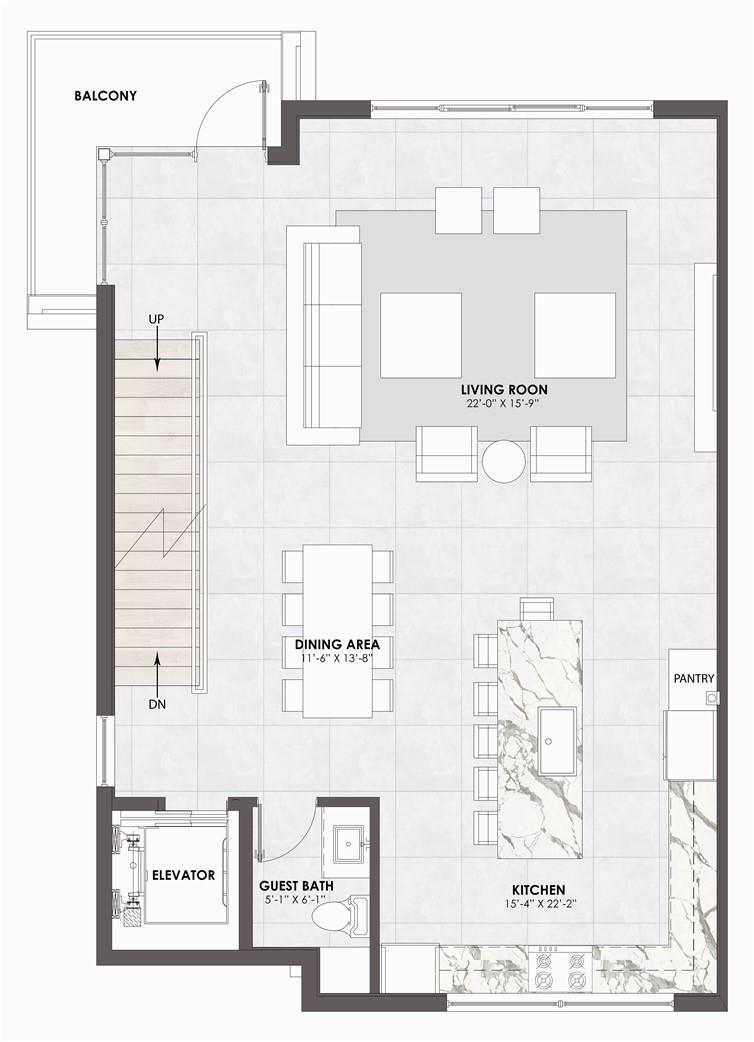 • Interior Feature:BreakfastBar, BedroomonMainLevel, DualSinks, Elevator, FirstFloorEntry, HighCeilings, KitchenIsland, LivingDiningRoom, Pantry, UpperLevelPrimary, WalkInClosets
