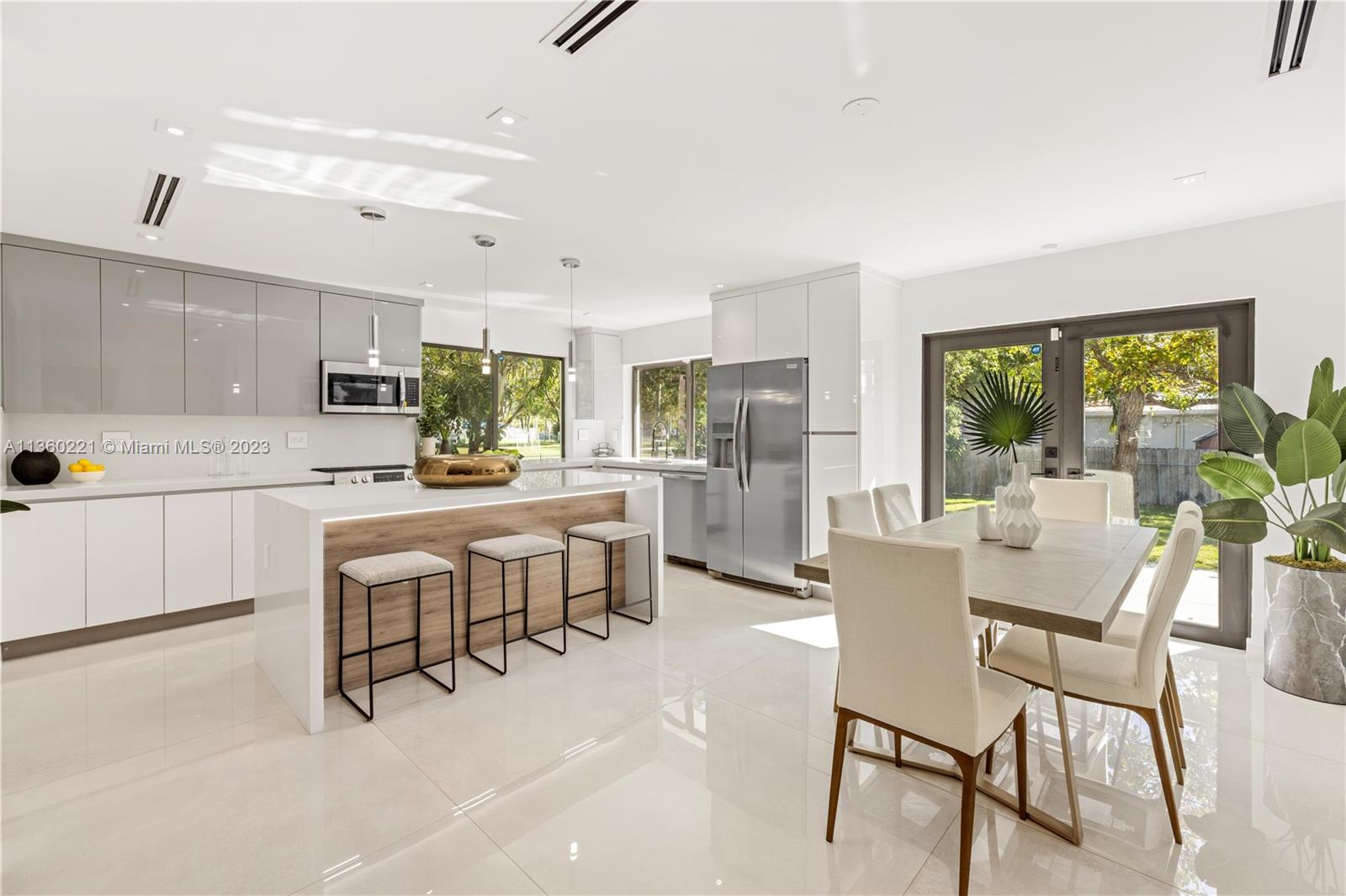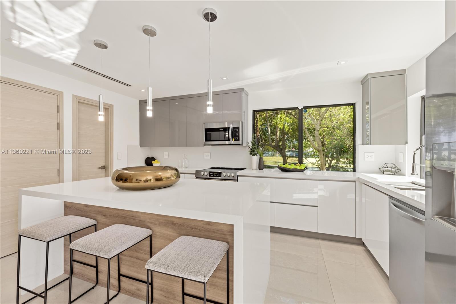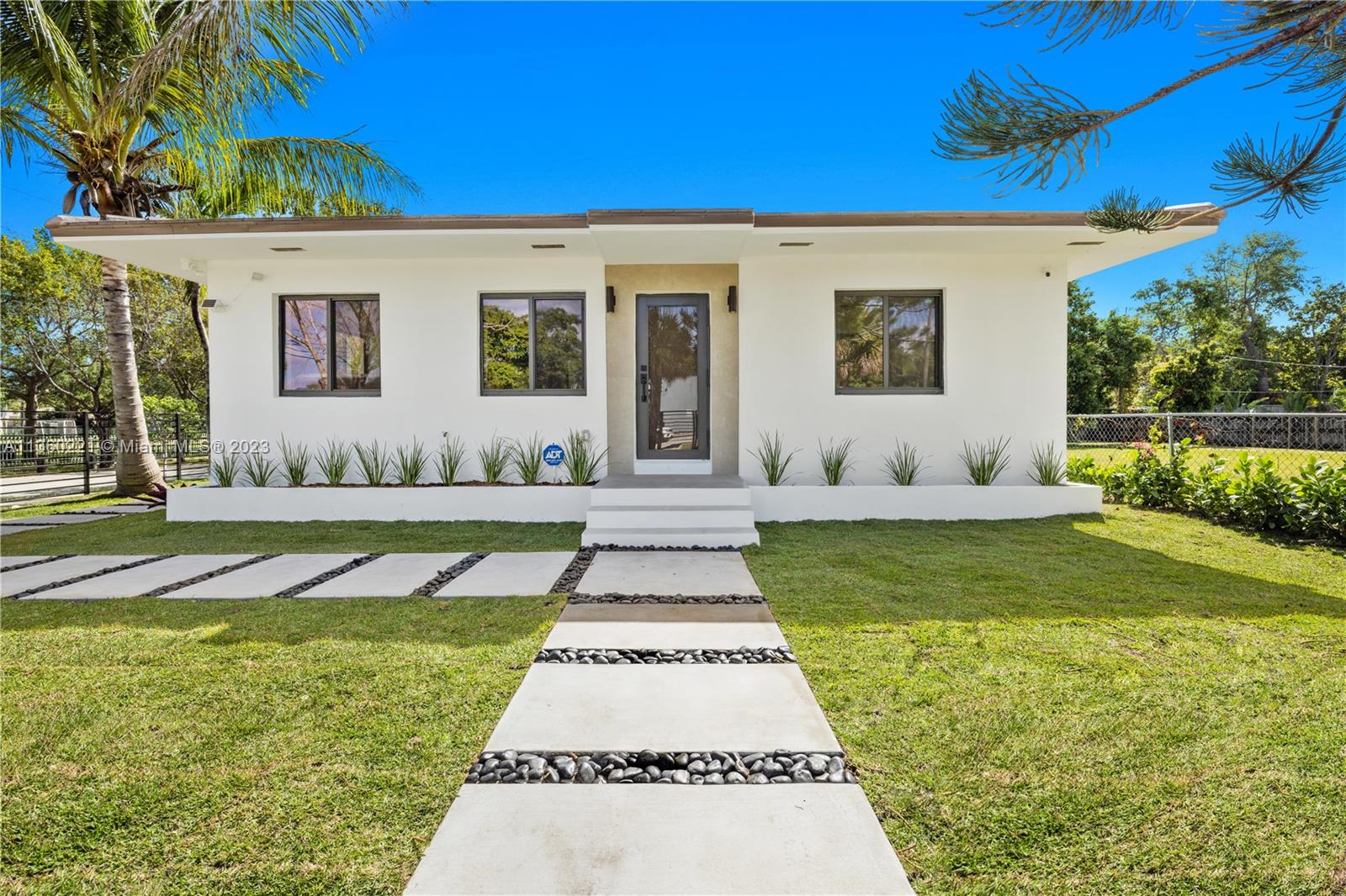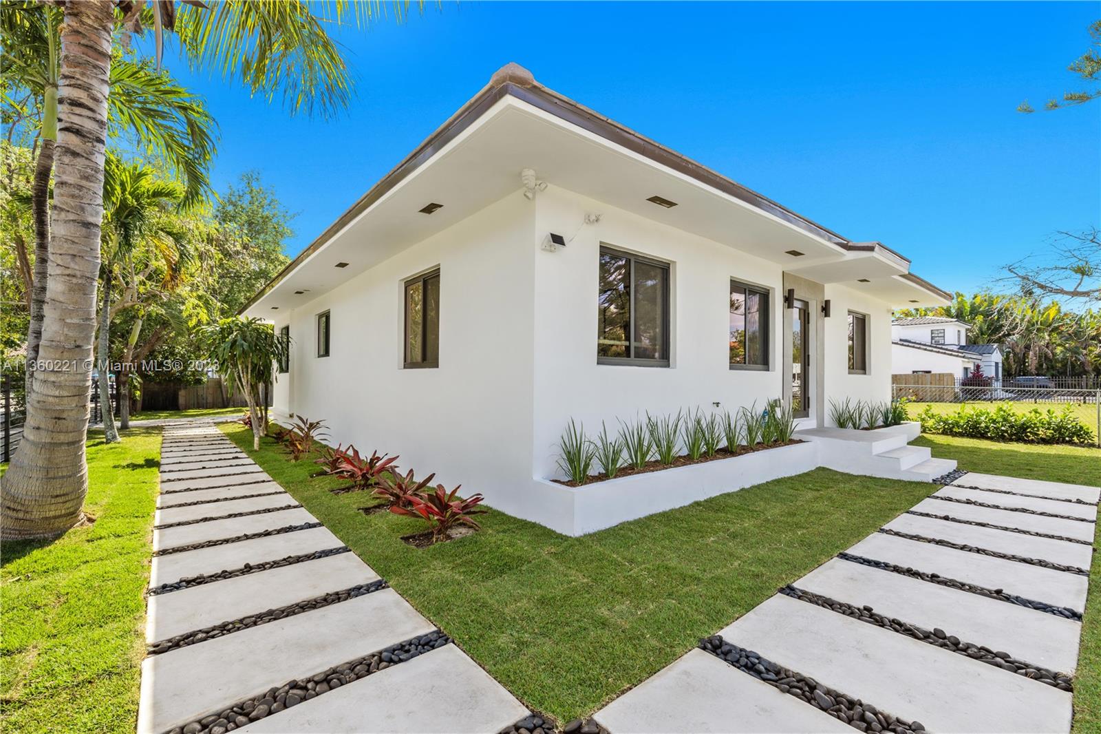 INCREDIBLE 3 BEDROOM WITH 3 BATH FULL HOME RENOVATION AWAITS YOU IN THIS UPPER EAST SIDE / MIMO DISTRICT GEM! No expense was spared in this home, and features impeccable finishes including rectified large format porcelain flooring, gourmet kitchen with large pantry and stainless steel appliances, new AC, new electrical and plumbing, a new tile roof and more! Large 7,748 sq.ft. corner lot comprises of new deck, new landscaping, fruit trees, an electric driveway gate, and offers plenty of room for a pool! Brand new black-frame impact doors and windows throughout bring in tons of natural light. Close to Cushman School, Design District, the airport and a short drive to the beach. Furniture offered for sale and is ready for you to call this your home or create a wonderful investment property.