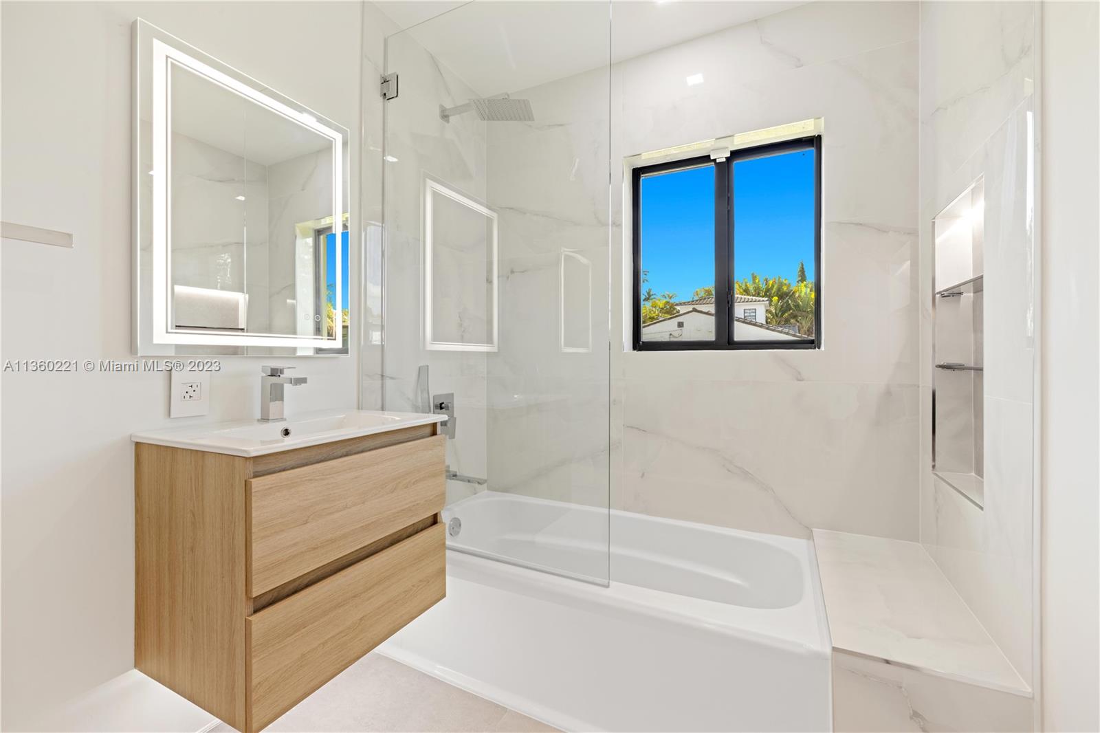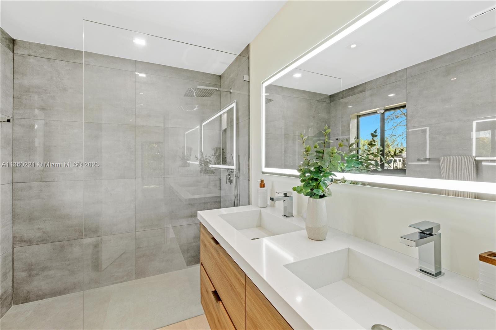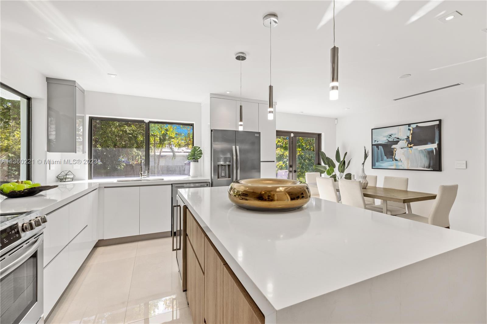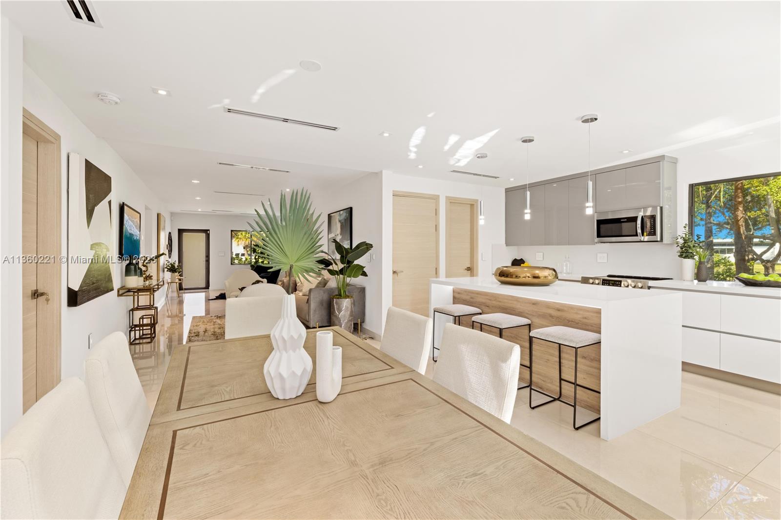 INCREDIBLE 3 BEDROOM WITH 3 BATH FULL HOME RENOVATION AWAITS YOU IN THIS UPPER EAST SIDE / MIMO DISTRICT GEM! No expense was spared in this home, and features impeccable finishes including rectified large format porcelain flooring, gourmet kitchen with large pantry and stainless steel appliances, new AC, new electrical and plumbing, a new tile roof and more! Large 7,748 sq.ft. corner lot comprises of new deck, new landscaping, fruit trees, an electric driveway gate, and offers plenty of room for a pool! Brand new black-frame impact doors and windows throughout bring in tons of natural light. Close to Cushman School, Design District, the airport and a short drive to the beach. Furniture offered for sale and is ready for you to call this your home or create a wonderful investment property.