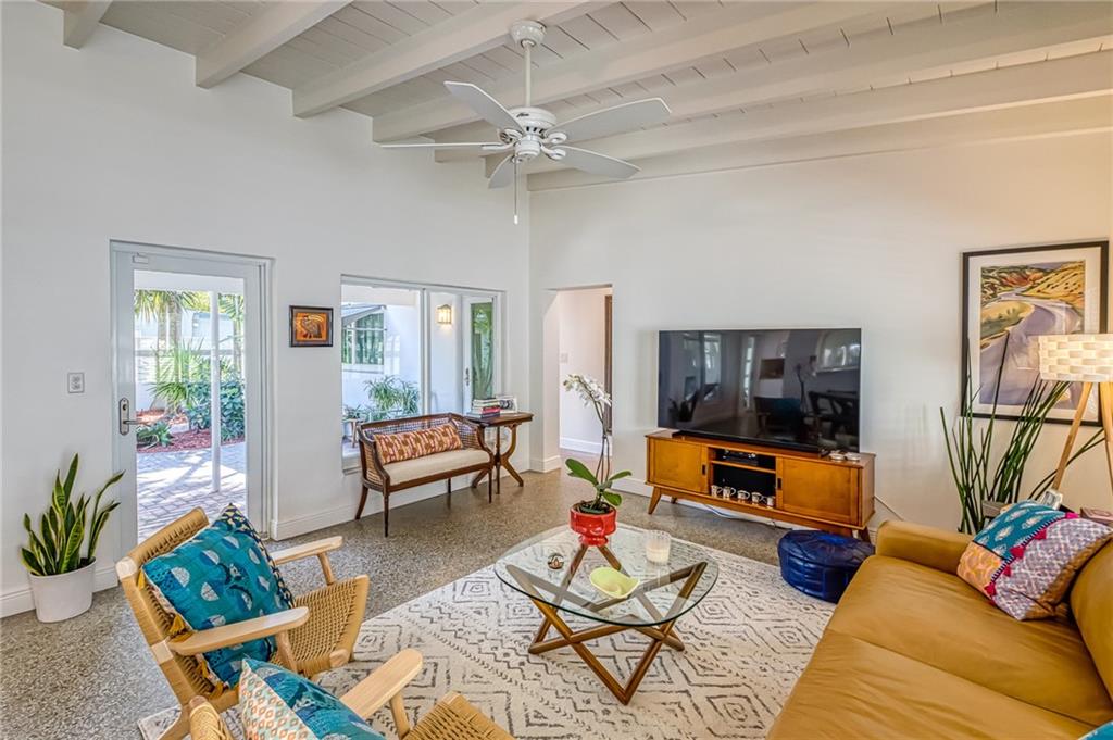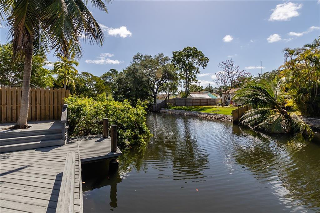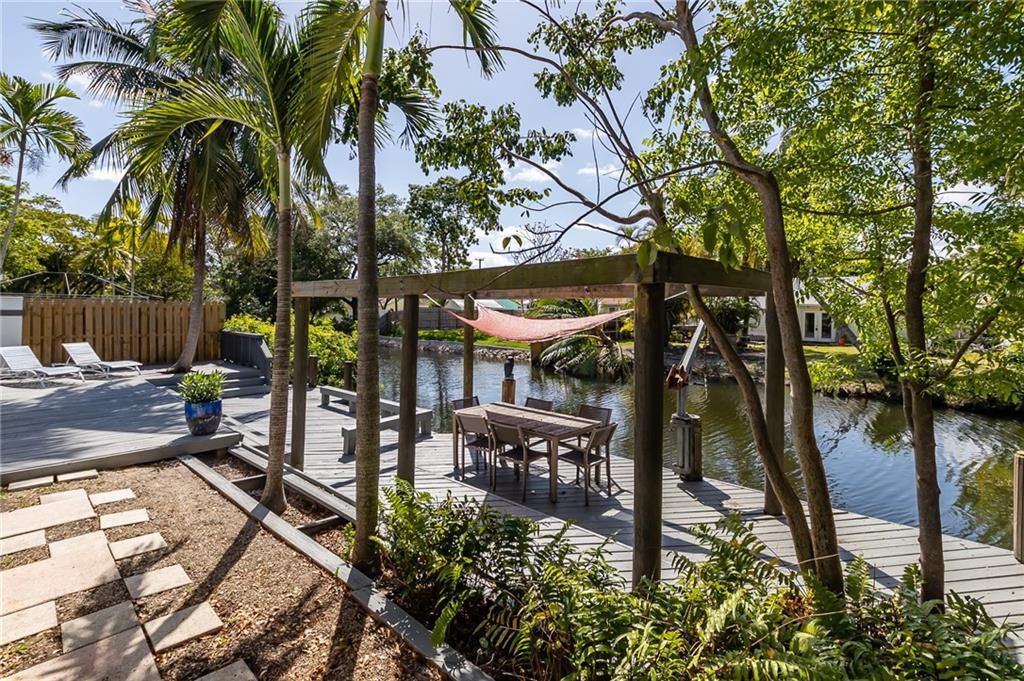 Beautiful, unique waterfront Mid-Century Modern home w/ tremendous curb appeal in Croissant Pk. Enter through the private courtyard w/ lots of covered space allowing for al Fresco dining & entertaining. The living area features vaulted ceilings, wood beams & a wall of windows w/ lots of natural light. Gorgeous terrazzo flooring throughout, both baths updated, kitchen w/ granite countertops, stainless appliances & pass-through to the dining area. 50' of ocean access waterfront, dock, wood deck & impact windows all situated on a lushly landscaped lot. Croissant Pk is in a great location that is close to literally everything. Less than 3 mi to the Ocean, 2 mi to Las Olas Night Life Dining & Shopping. Quick access to 95 / 595 for commutes & under 10 min to FLL Airport. Several Fixed Bridges