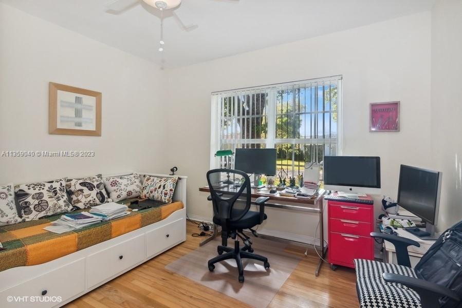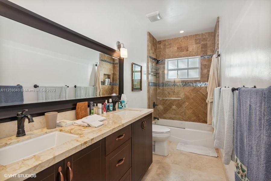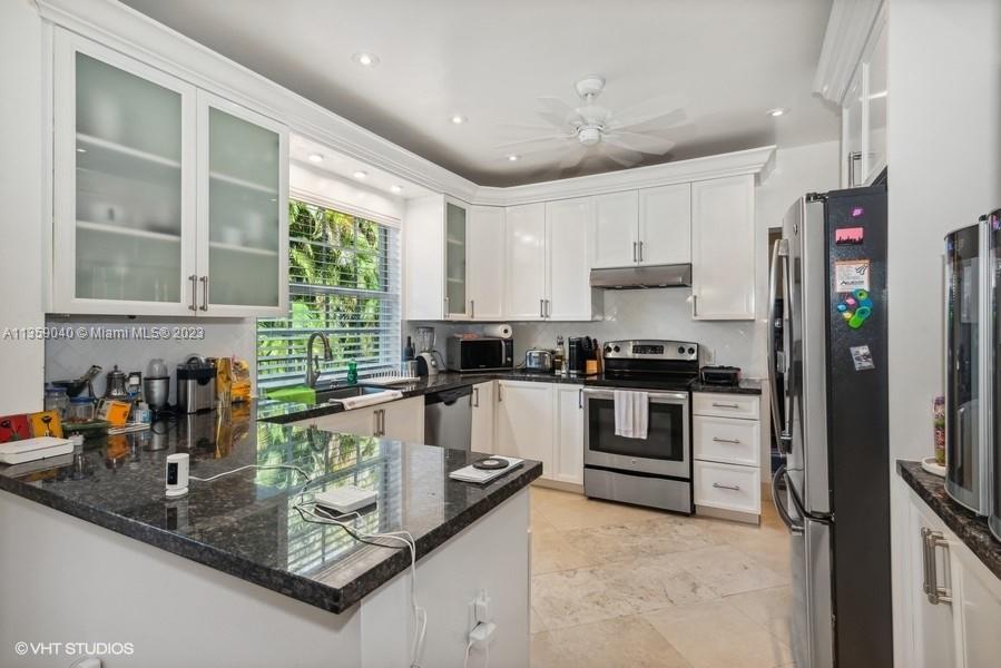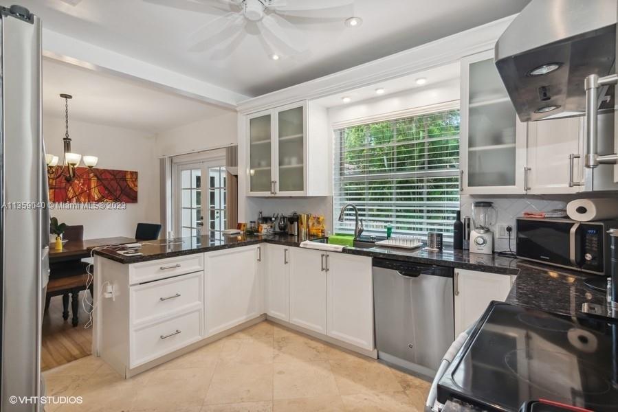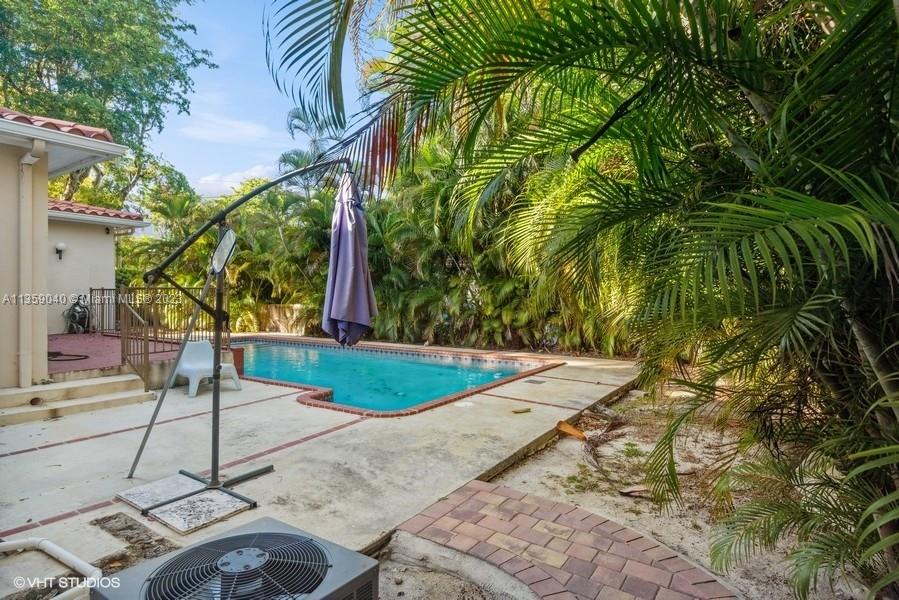 Beautifully updated Coral Gables home on very peaceful street. Light and bright with hard wood and saturnia marble floors. Impact windows bringing in natural light. White wood cabinets in kitchen with granite counters and stainless steel appliances. Great space for cooking. All bathrooms remodeled. Gorgeous new Chicago brick walkway and driveway. Inground pool with quite fenced backyard. 3 bedrooms, 2 bathrooms. 1 Car-garage. New Barrel tile roof in 2019.