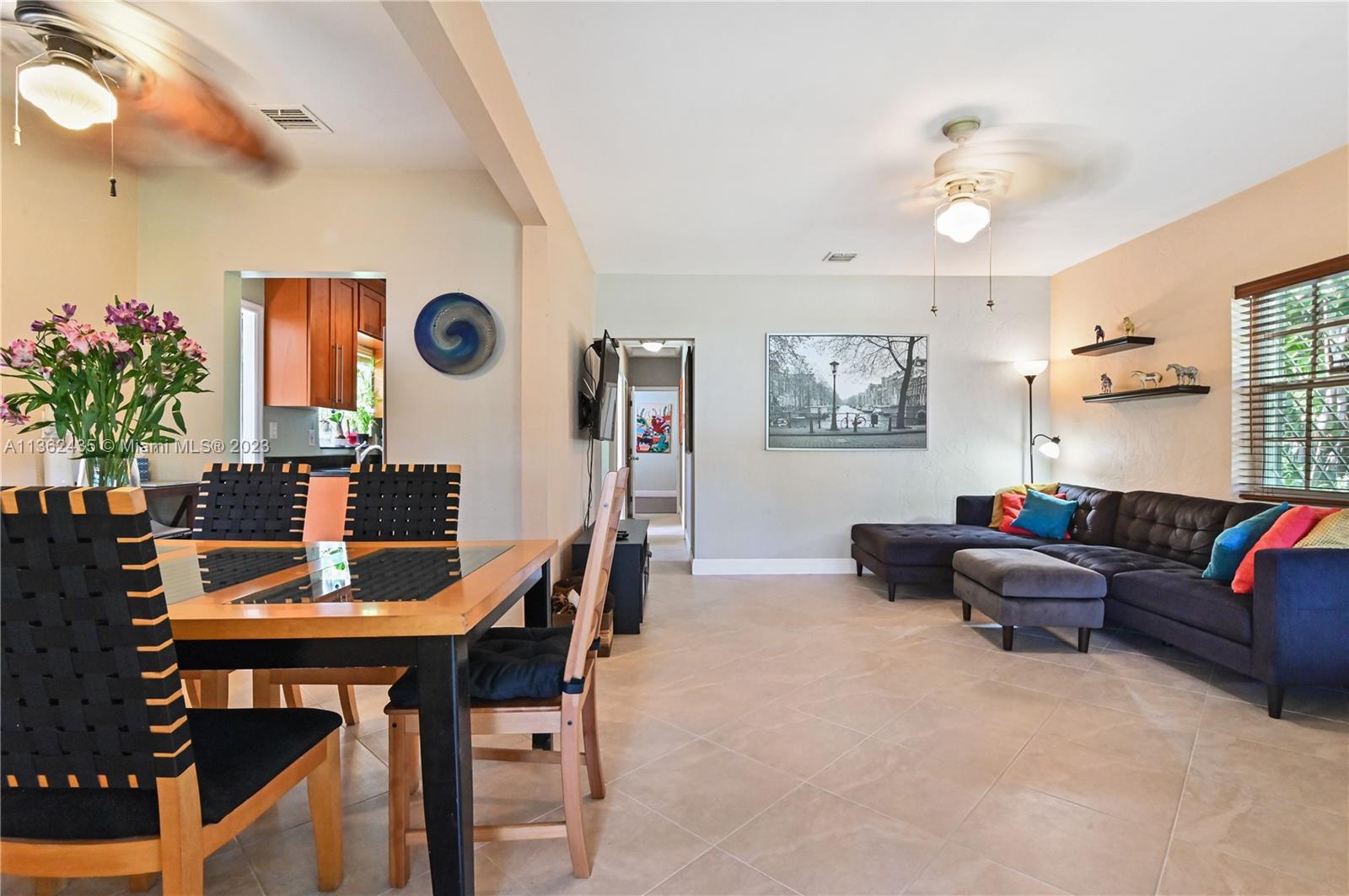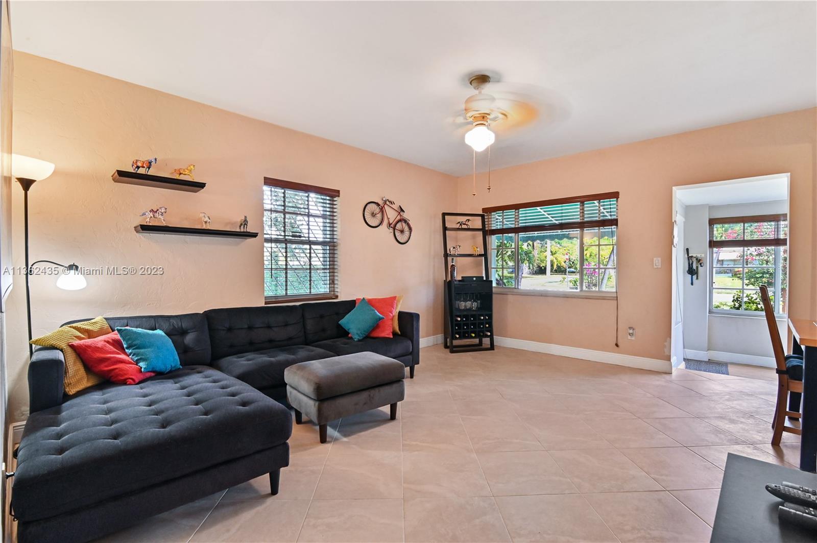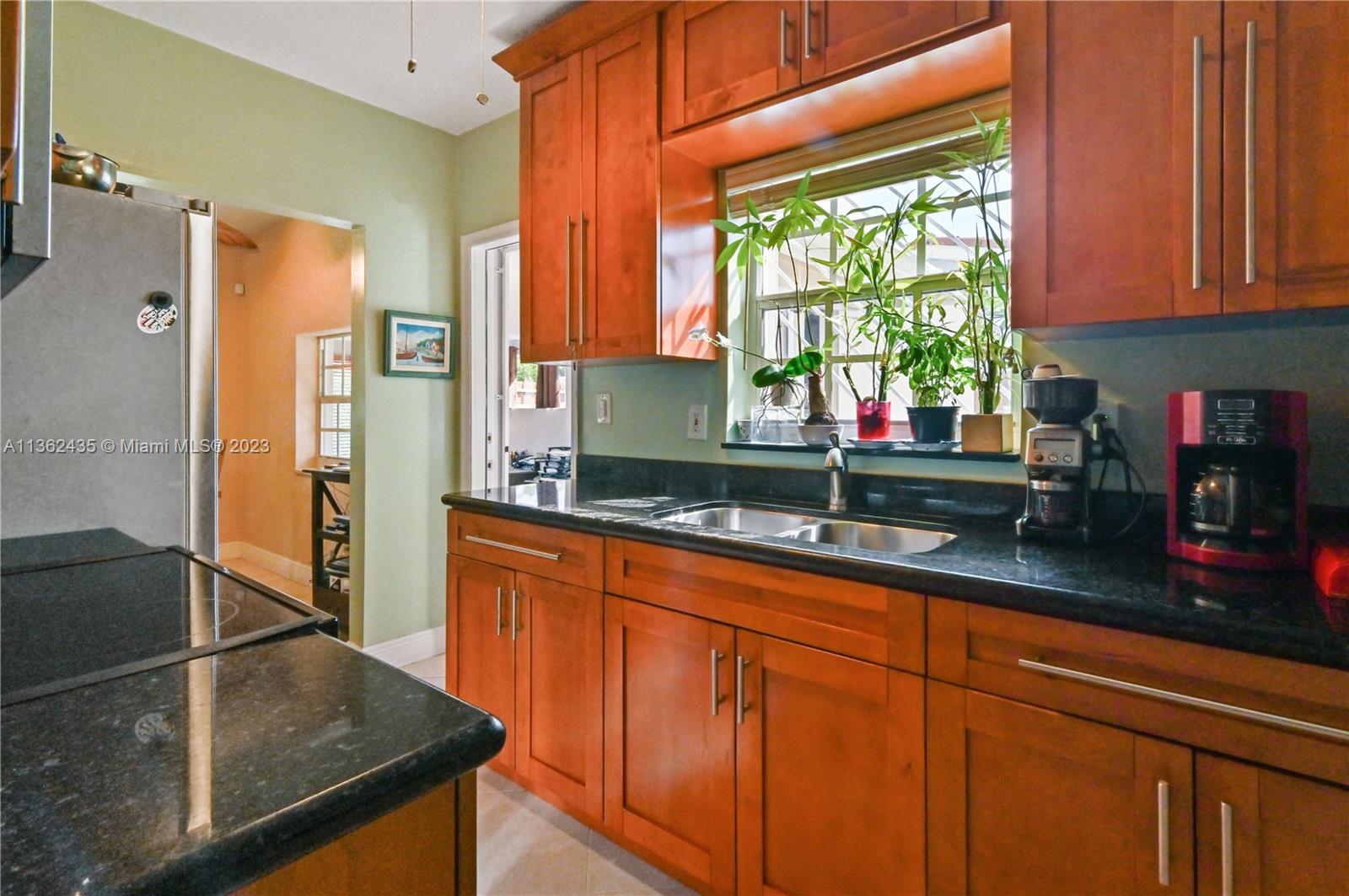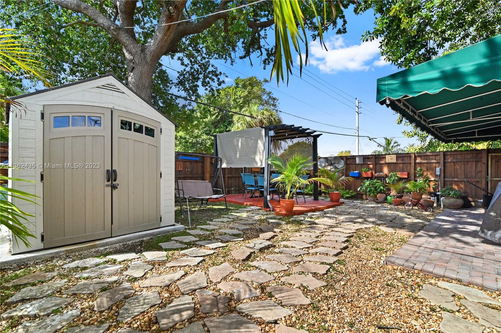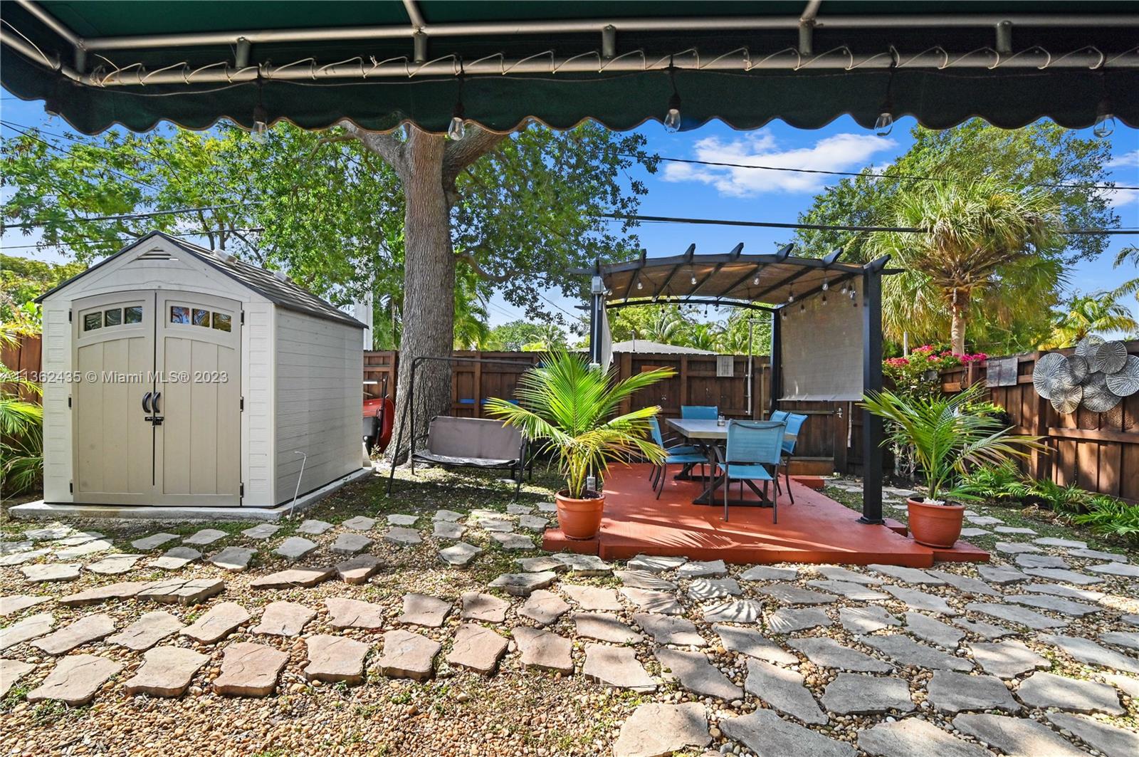Updated 3 bedroom 1 bathroom home in pristine condition. Enjoy stainless steel appliances, updated kitchen and bath, porcelain tile and hard wood floors, and shaded car port. This property boasts a 5 year old aluminum roof, and windows with accordion hurricane shutters. New central A/C, new washer and dryer, new tankless water heater, new refrigerator, and new rain gutters. Custom blinds on all windows, six ceiling fans, two attics for additional storage, and a separate laundry room. The side of the property has plenty of room for a pool. Large storage shed and a beautiful pergola in the back yard. Sprinkler system for lawn. Located in the desirable neighborhood of North Miami Beach, this large corner lot is just one block from the park and canal, and close to several houses of worship.