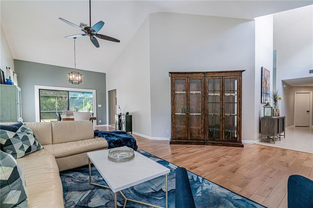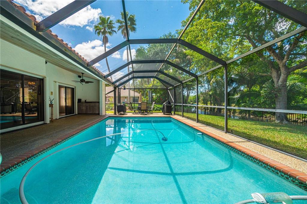 Don't miss this immaculate home in the heart of Pine Ridge; a verdant community that will allow you to Relax, Enjoy & Love where you Live! This crisp 4 bed 2 1/2 bath home, with its striking vaulted ceilings will undoubtedly impress you! Large & unique floorplan, split bedrooms, enormous master suite, master bath & walk-in closets! Open kitchen with white cabinets, elegant backsplash, stainless appliances & a large counter bar area. It is simply the perfect place to entertain! Snug family room with working fireplace. The stackable patio slide doors invite you to the screened pool area, where you can enjoy the long water views & soak in nature. Freshly painted outside & full impact coverage. Fenced in yard on a desirable over 12,000 sqft lot. It simply has it all, come see! Open the 1st