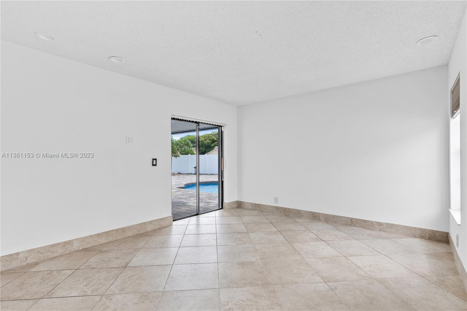 Amazing home with 3 beds, 2 baths & 2 car garage in the beautiful neighborhood of Boca Fontana. Updated kitchen with Corian countertop built in sink and dishboard . As you enter the home, the living area welcomes you in with ample natural light, volume ceilings & lots of space, Accordion shutters throughout. A hop skip and a jump away from prime shopping, dining, and amazing schools . New AC 2023, New paint, Pressure clean inside/outside 2023. New epoxy garage floor 2023. Newer Hot Water Heater 2021. 20" Diamond tile with tile baseboards. PVC Fence. Fully pavered pool deck. Newer resurfaced pool. Newer pool pump heater. Filter, LED app controlled pool light and salt water system.